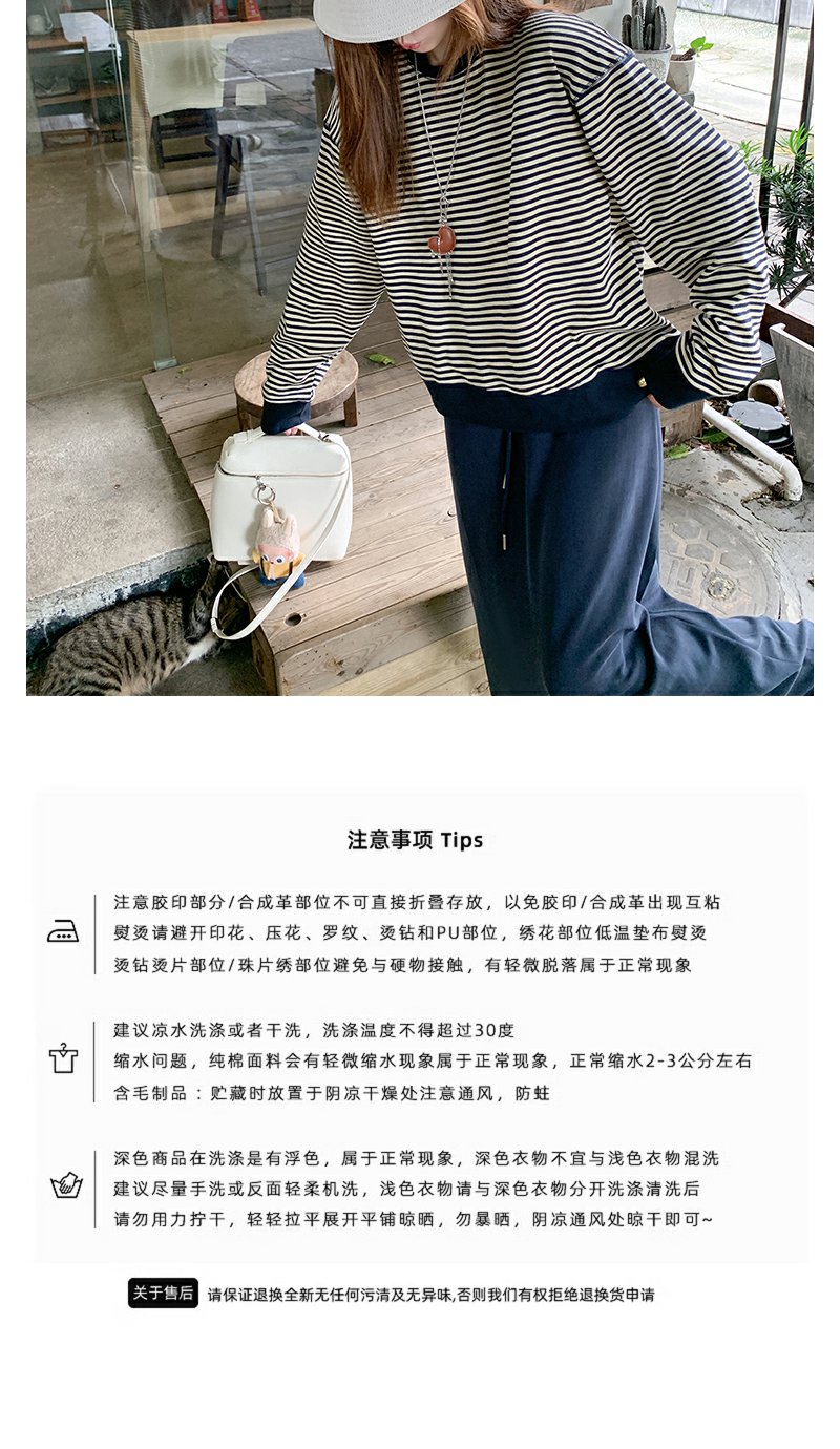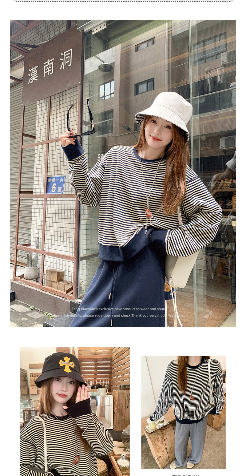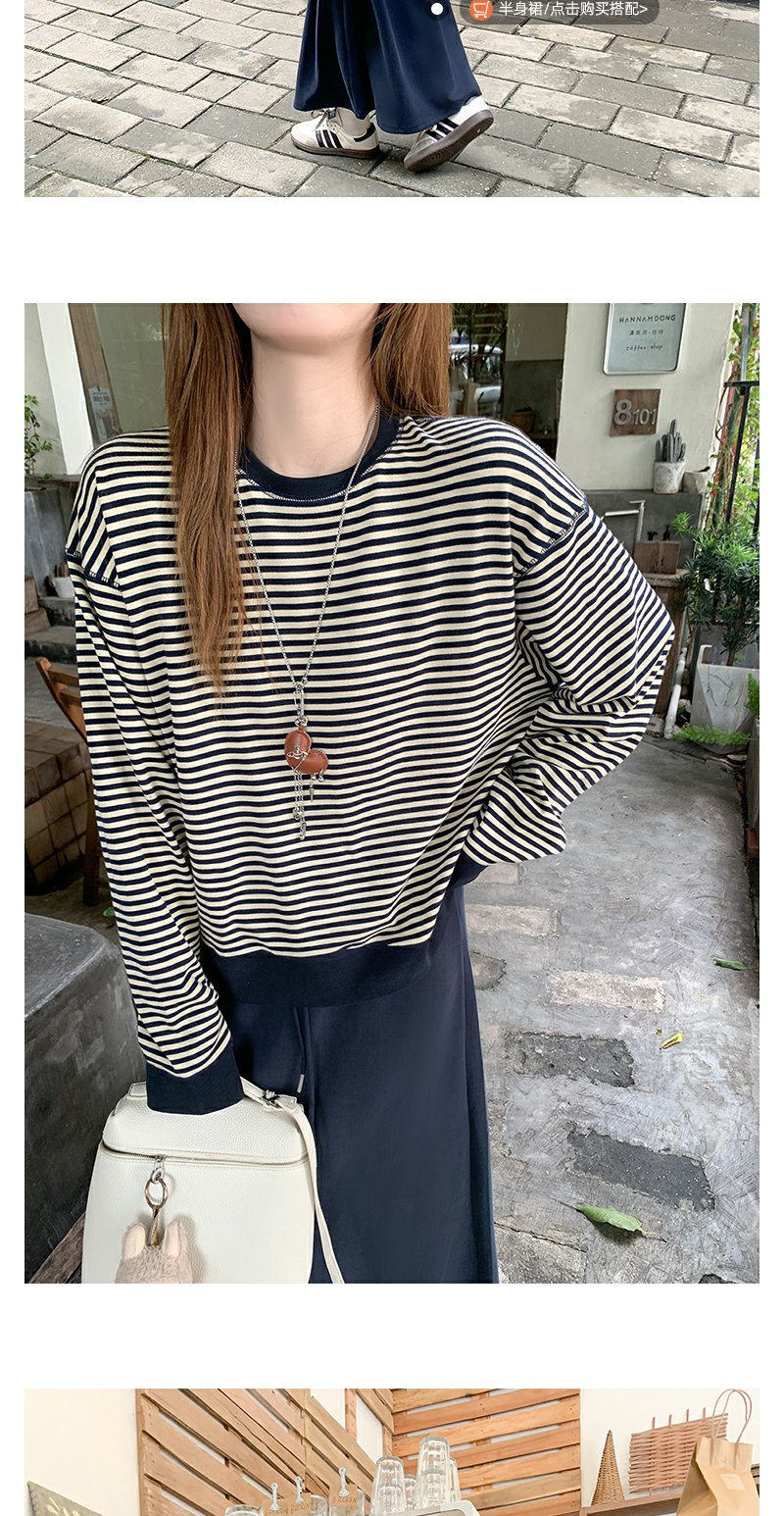 【149元任选2件】现货!慵懒百搭圆领条纹设计T恤卫衣