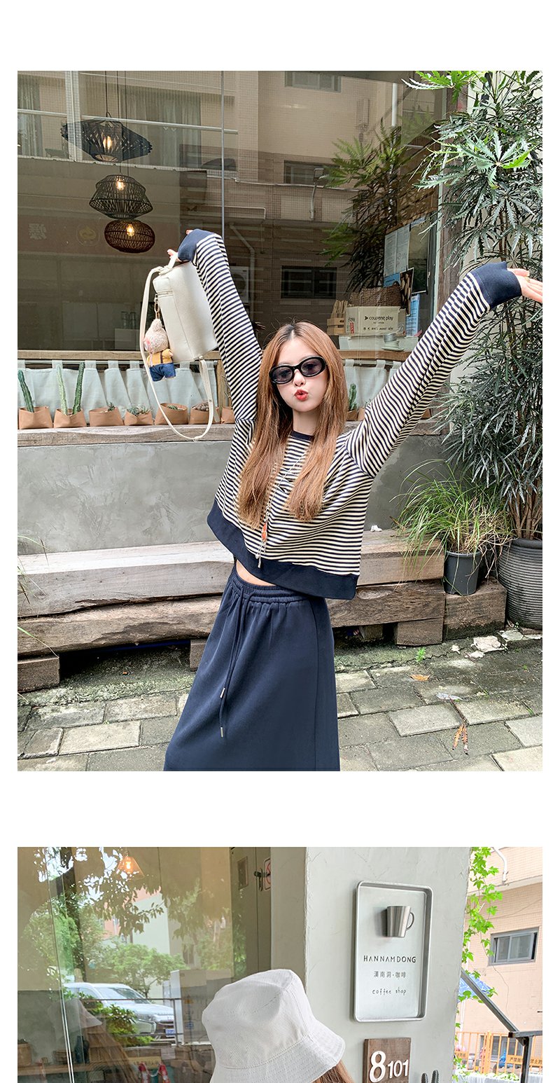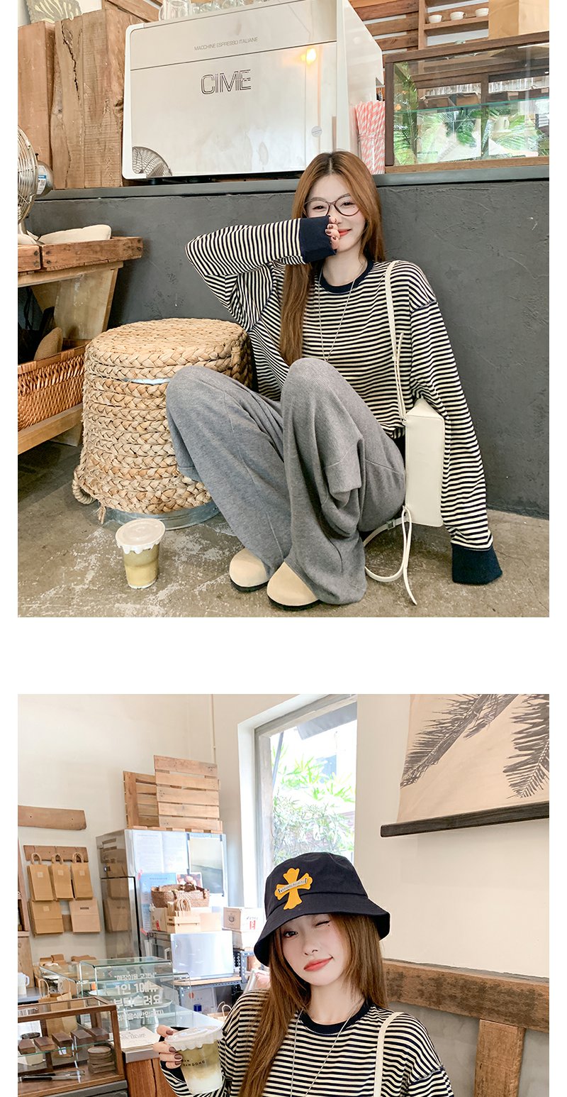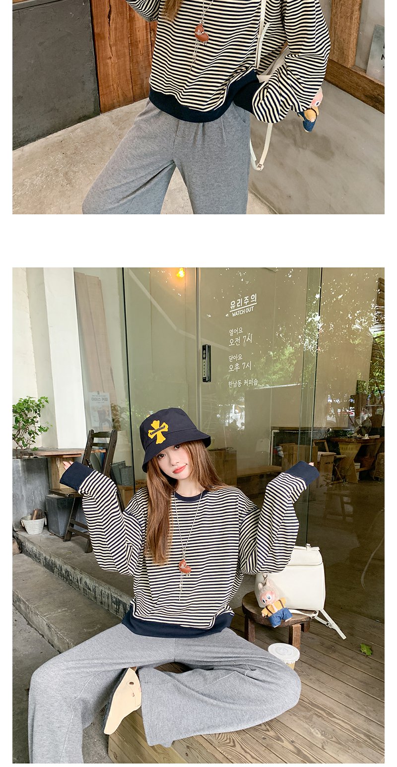 【149元任选2件】现货!慵懒百搭圆领条纹设计T恤卫衣