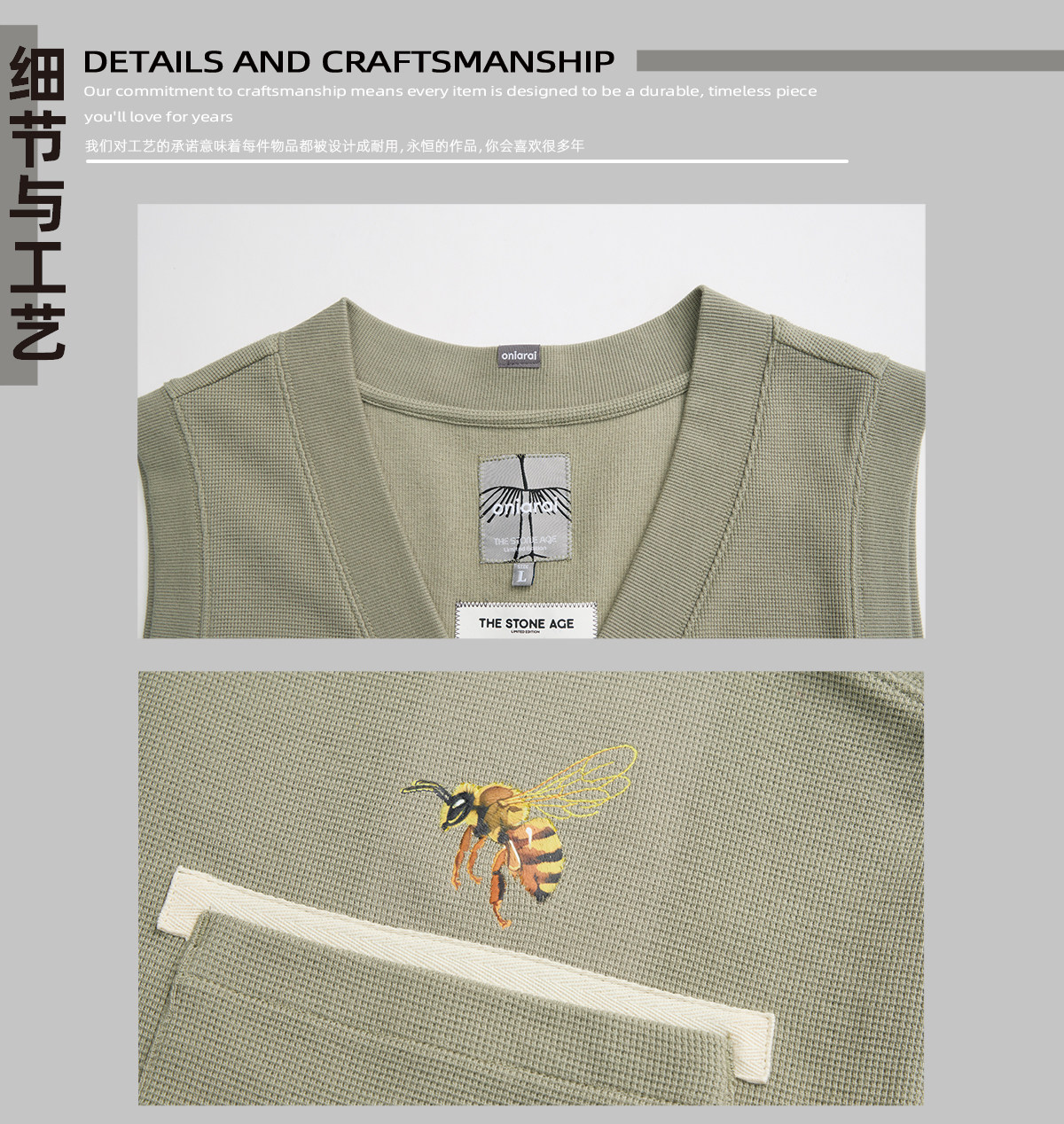 ONIARAI/鬼洗26春季新品黑标石器时代蜜蜂马甲背心男式 A340021