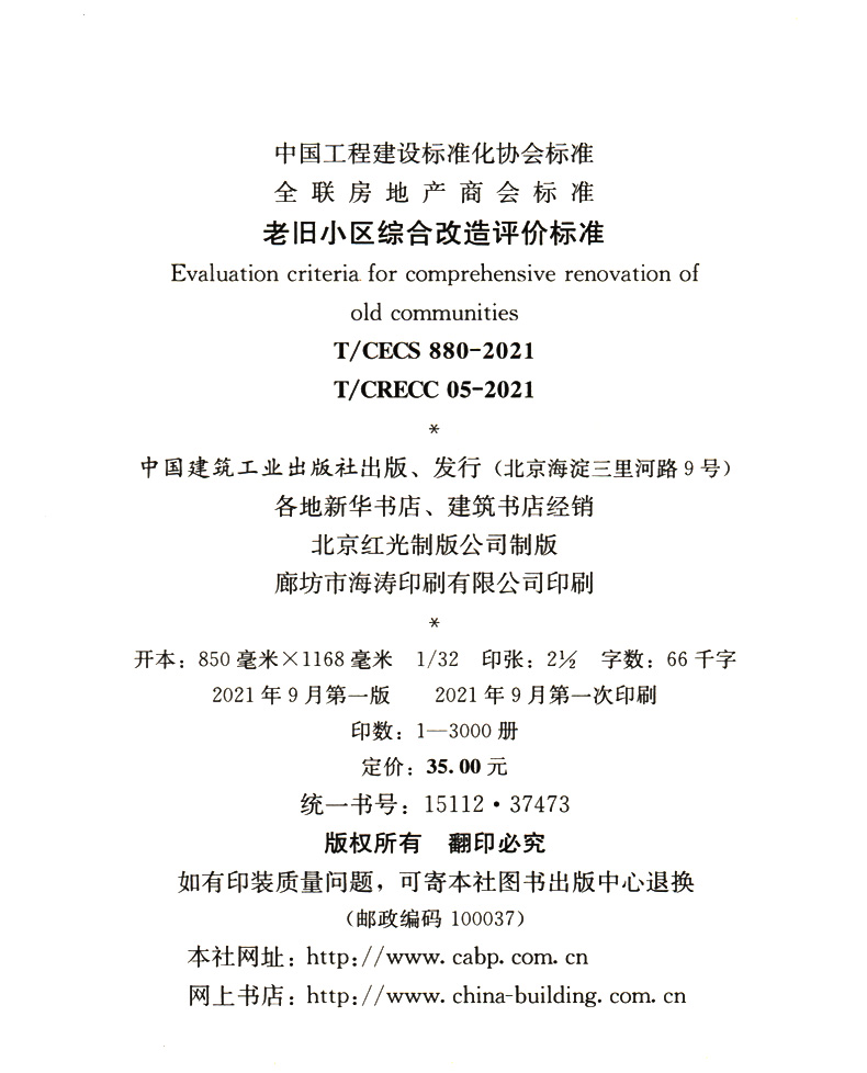 书名:T/CECS880-2021老旧小区综合改造评价标准