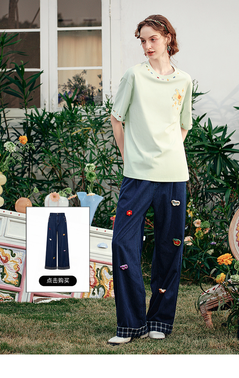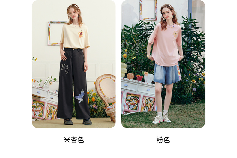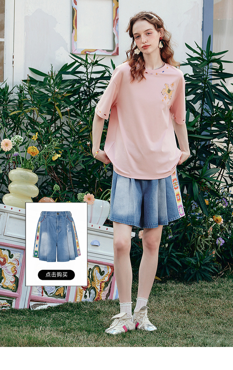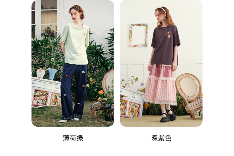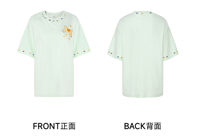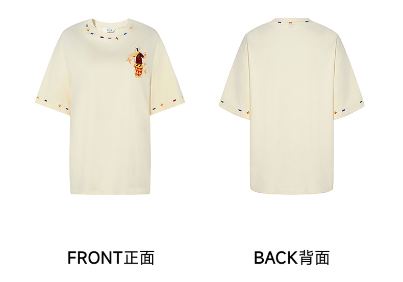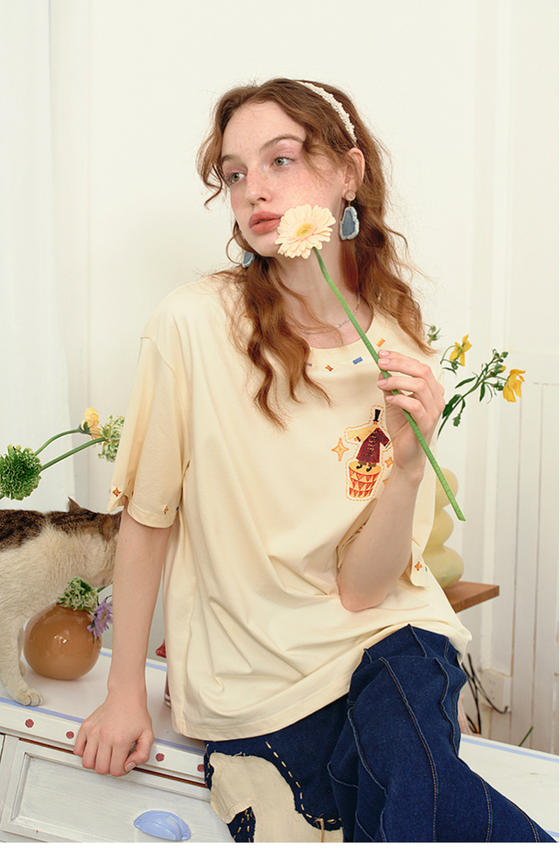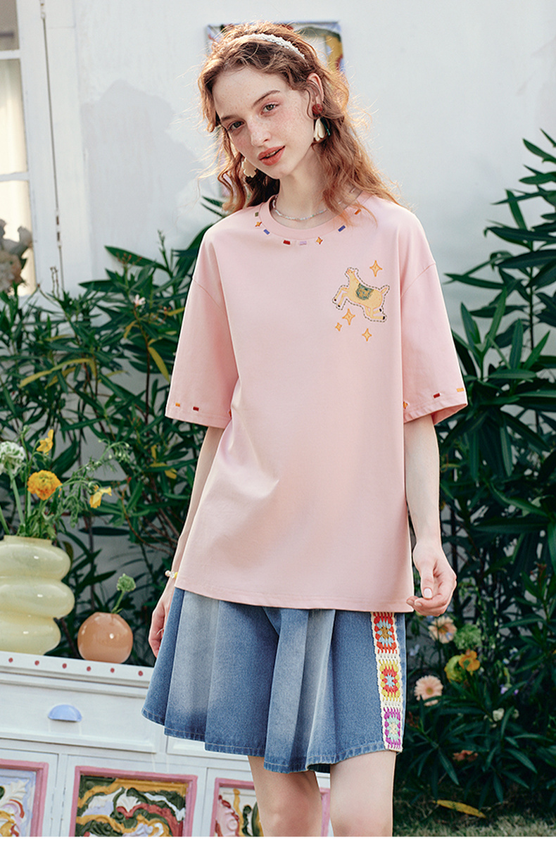 两三事 童眸启示 2025夏季新款可爱刺绣短袖棉质t恤女宽松
