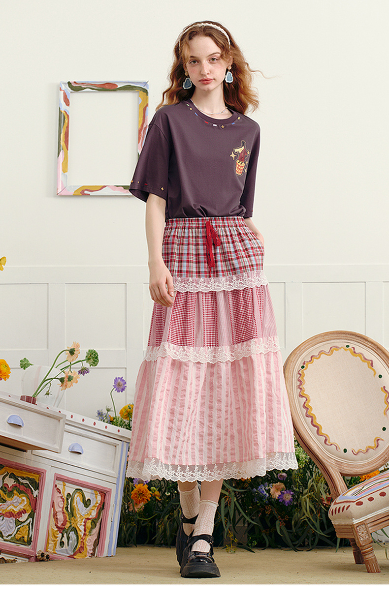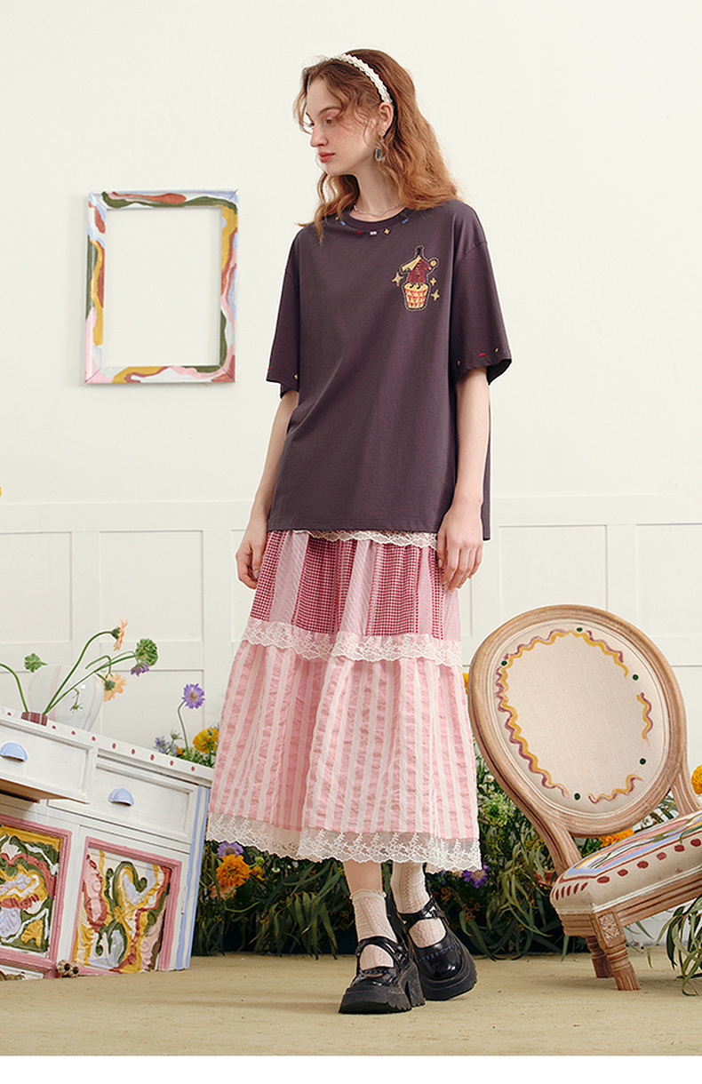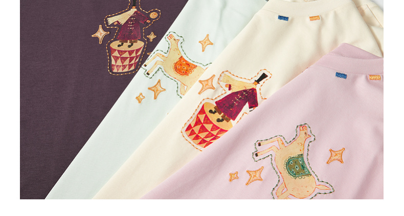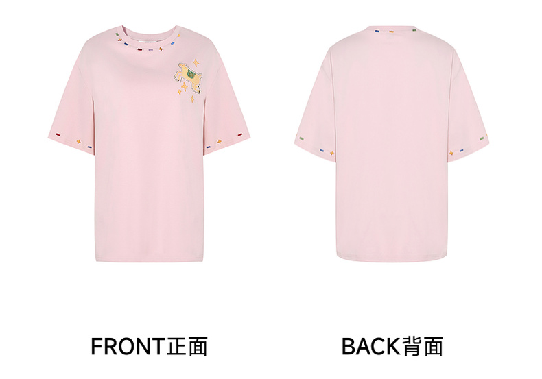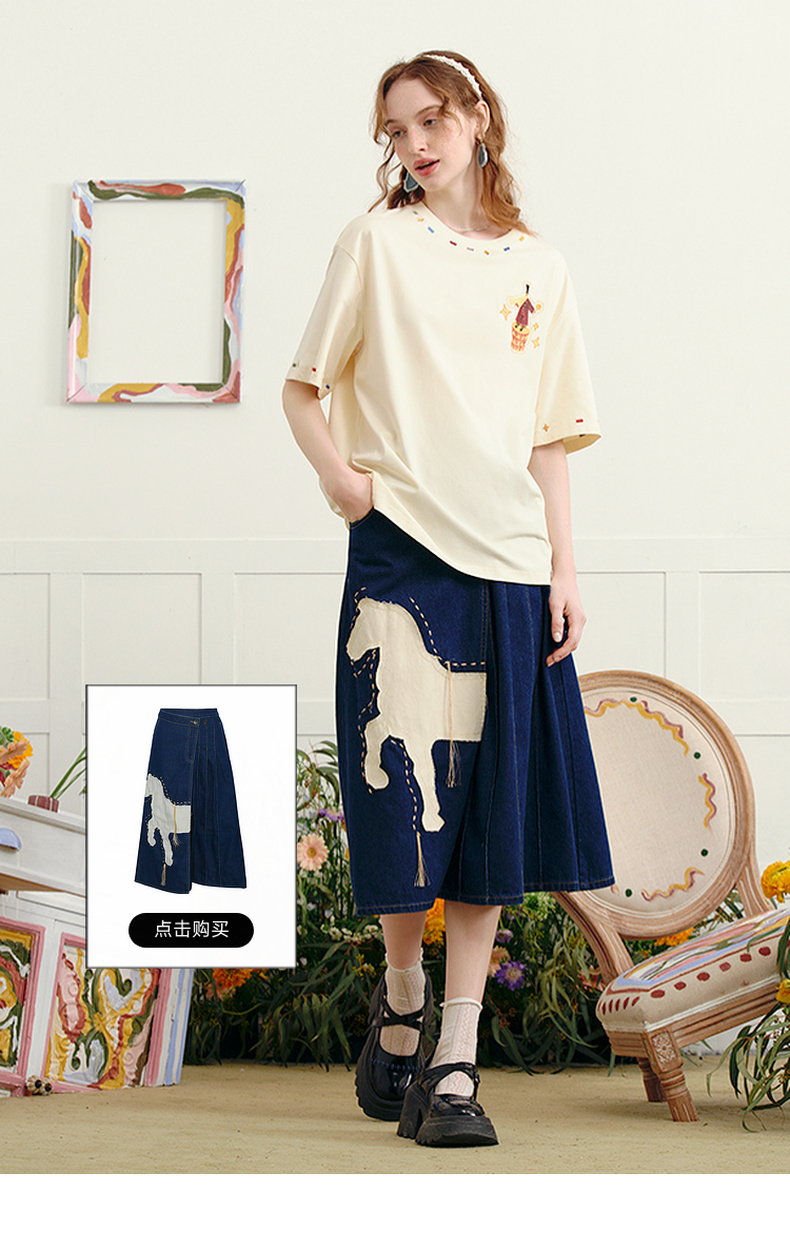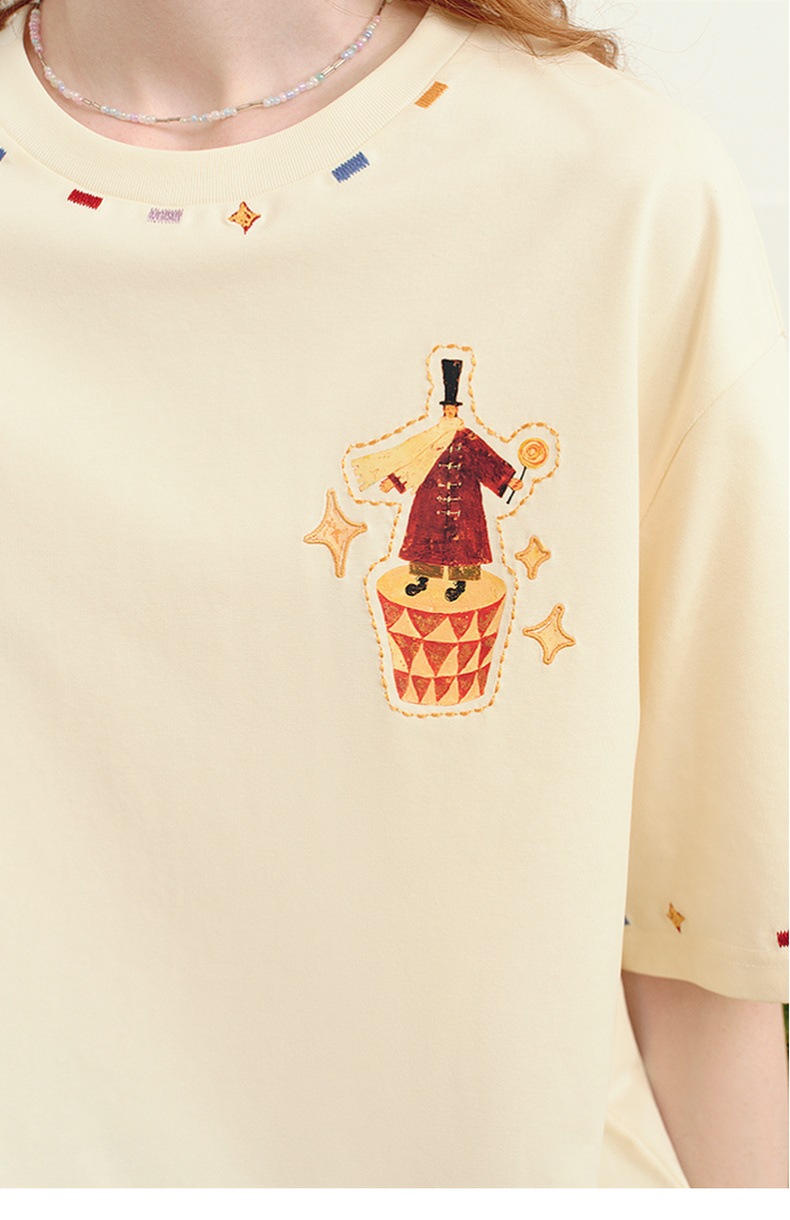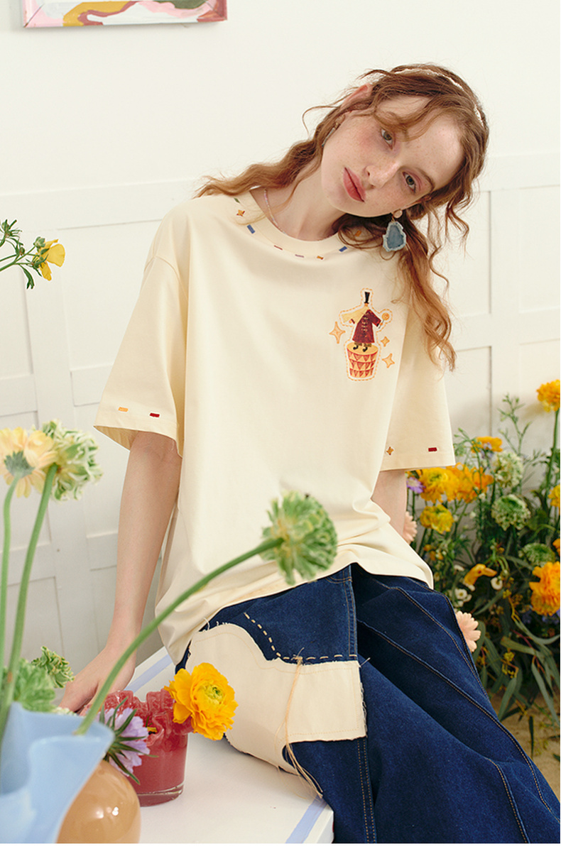 两三事 童眸启示 2025夏季新款可爱刺绣短袖棉质t恤女宽松