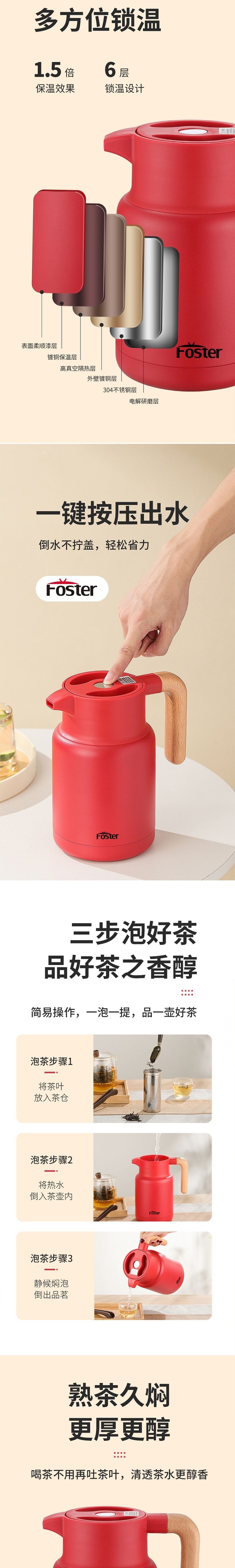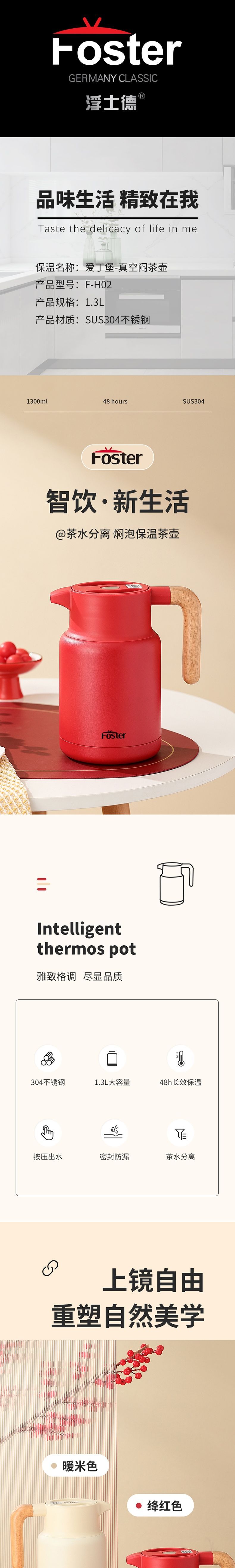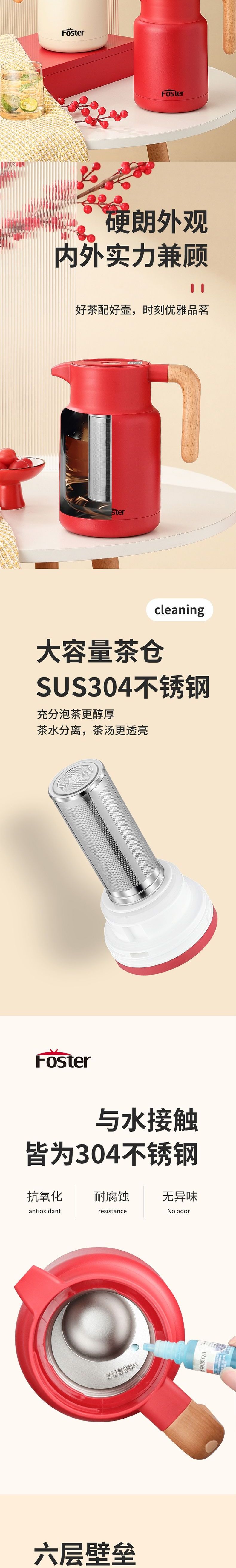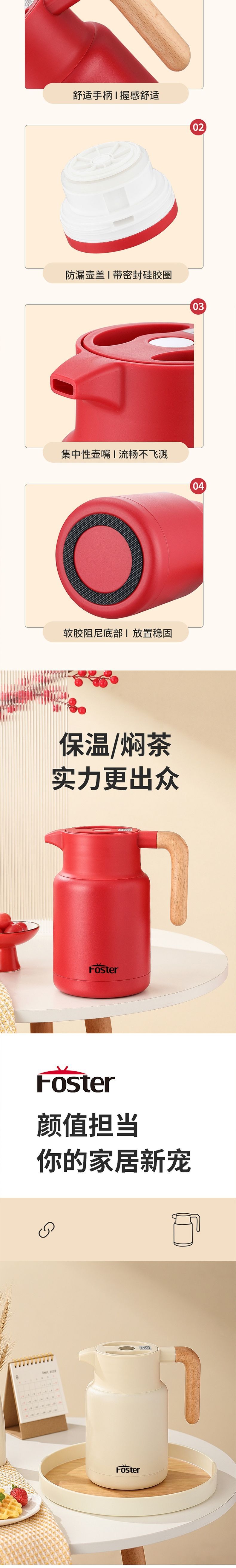 浮士德 爱丁堡真空焖茶壶红/白 F-H02 真空保温茶壶大容量