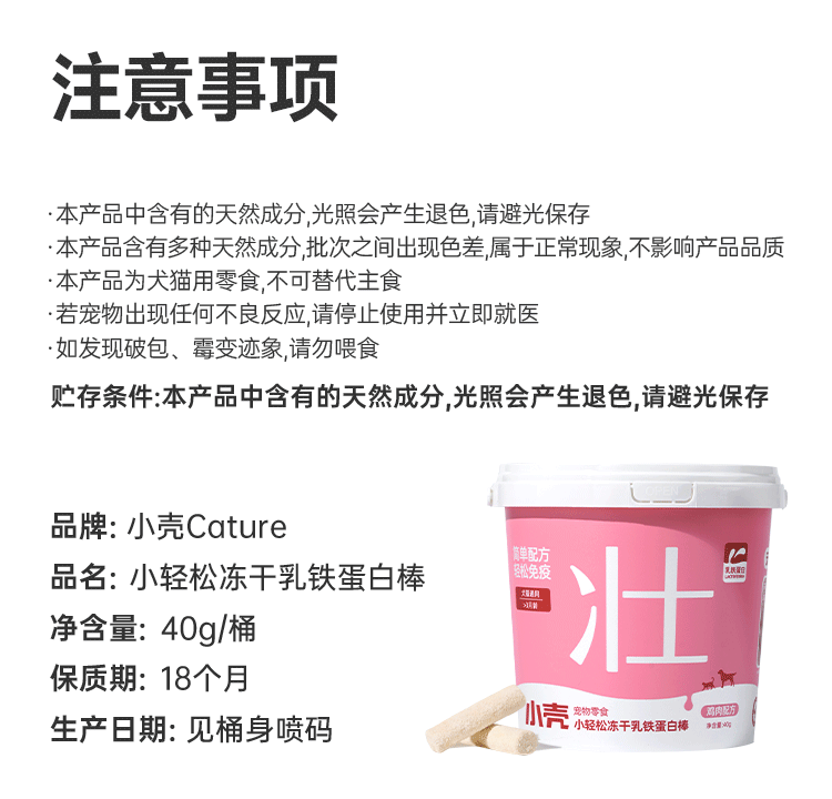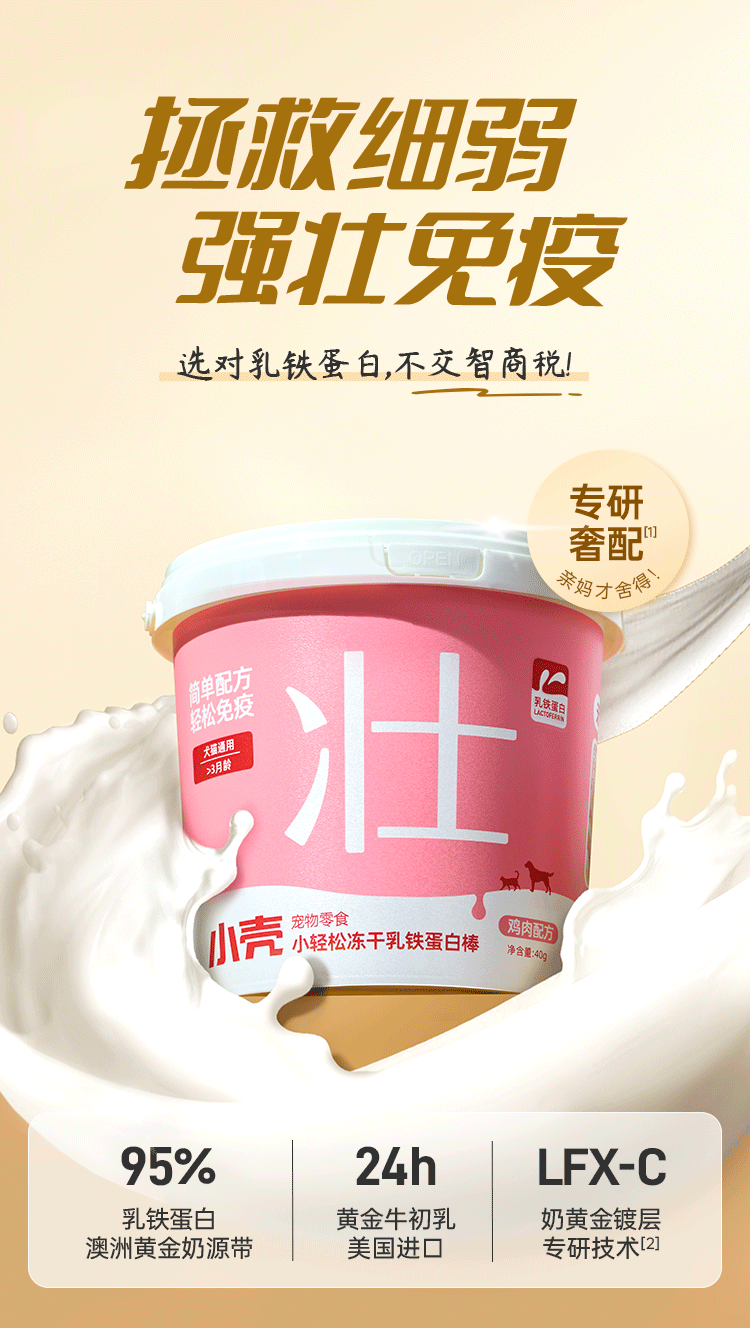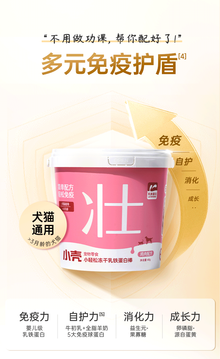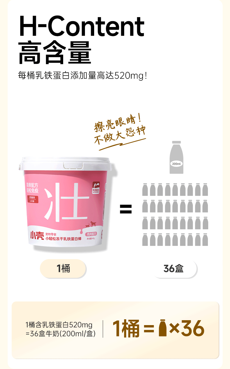 🎁[年货节]小轻松冻干乳铁蛋白棒 40g/桶,95%高纯乳铁蛋白 提高免疫(犬猫通用)