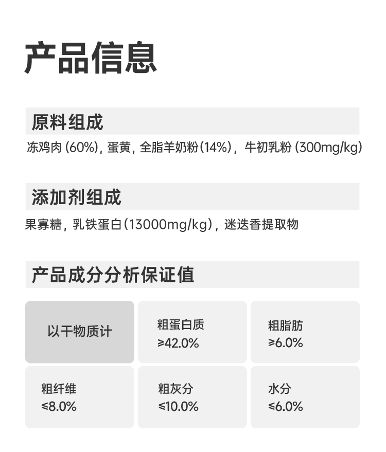 - 【十年专注宠物功能食品】 从宠物口腔呵护、功能冻干、功能主食到临床营养方案, 我们始终秉承科学与专业的精神,只为宠物的健康,让陪伴更长久。