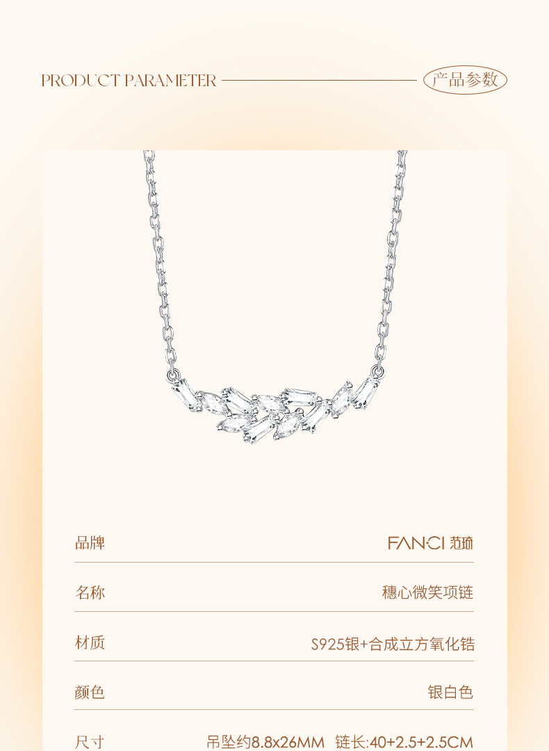 FANCI范琦始于2012年,以珠宝表达内心为初衷,聚焦不同亲密关系情感表达,联结无形情感,以情感符号「I FANCI U」传情达意,诠释“恋爱戴范琦,起点是你,终点亦是你”始终如一的恋爱价值观。