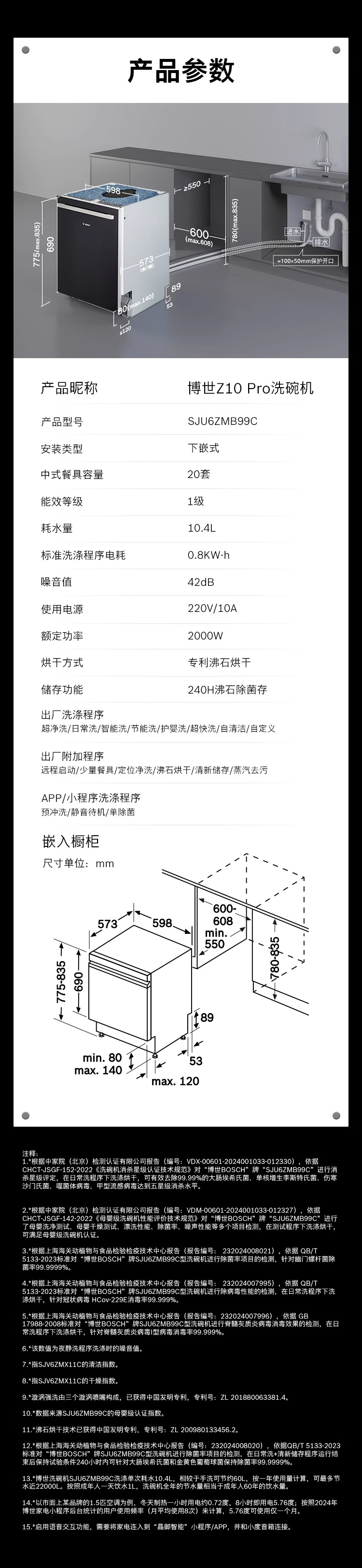 博世(BOSCH)Z10Pro嵌入式20套全自动洗碗机沸石除菌烘干240小时消杀双认证SJU6ZMB99C 自带面板