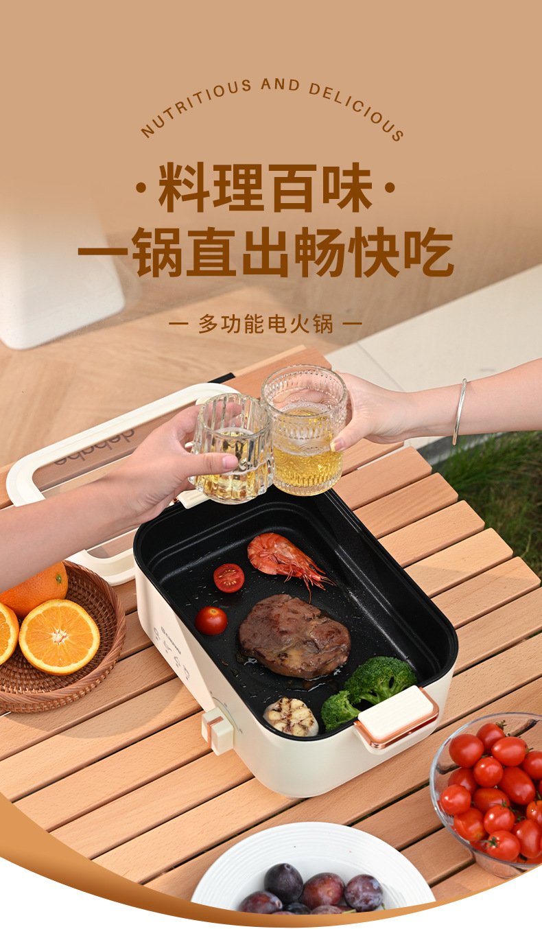 【多功能家用一体电火锅】烧烤肉蒸煮煎炒 炒菜不粘锅 宿舍小型电火锅