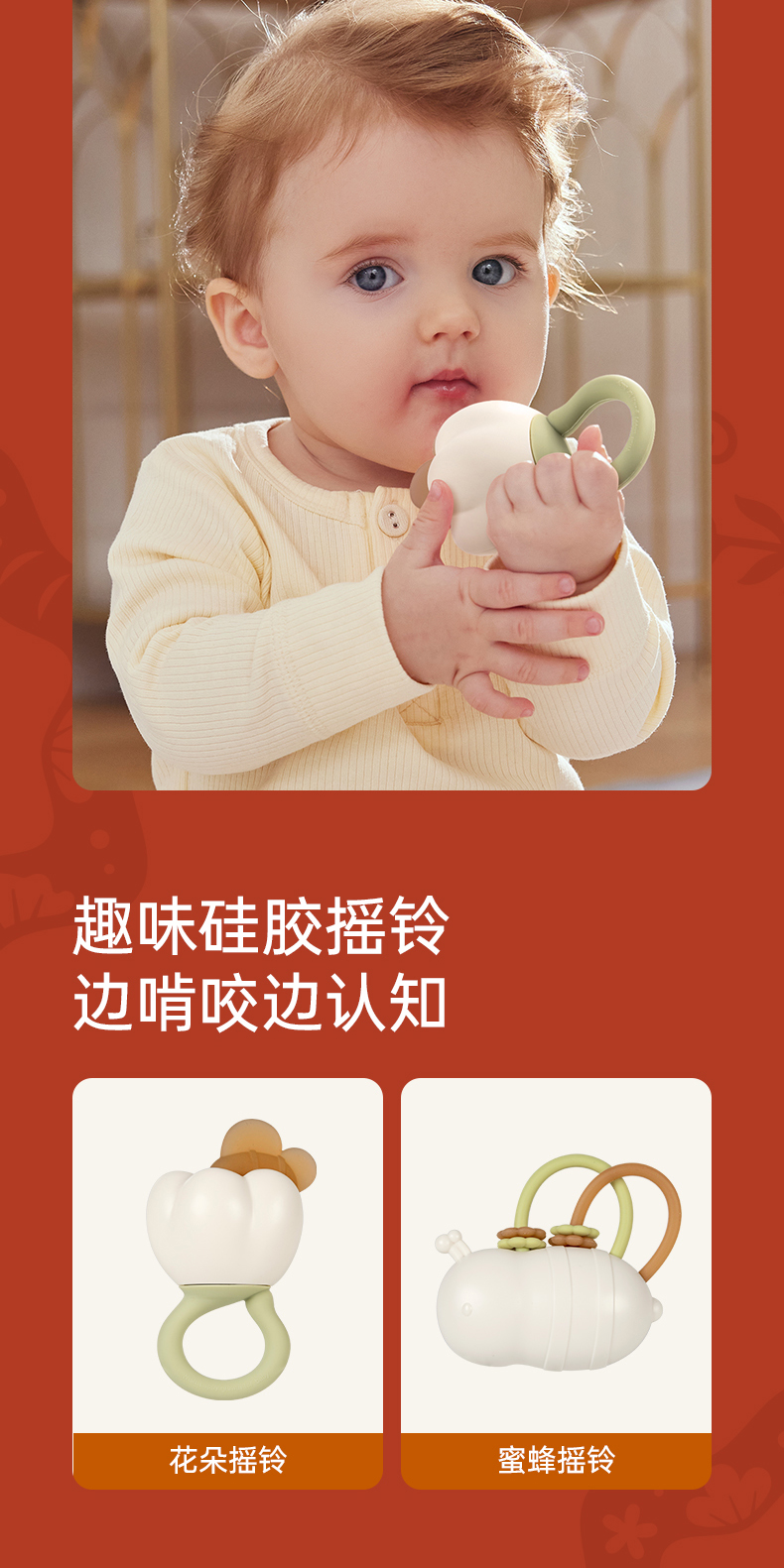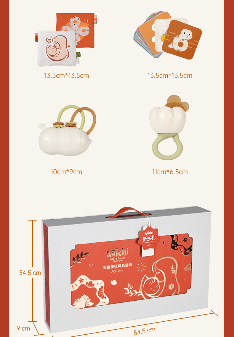 新品kaichi凯驰新生婴儿手摇铃礼盒沙锤玩具安抚巾宝布书新年礼物