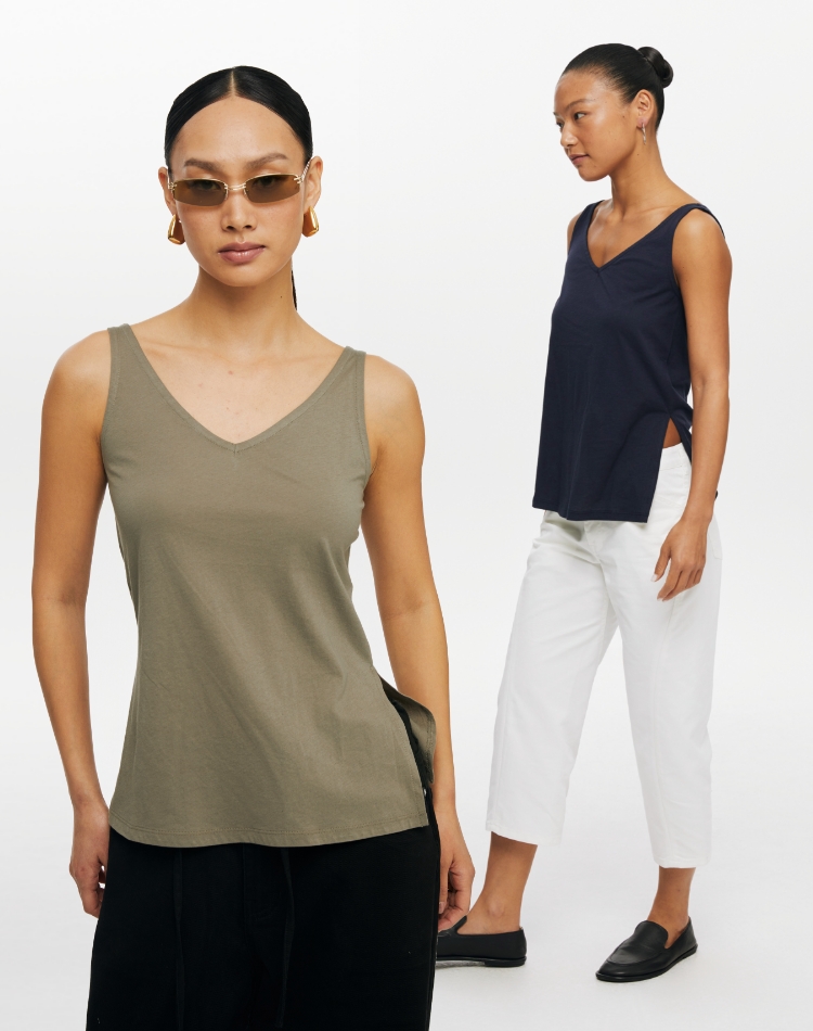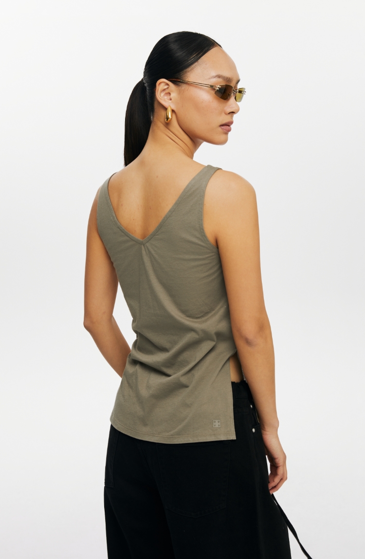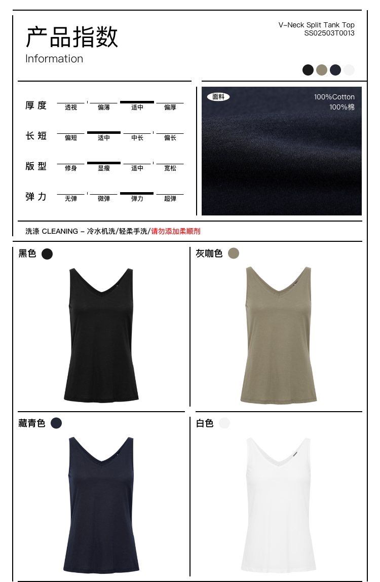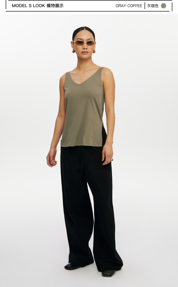oneupV领开衩薄背心