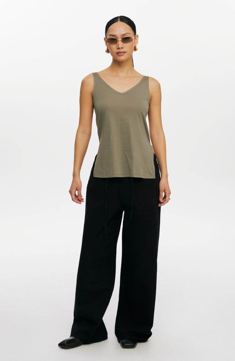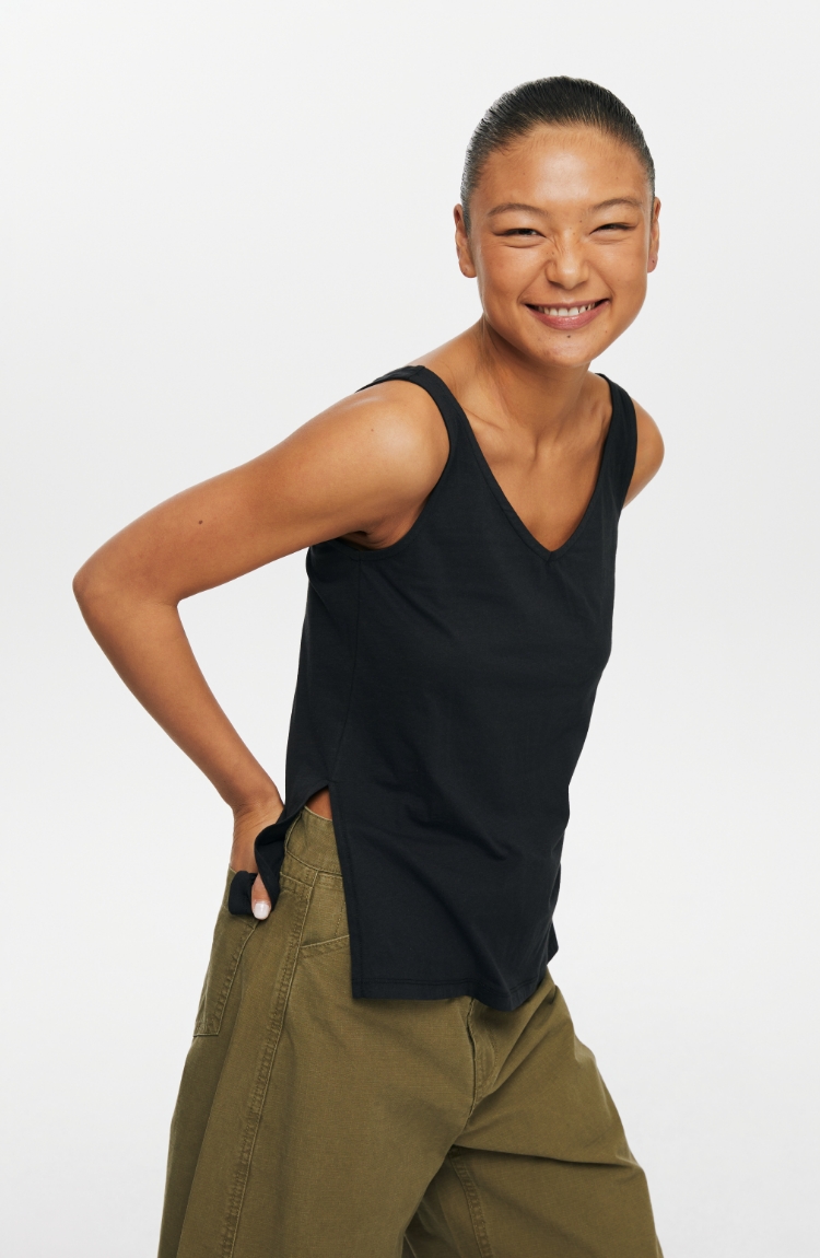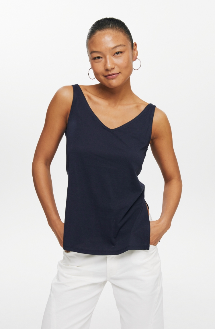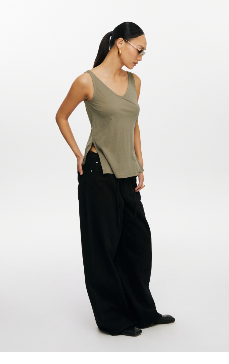 oneupV领开衩薄背心