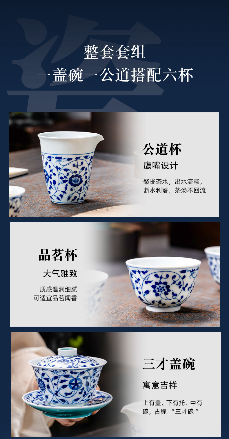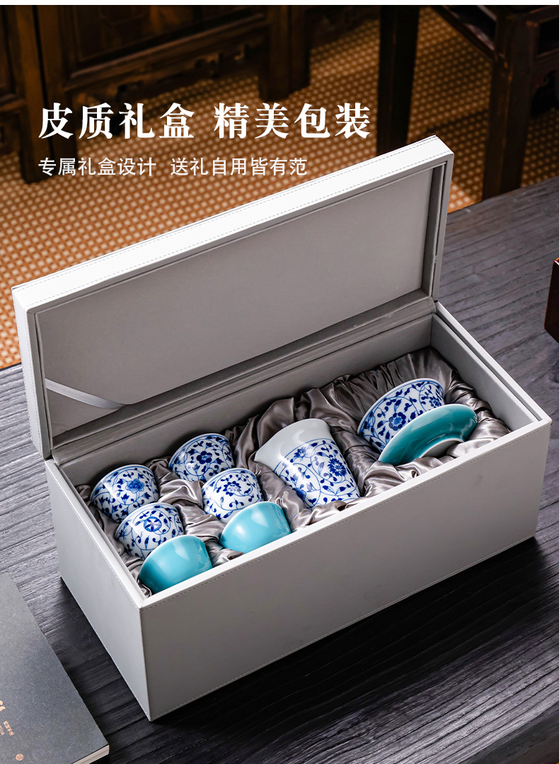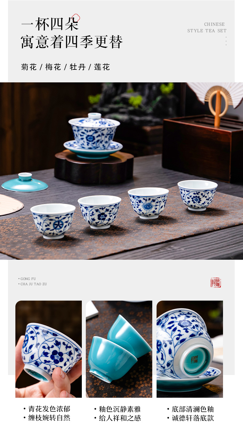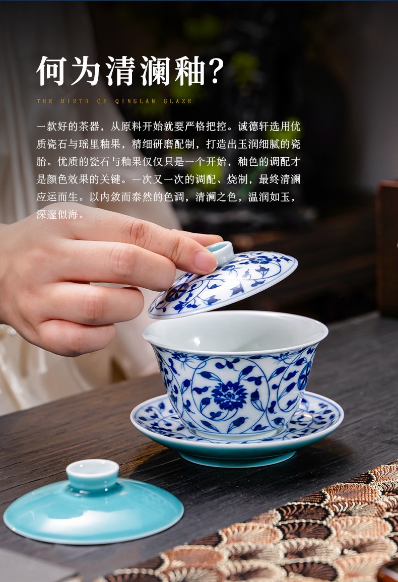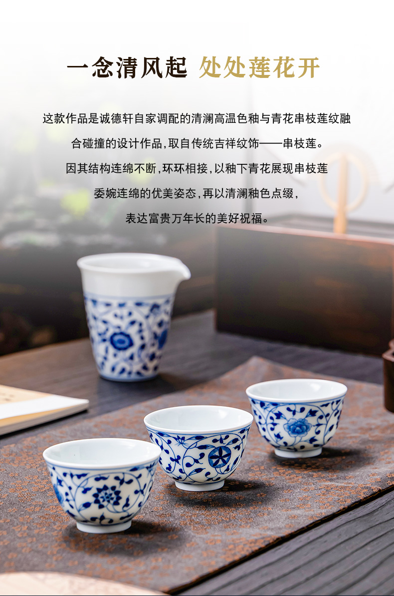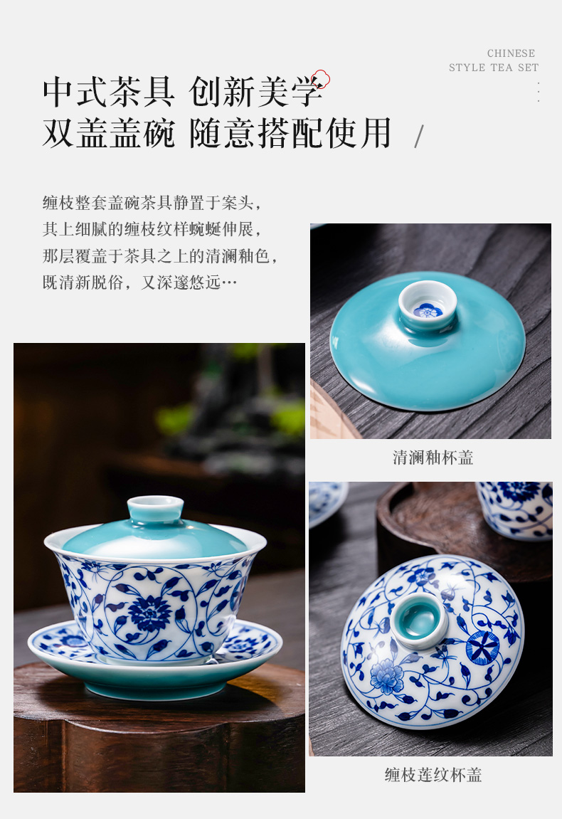 青花颜色釉 玉润清澜(串枝莲)8头茶具套组【首发】