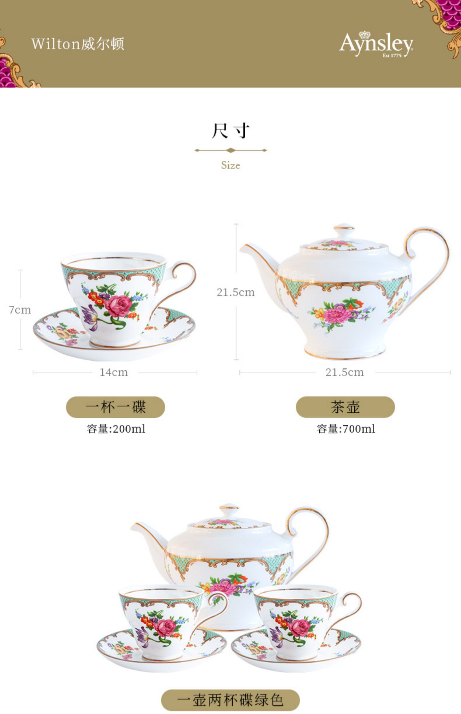 英国Aynsley安斯丽威尔顿欧式骨瓷小众咖啡杯套装下午茶茶具礼盒