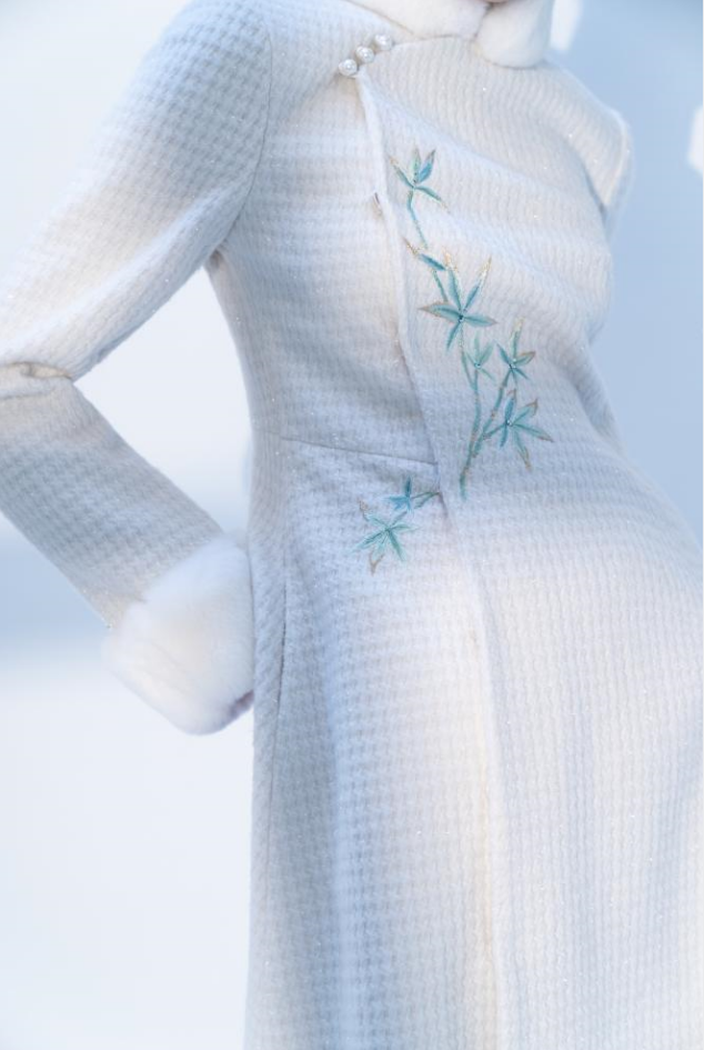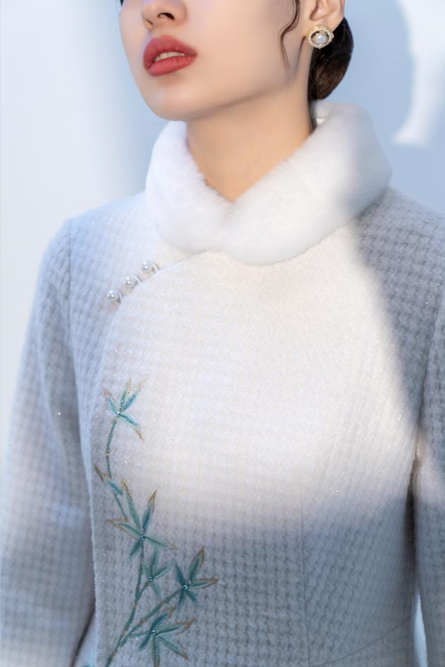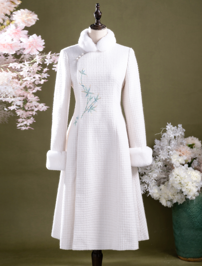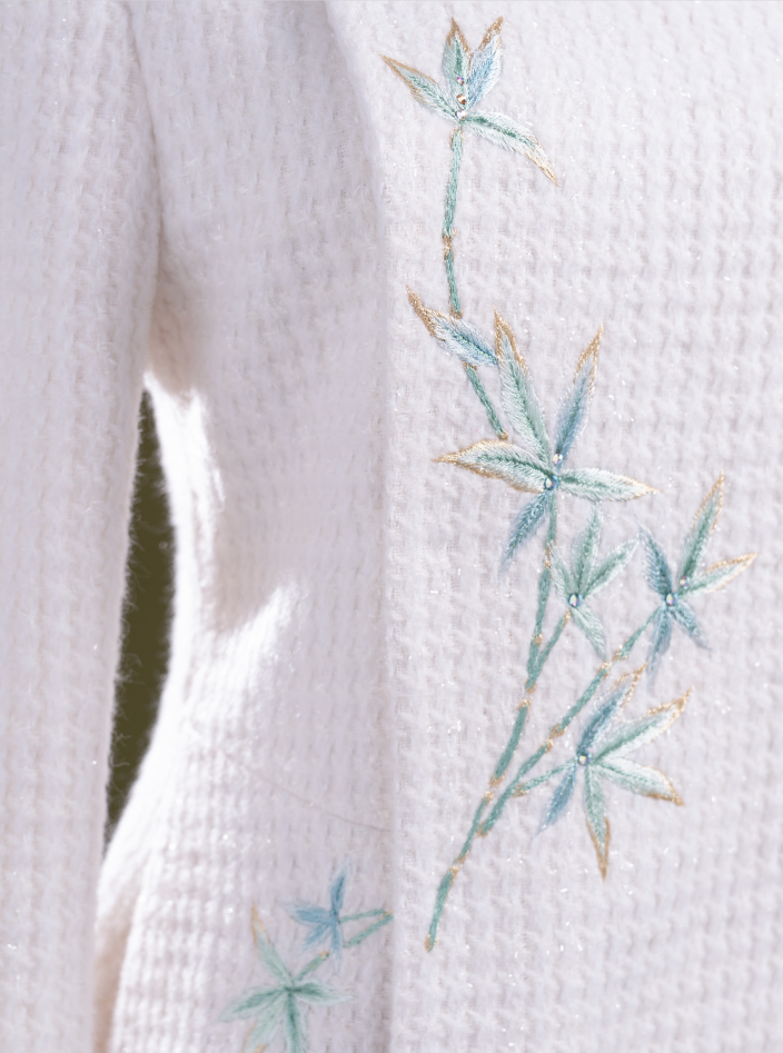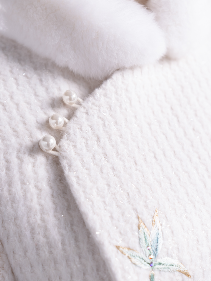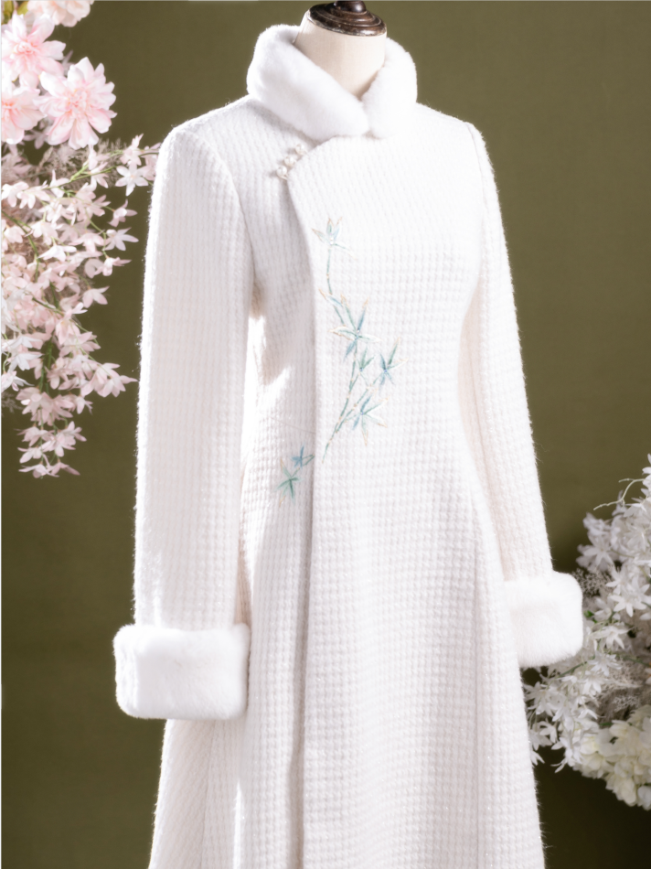 荷言HEYEN 濯香令 兔毛领亮丝小香风竹叶刺绣羊毛大衣