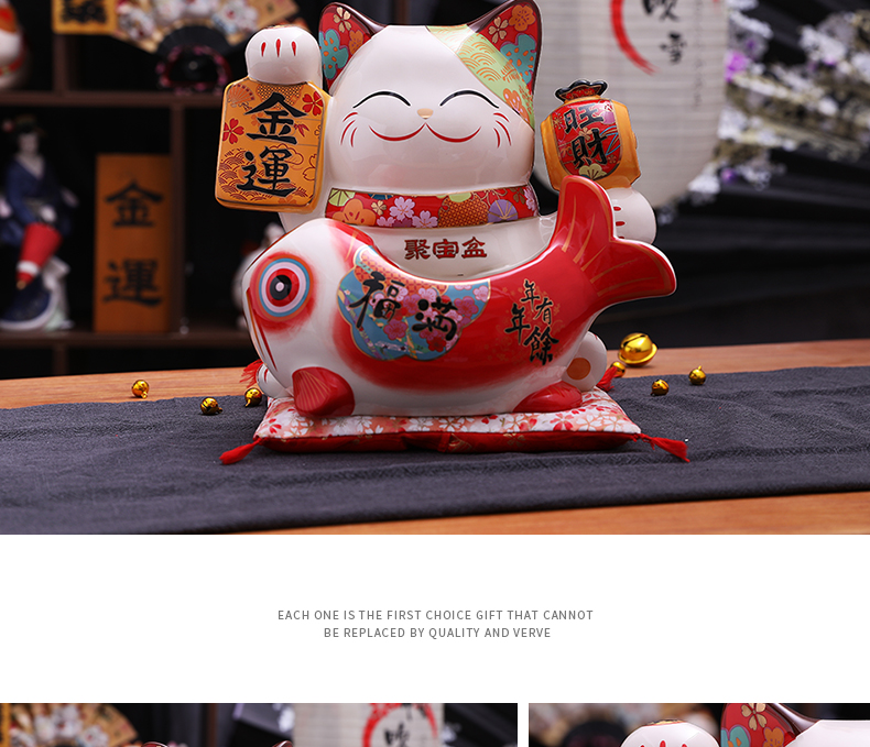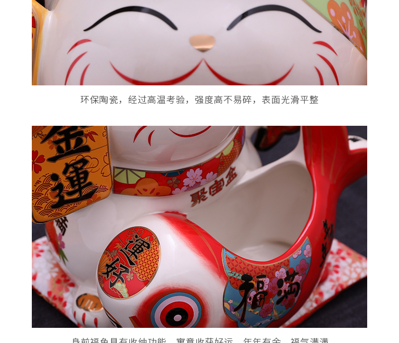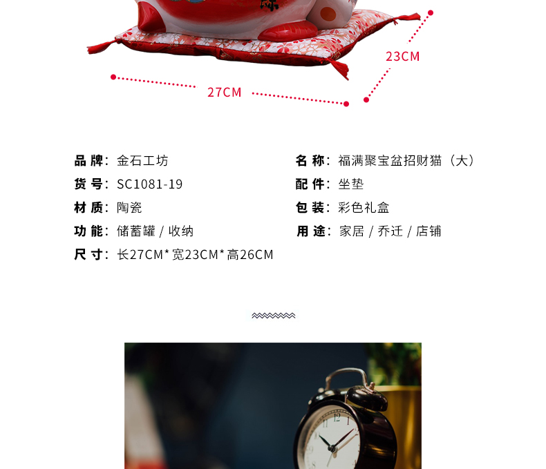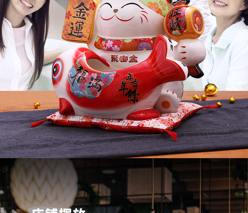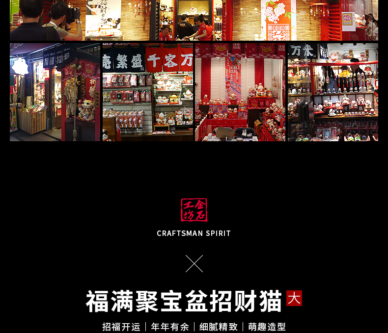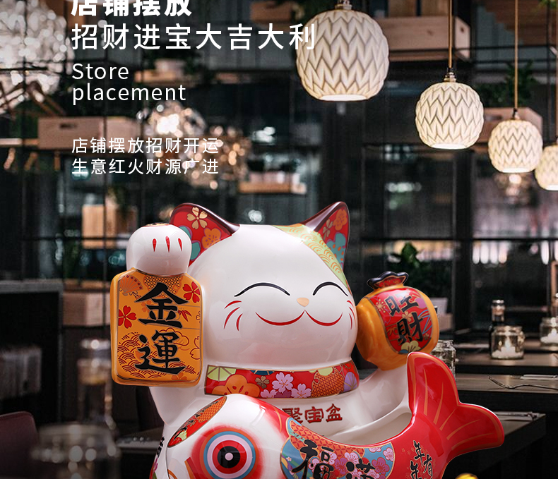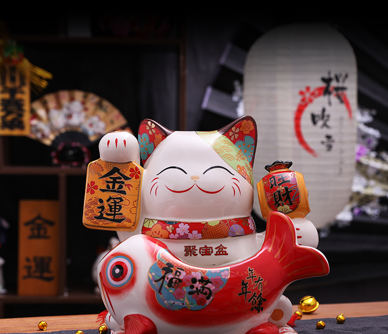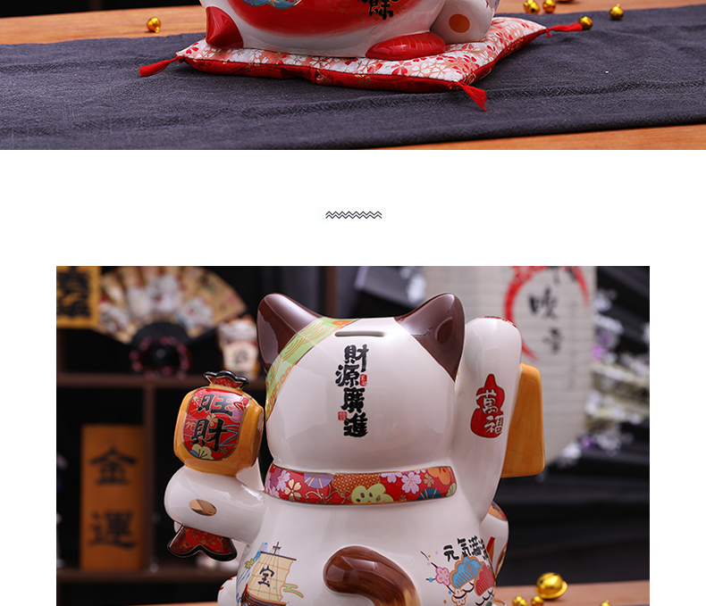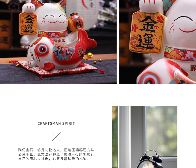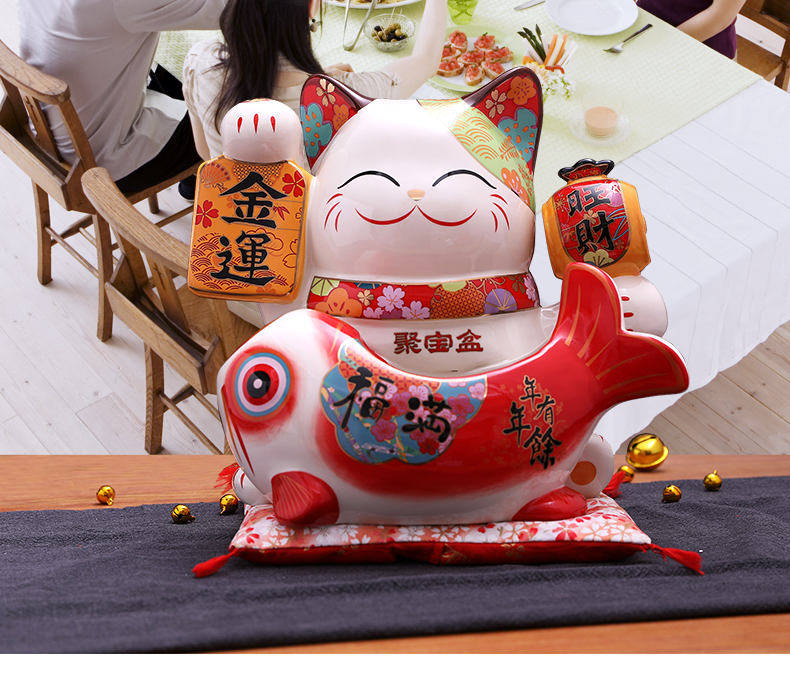 金石工坊福满聚宝盆招财猫大号陶瓷储蓄罐摆件