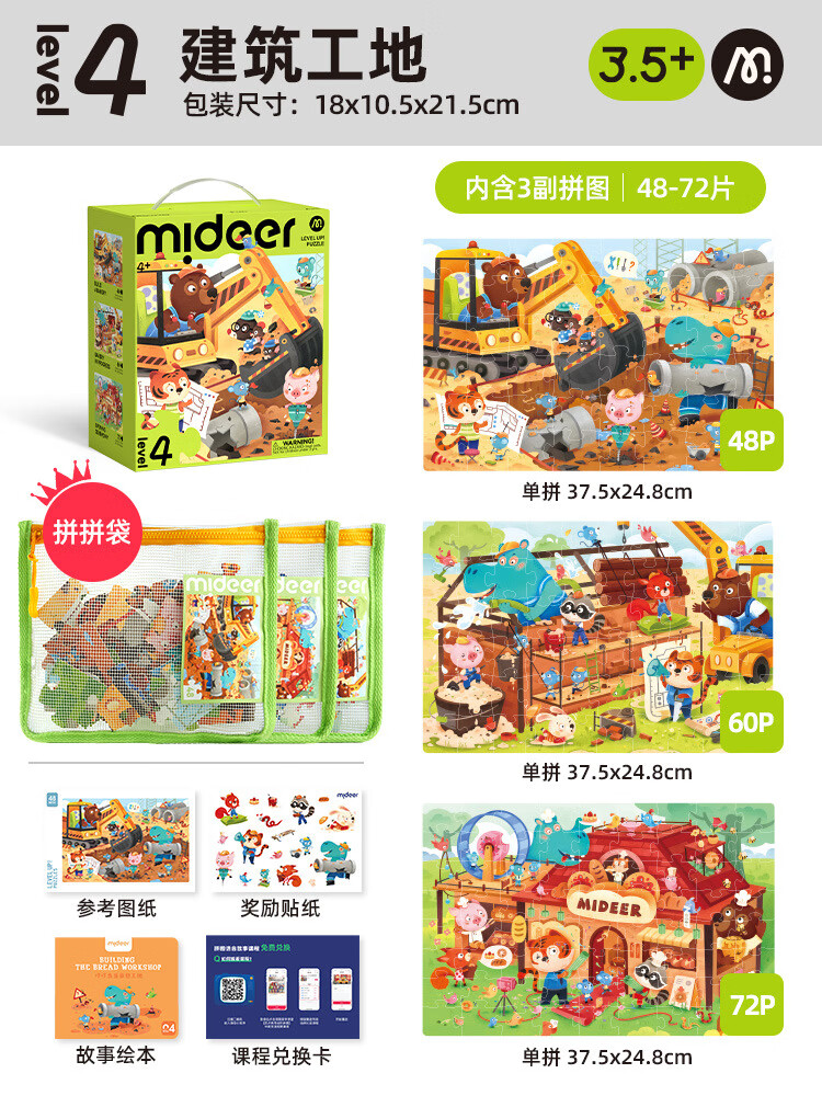 弥鹿mideerMD1620艺术教育进阶拼图-4阶(叮叮当建筑工地)