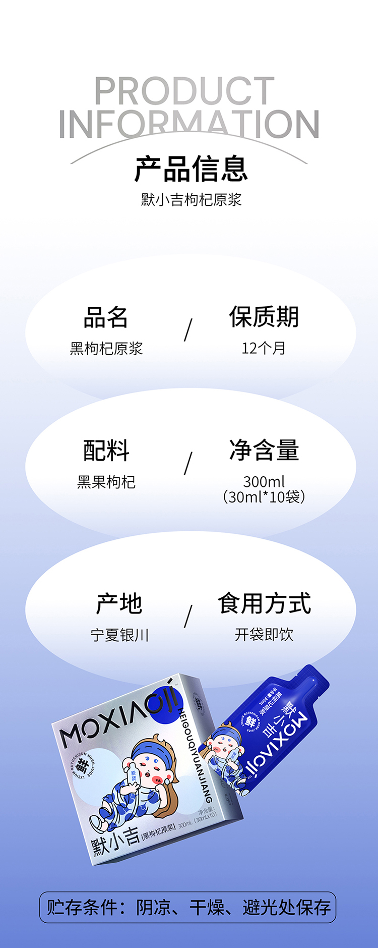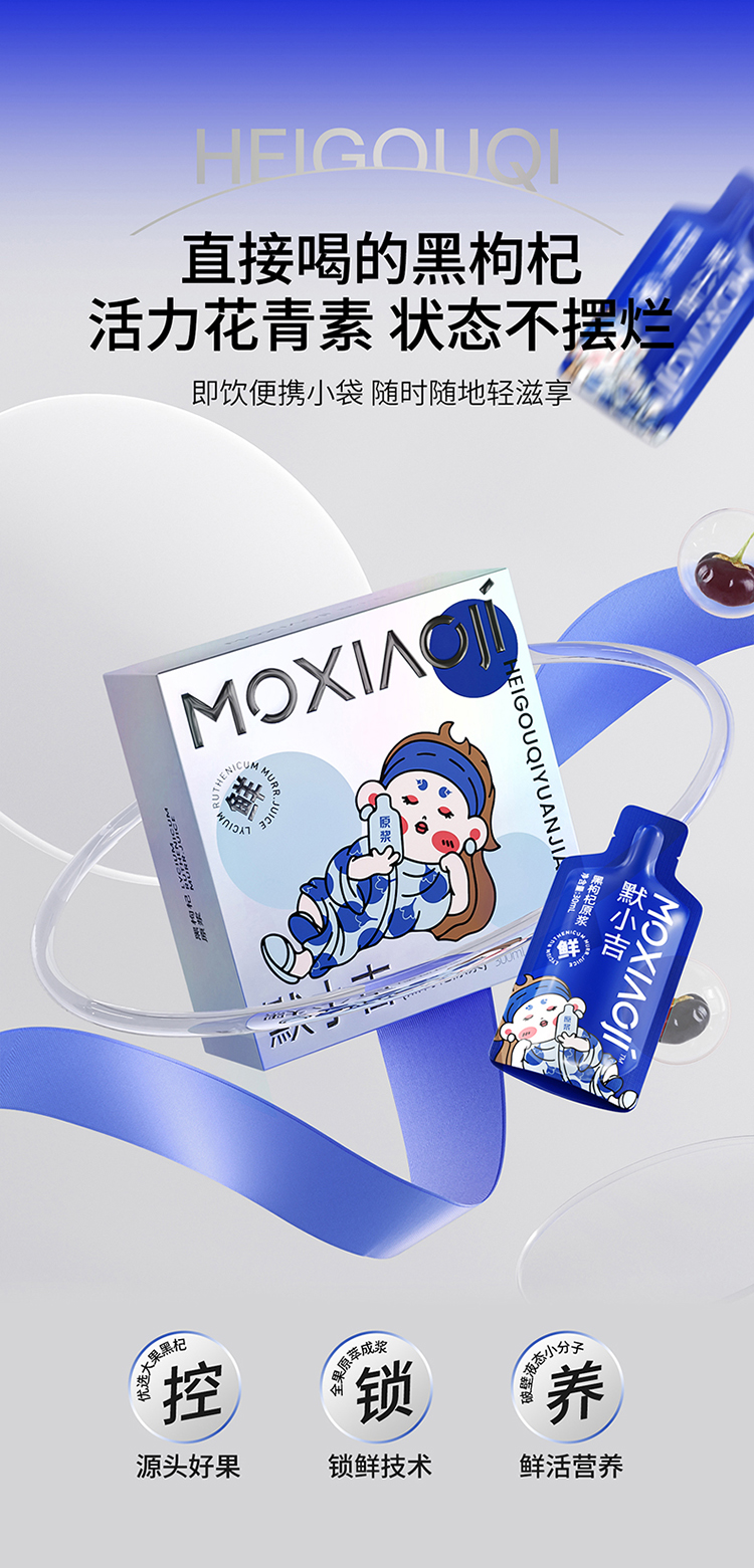 【杞里香默小吉黑枸杞原浆300ml,10袋/盒】 不加一滴水! 熬夜党、上班族、考研党 频繁使用电子设备 每天2袋 健康滋养