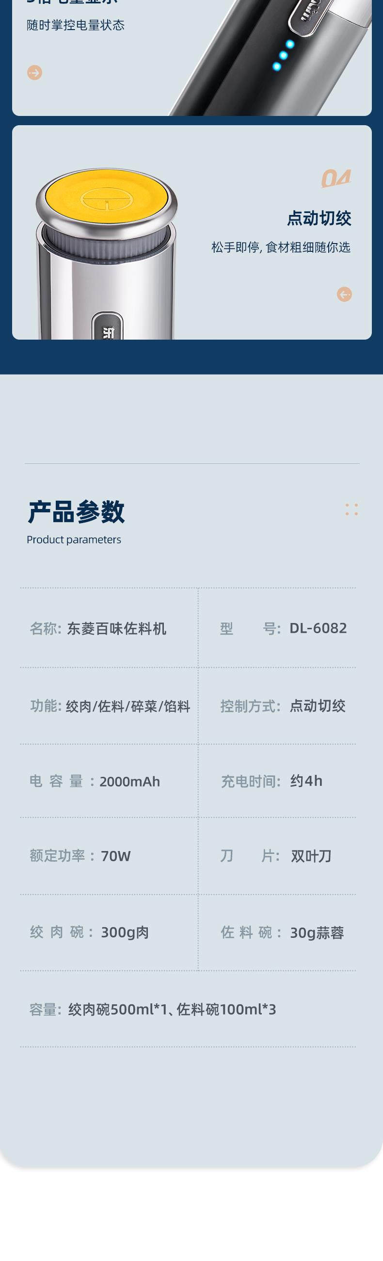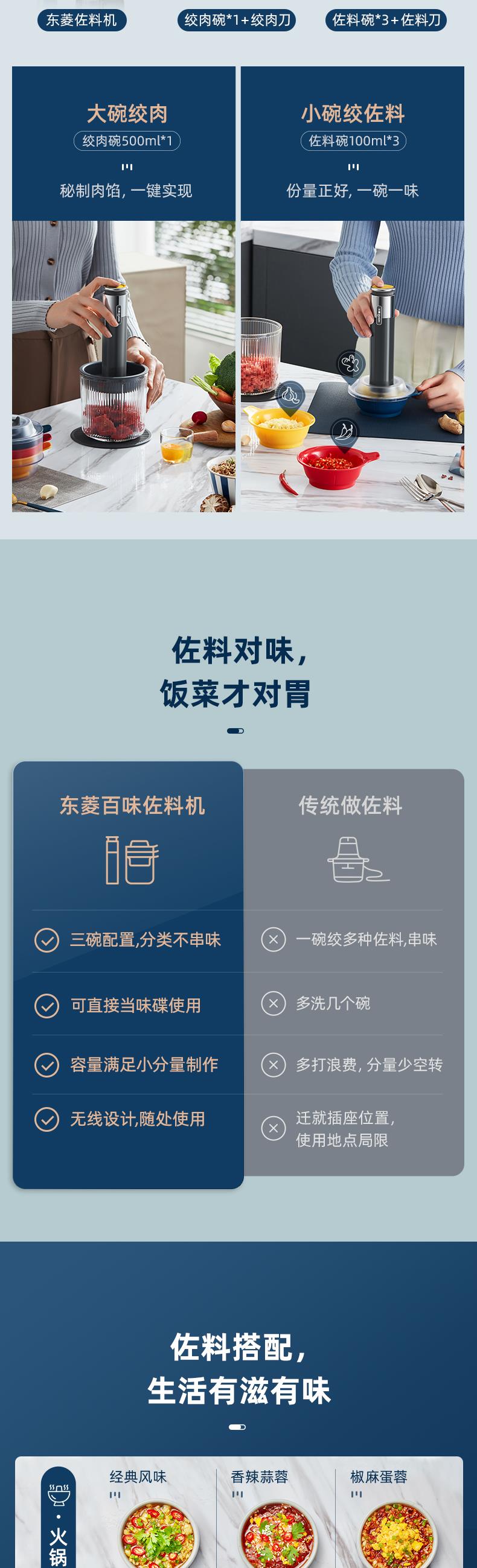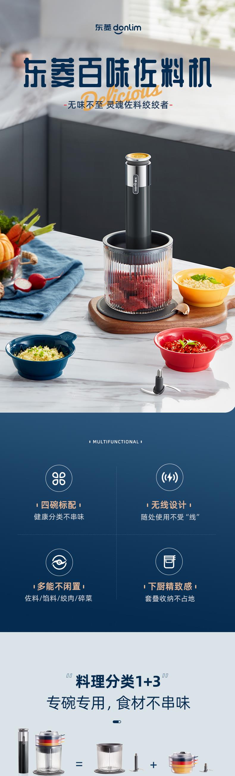 【自营】 东菱 无线百味备餐佐料机绞肉机 500ml(绞肉碗) 100ml*3(佐料碗) 钛金灰 DL-6082
