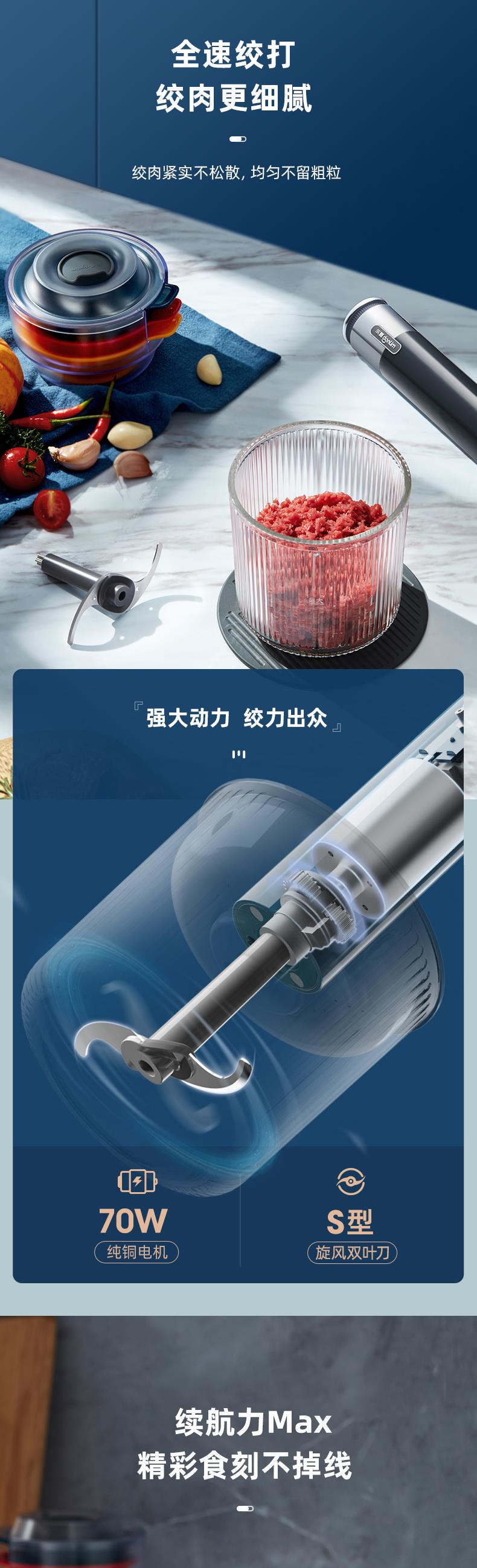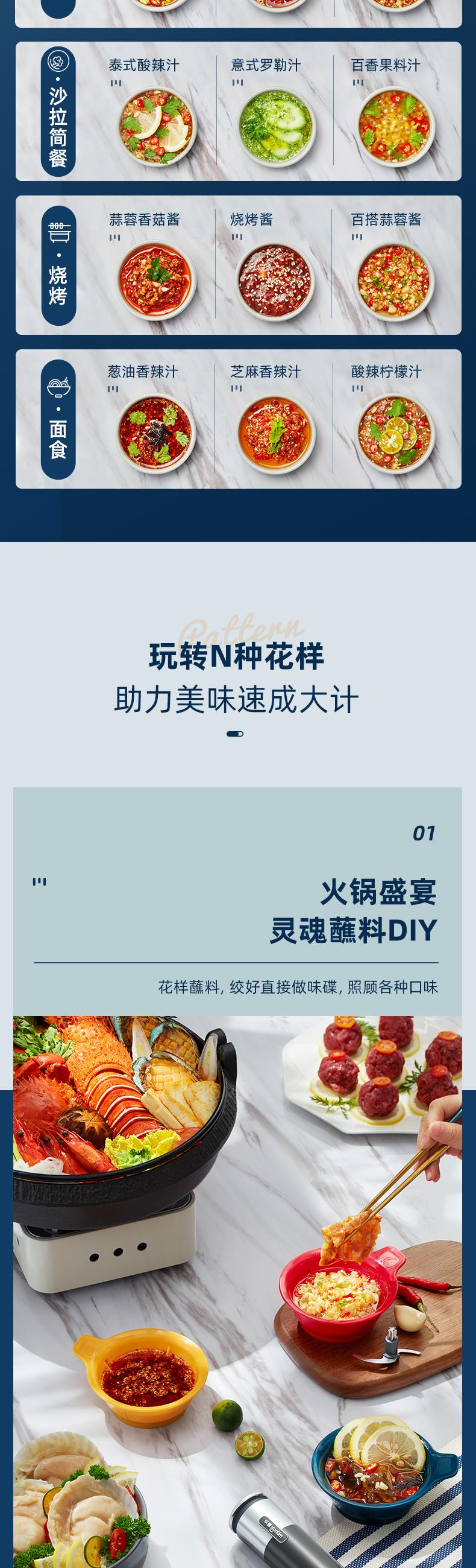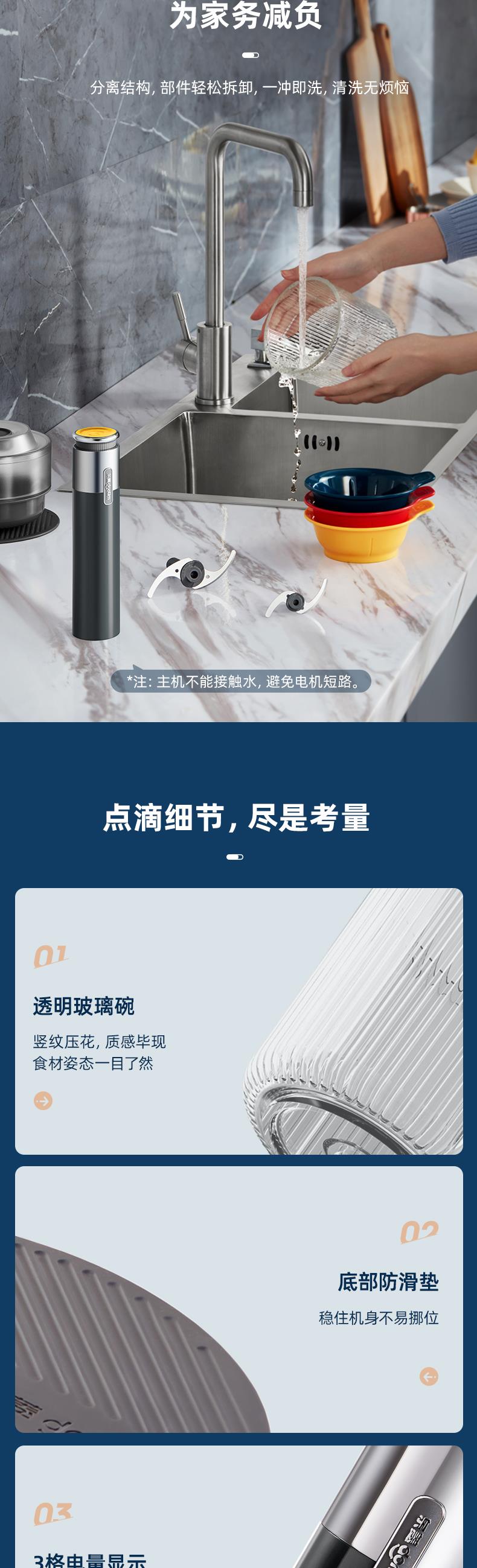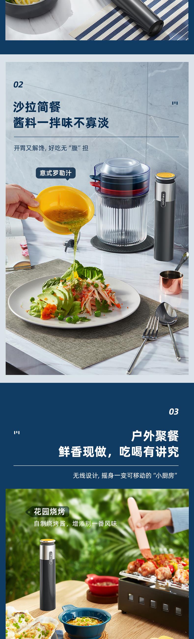 【自营】 东菱 无线百味备餐佐料机绞肉机 500ml(绞肉碗) 100ml*3(佐料碗) 钛金灰 DL-6082