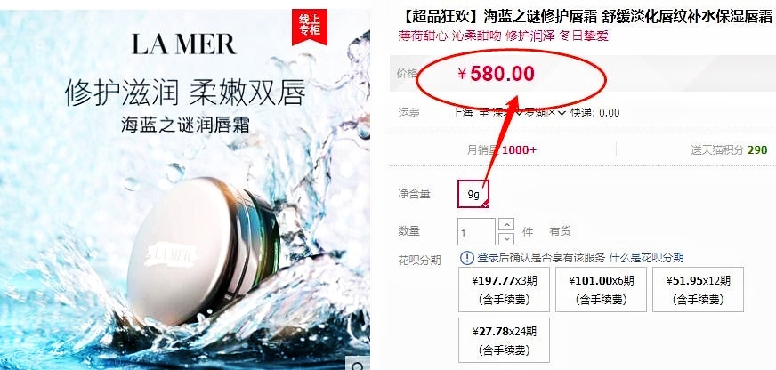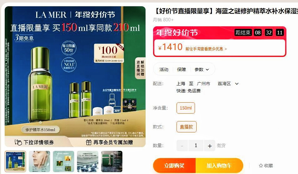 【品名】海蓝之谜正装两件套(精粹水150ml+唇膏9g)