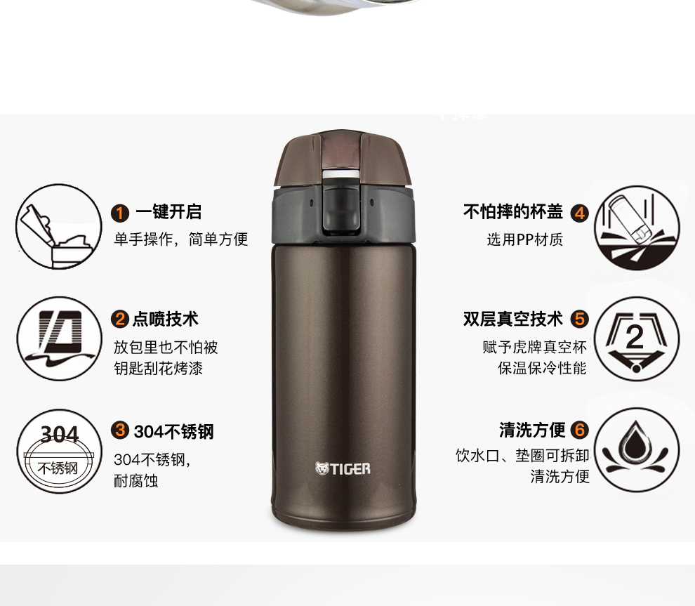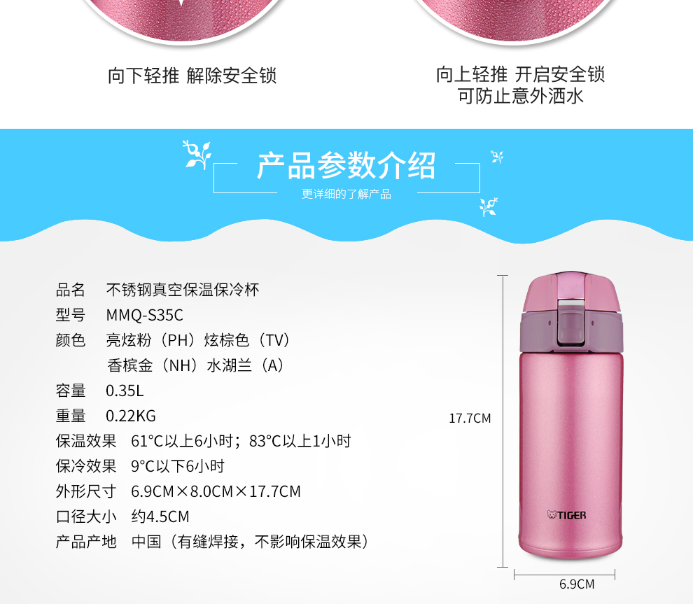 TIGER/虎牌不锈钢保温杯真空保冷杯男女办公直饮杯 MMQ-S35C