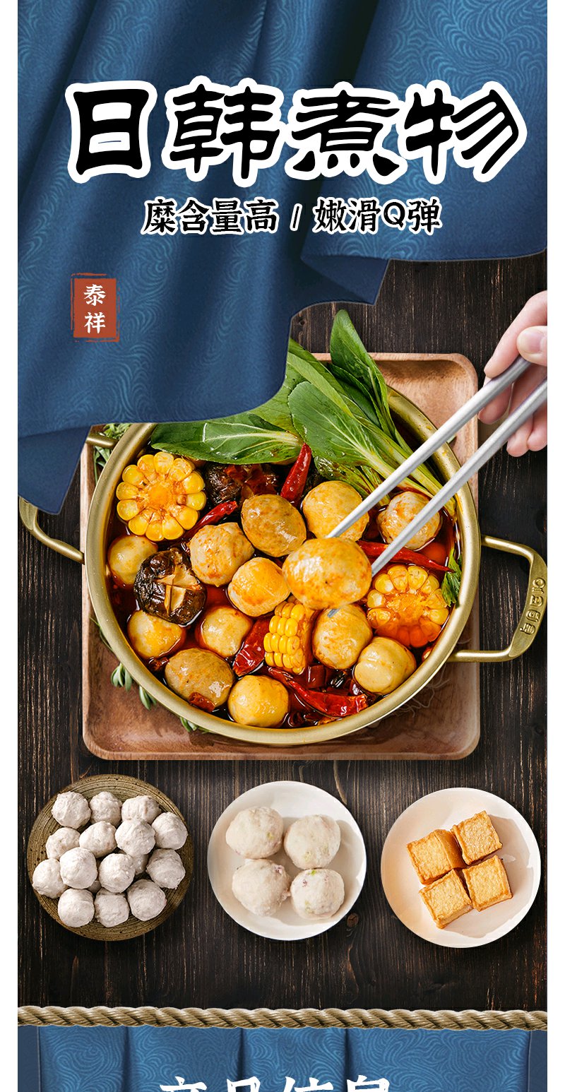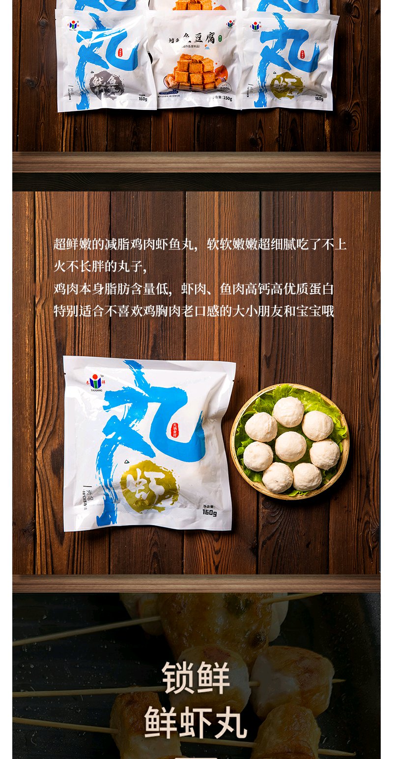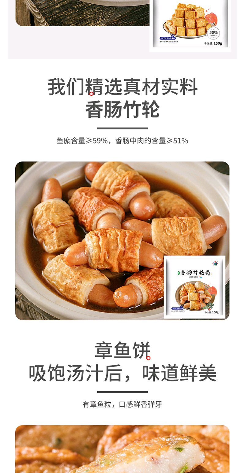 【泰祥火锅丸子组合】虾丸160g*2袋+鱿鱼竹笋丸160g*2袋+鱼豆腐150g*2袋丨火锅绝配|||关东煮711同款|全烧竹轮+章鱼糜饼+鱼豆腐+香肠卷+鱼饼【保质期12个月】