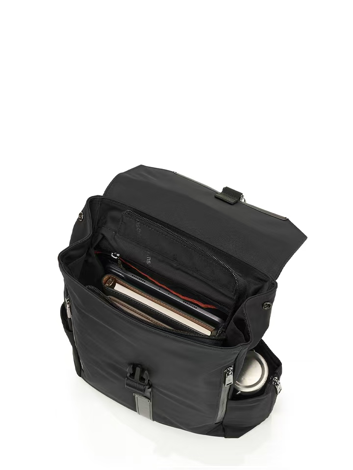 新秀丽时尚休闲百搭抽绳翻盖黑色单肩斜挎包 轻便简约,