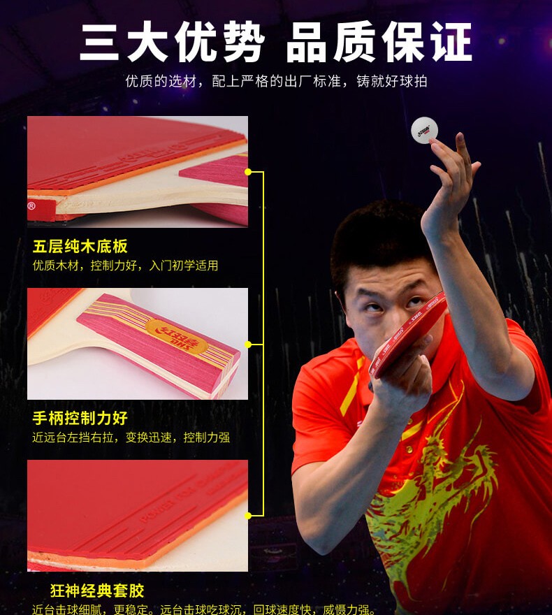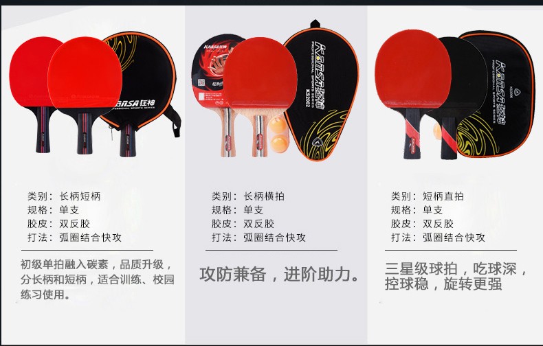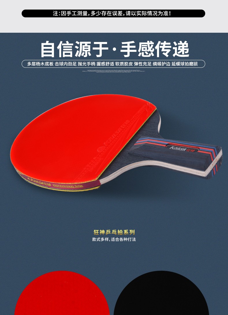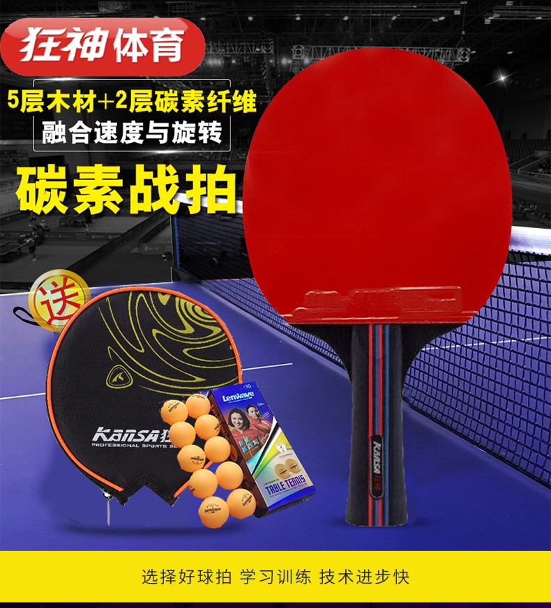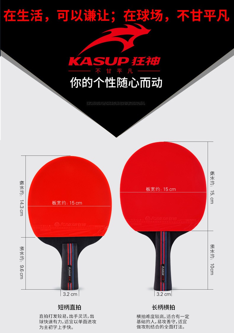 狂神乒乓球拍 儿童学生双反碳素成品拍子 二星进阶横拍ks2002