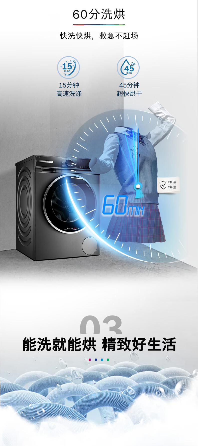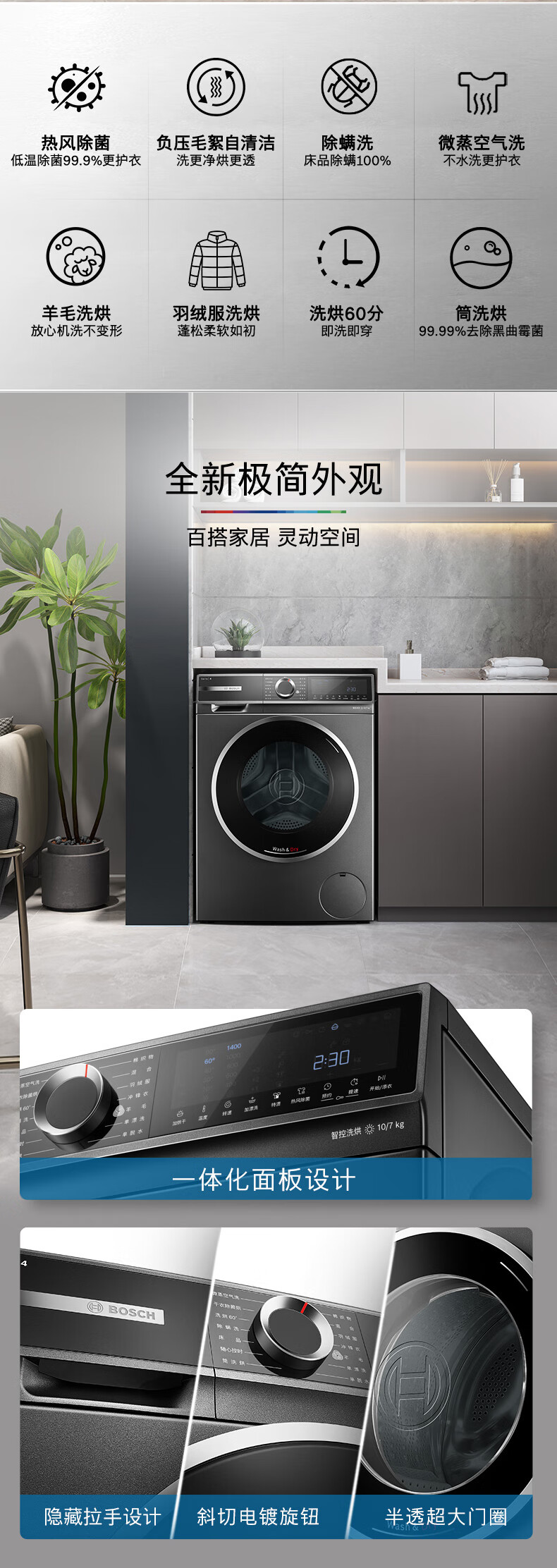 博世(BOSCH)【博世门店专享】10KG家用变频滚筒洗烘一体洗衣机WNG254010W星云灰