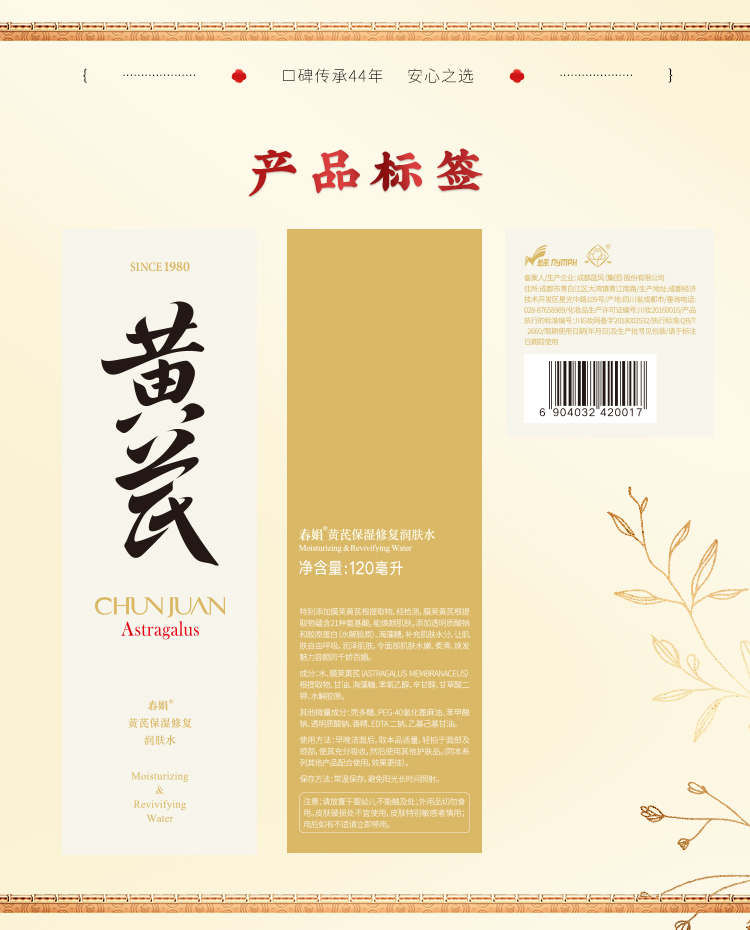 春娟黄芪保湿修复润肤水120ml