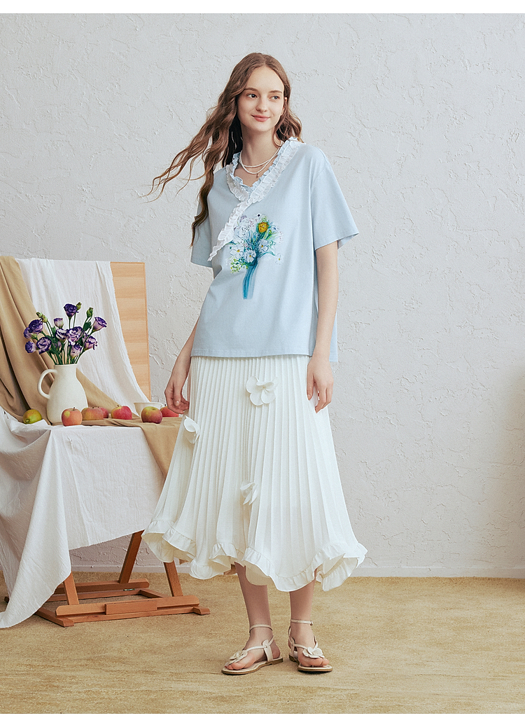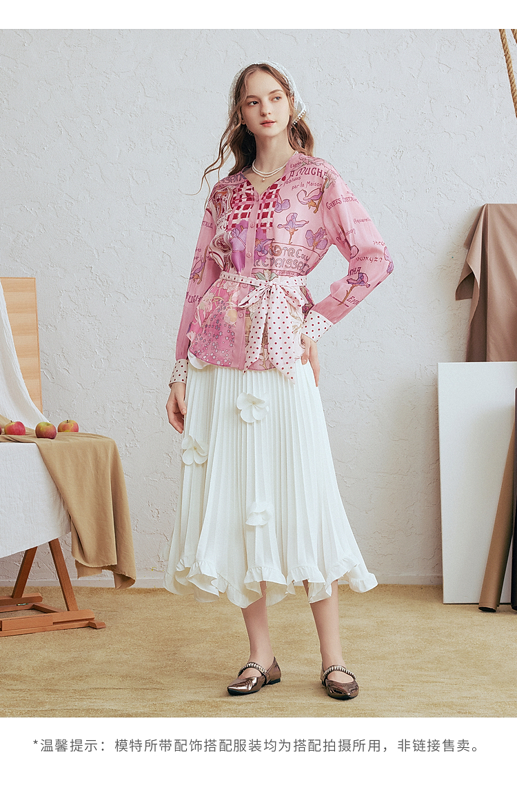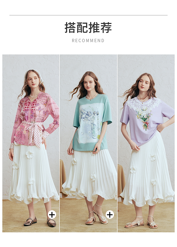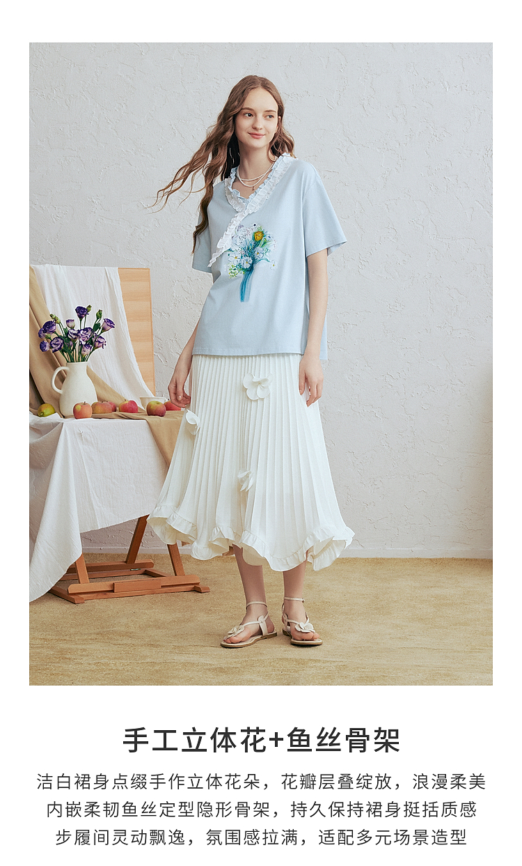 两三事茉莉花道2026春季新款甜美立体花朵木耳边裙摆百褶裙半身裙