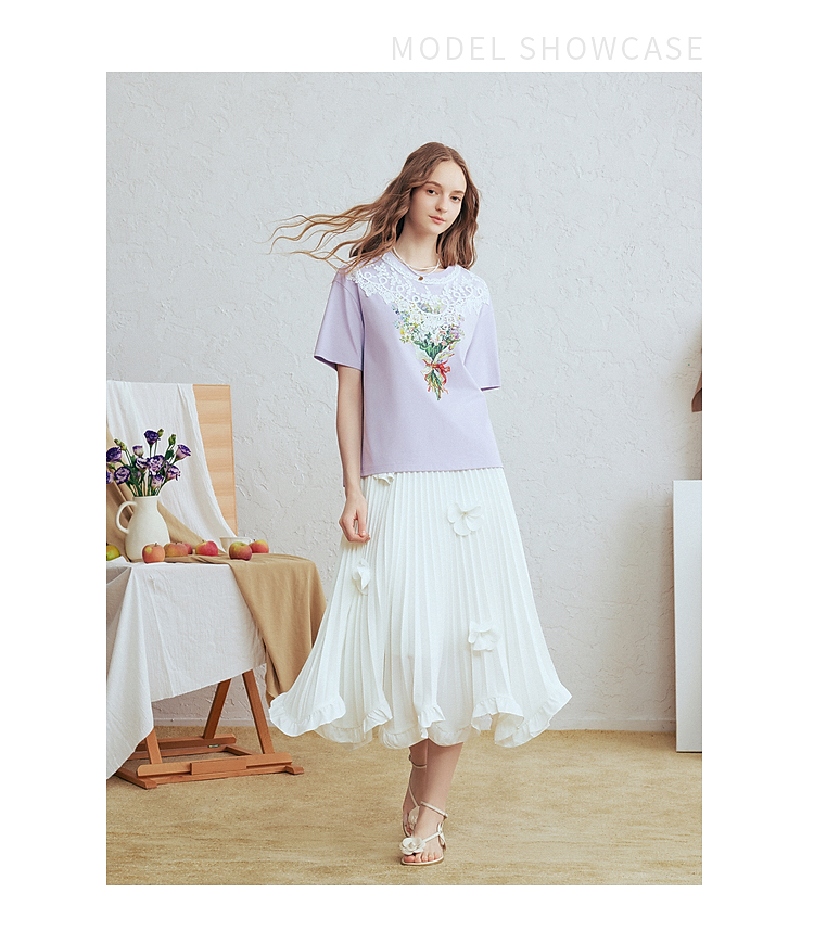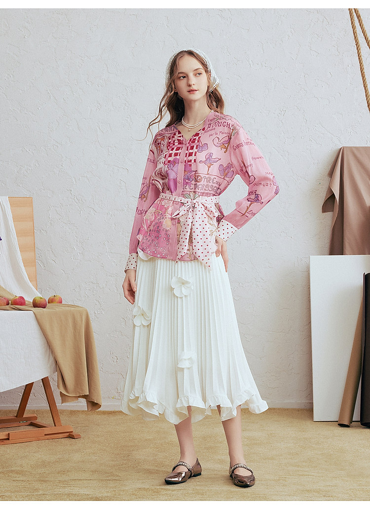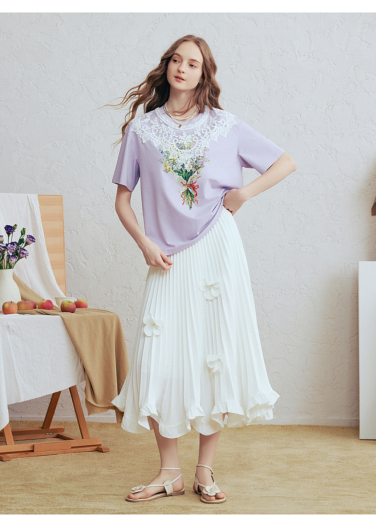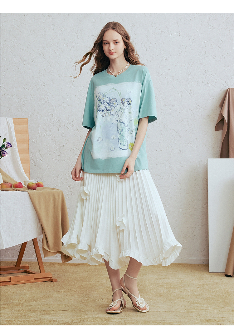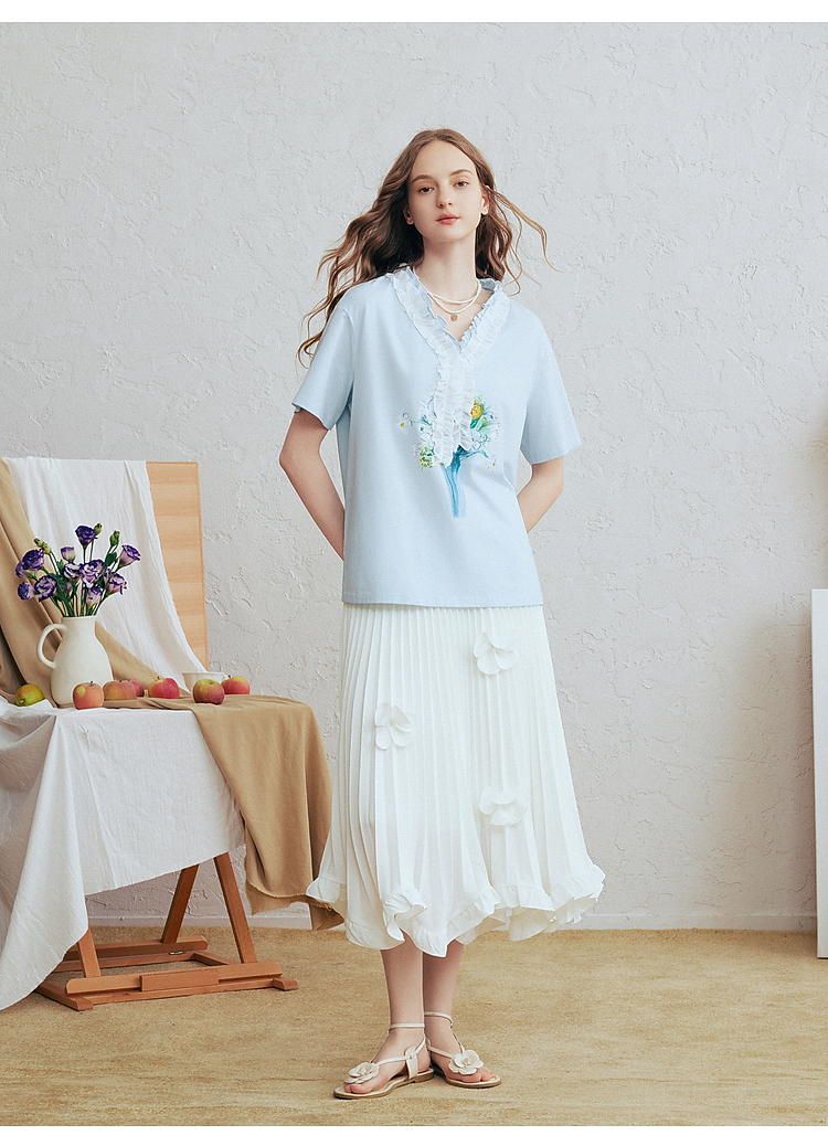 两三事茉莉花道2026春季新款甜美立体花朵木耳边裙摆百褶裙半身裙
