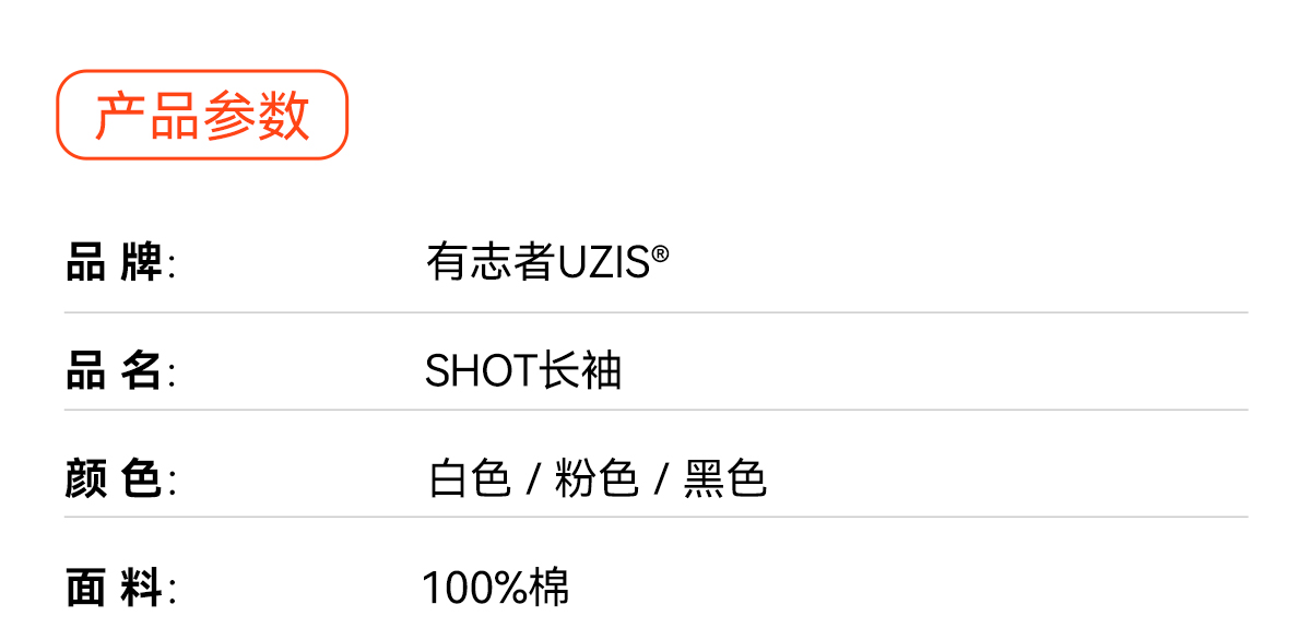 【秒杀】有志者UZIS 训练运动针织纯棉长袖SHOT