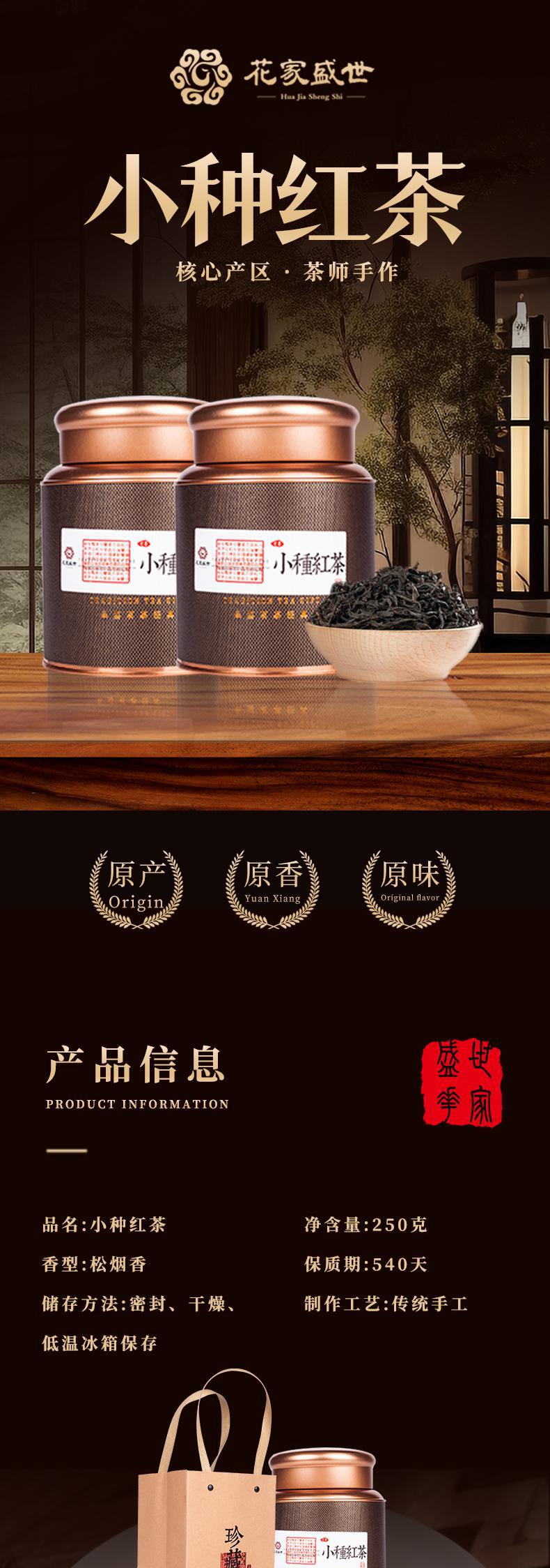 【自营】花家盛世 黑罐小种红茶250g礼袋装绿茶新鲜健康美味 HJSS-HG-XZHC-250