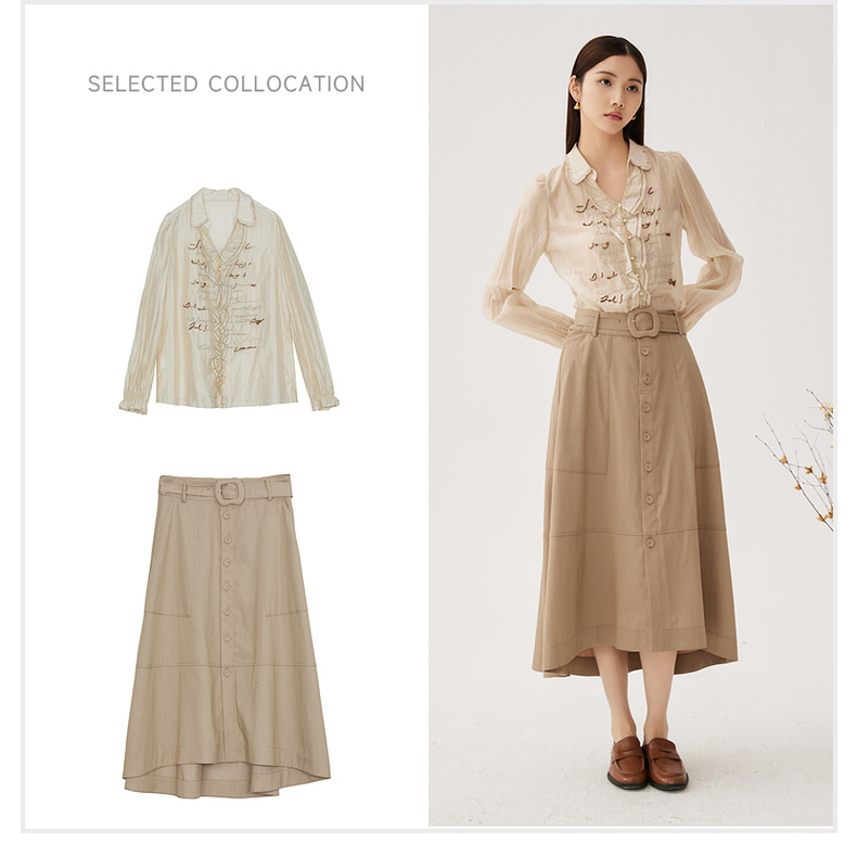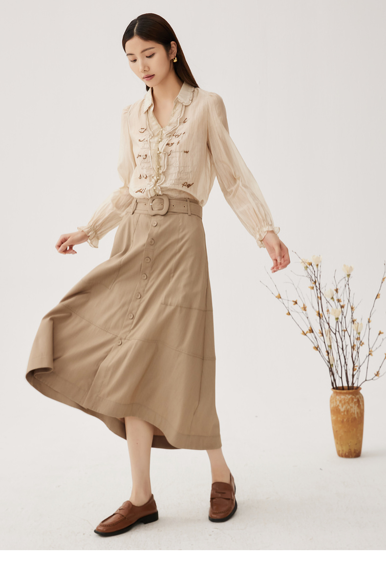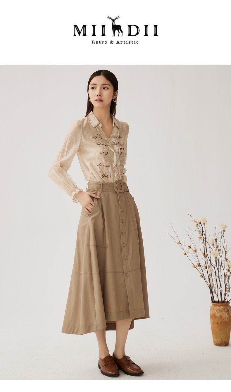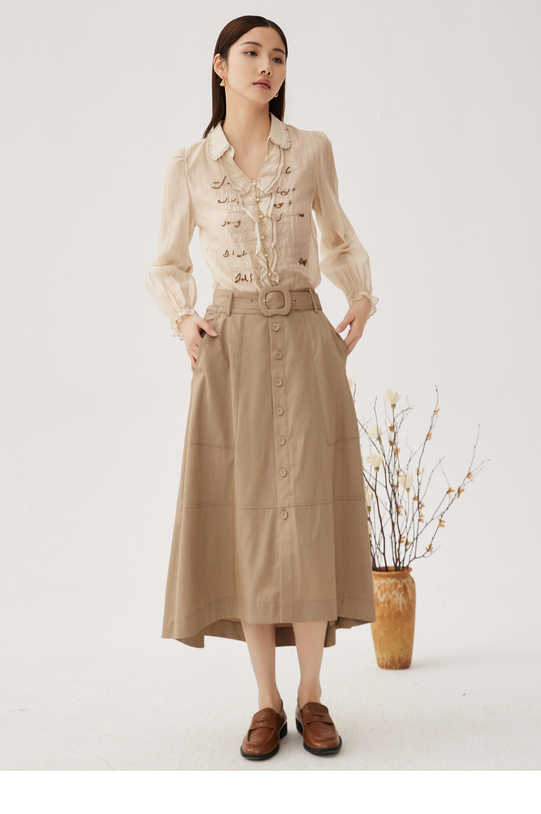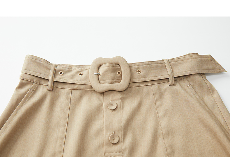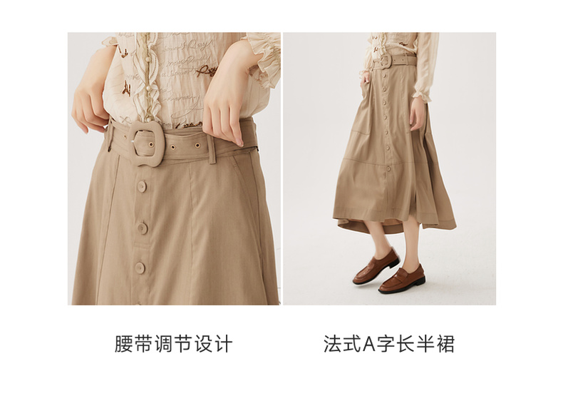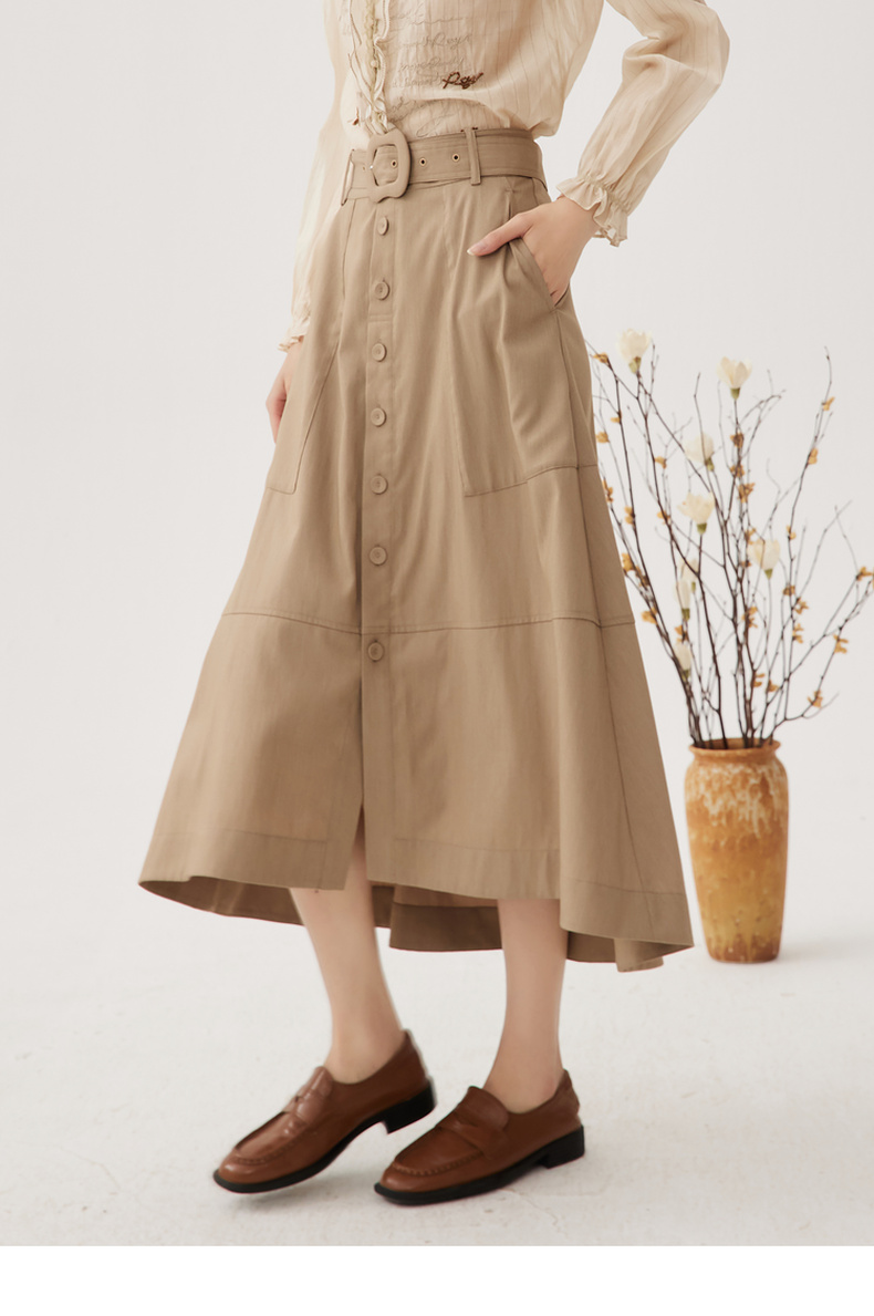 谜底A型长款半裙2024秋季新品通勤风大口袋半身裙配腰带243MB1053