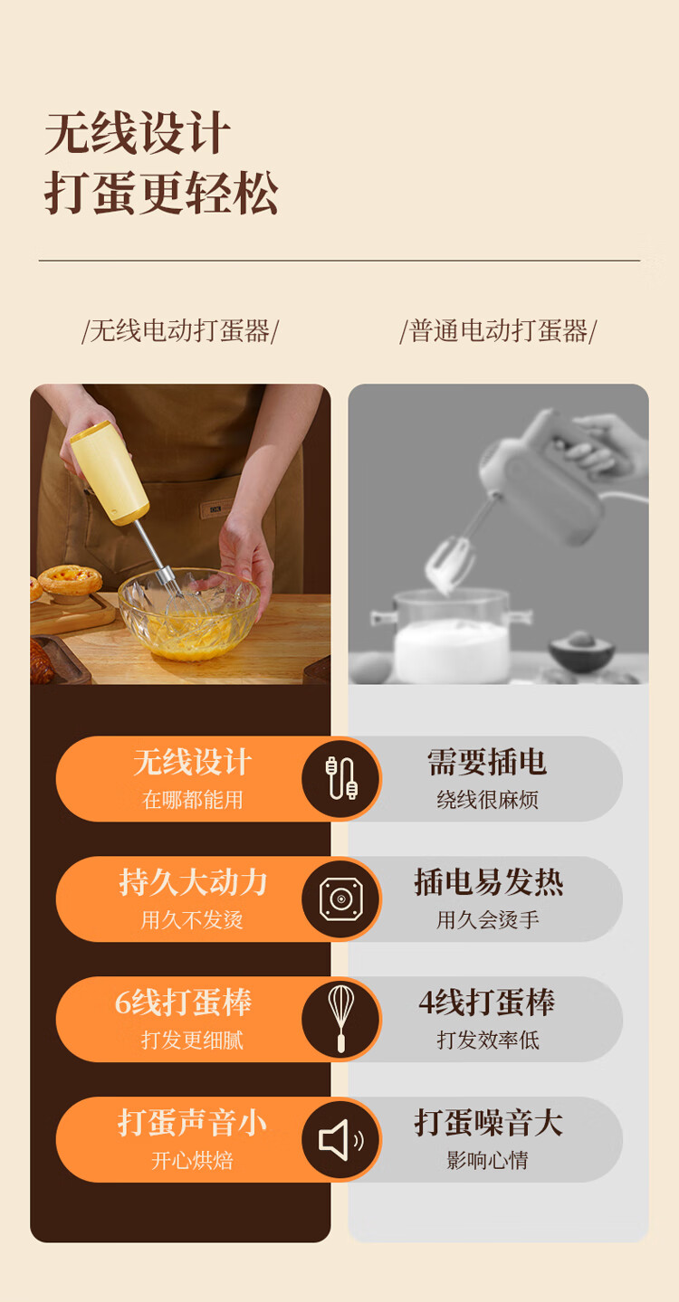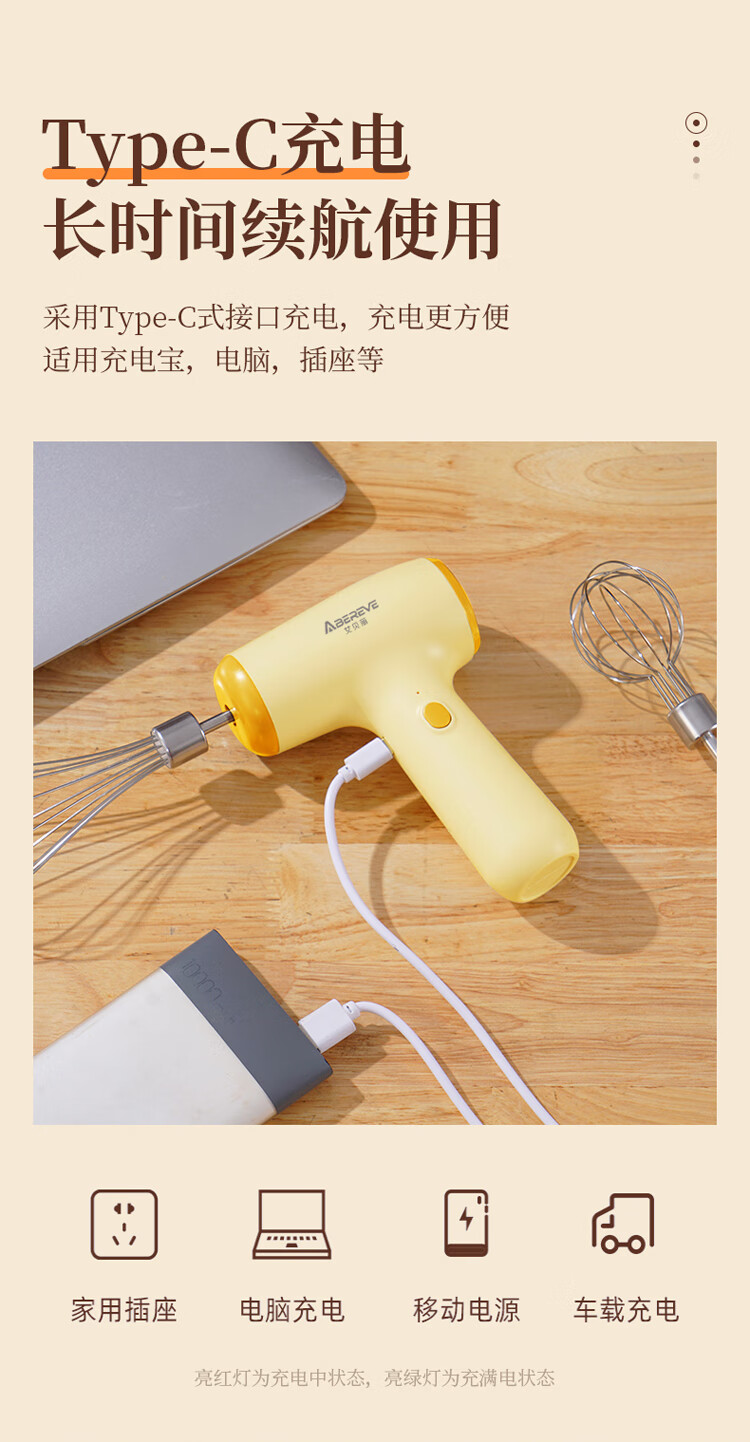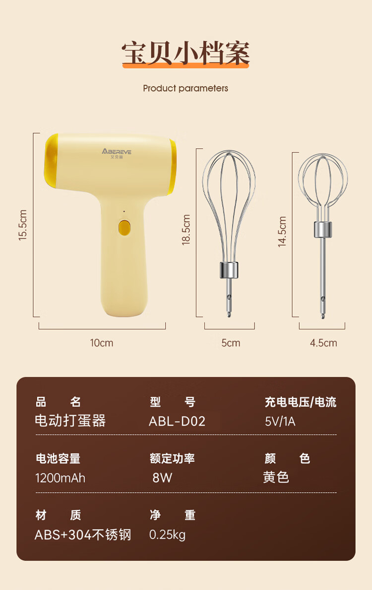 【多样屋专柜】艾贝丽无线打蛋器 明黄色