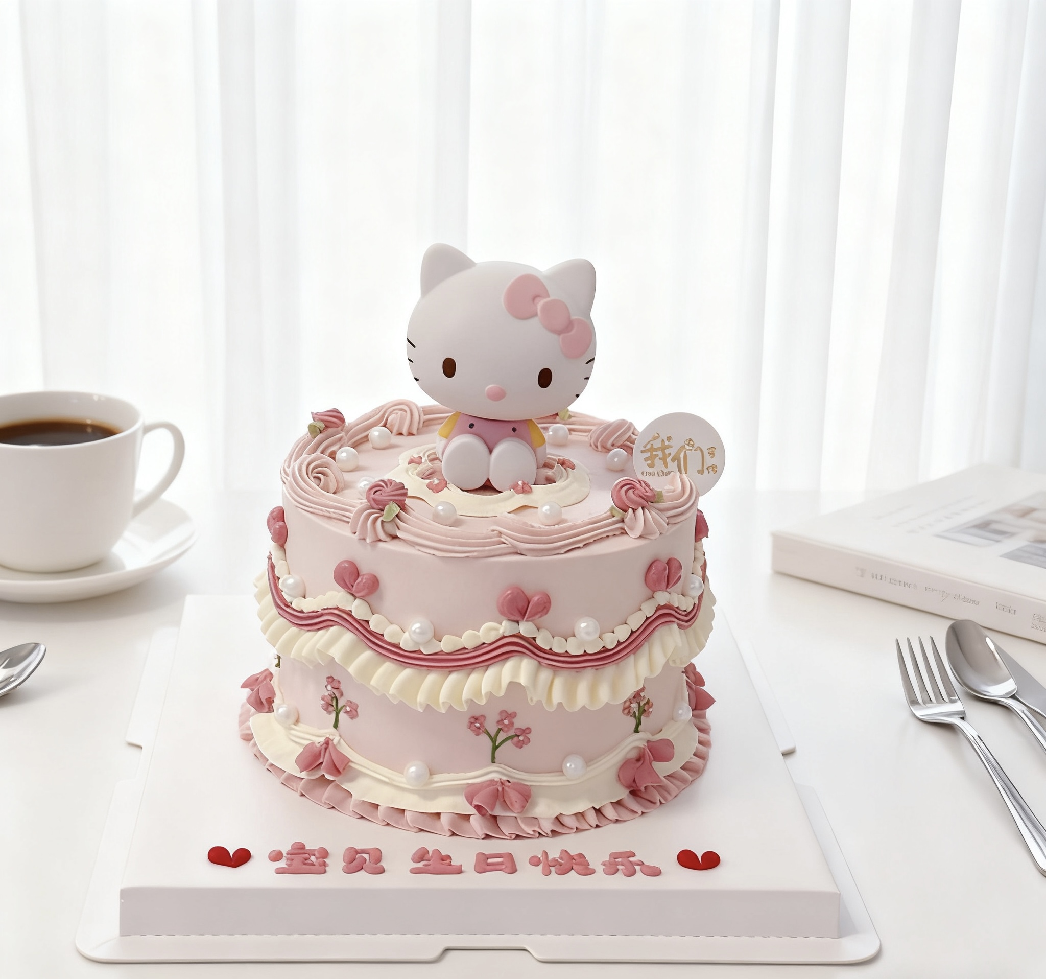 多款式~甜美复古粉色kitty卡通蛋糕-低糖处理无添加