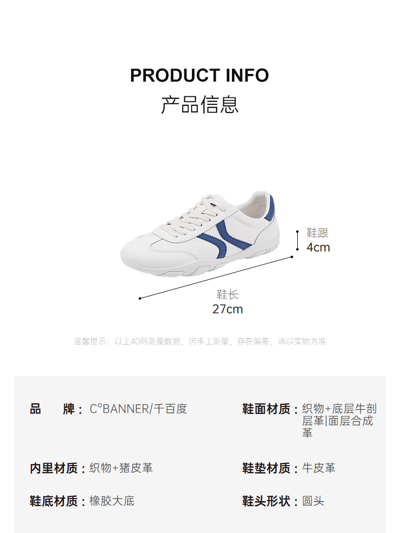 千百度厚底时尚德训鞋女款韩系增高复古运动休闲鞋A25405101