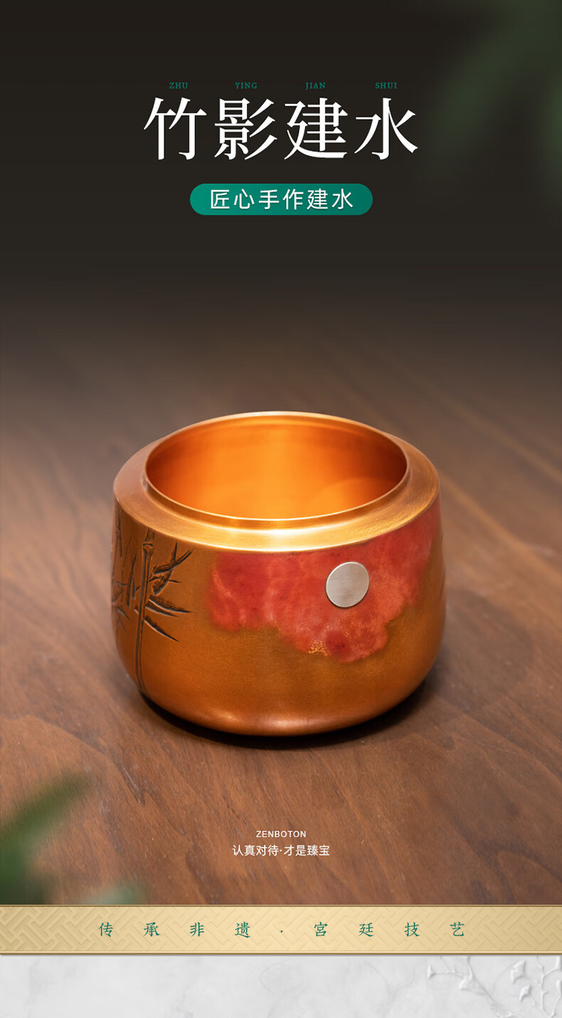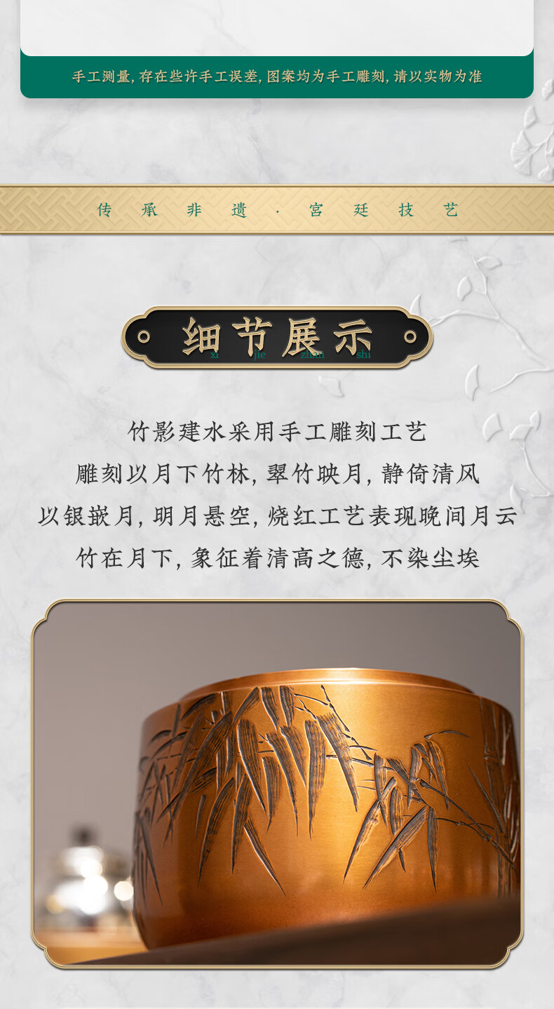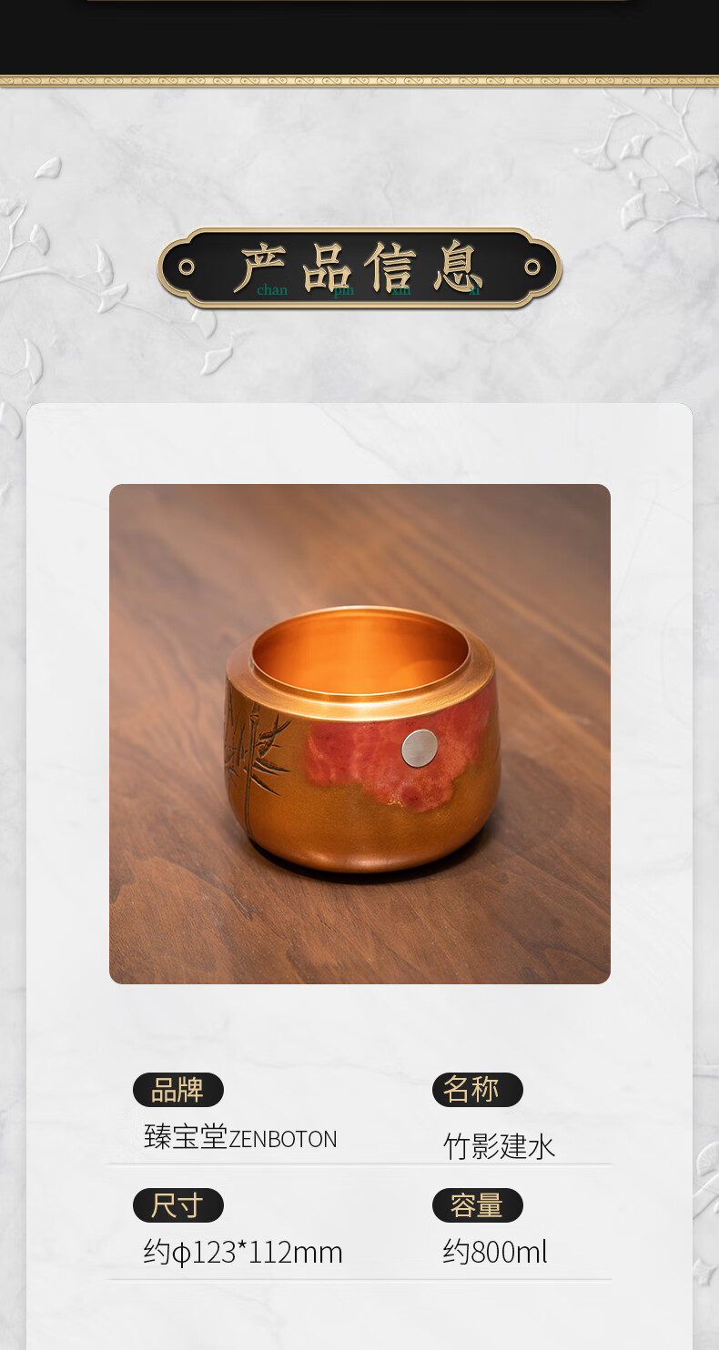 【样品特惠】臻宝堂建水纯手工雕刻竹叶茶渣桶小号铜器水盂茶洗高端功夫茶具零配件 竹韵建水 容量约800ml