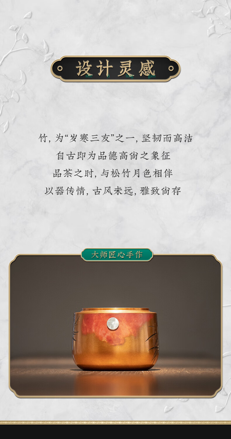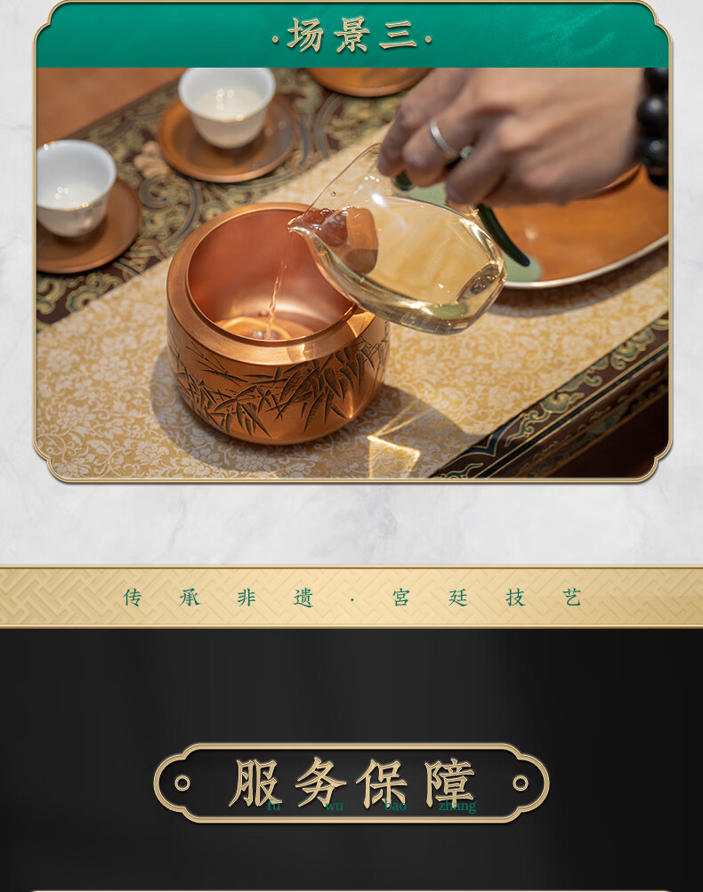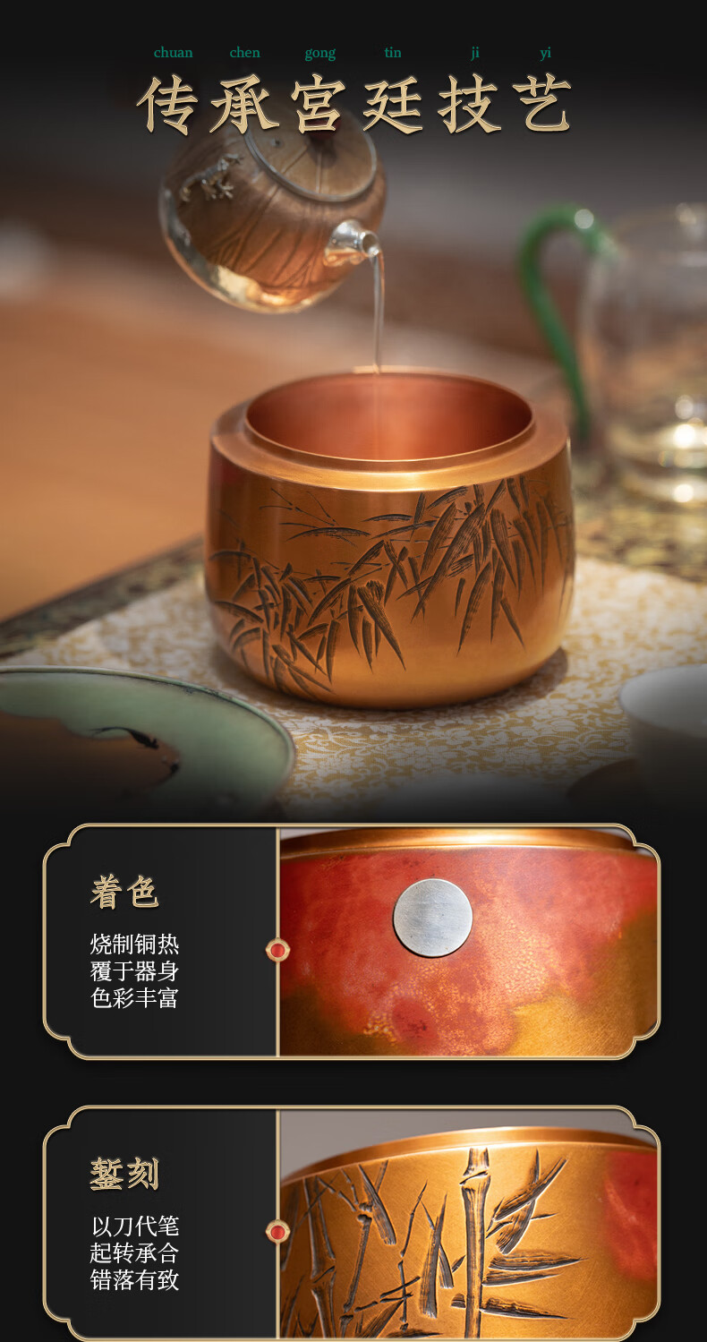 【样品特惠】臻宝堂建水纯手工雕刻竹叶茶渣桶小号铜器水盂茶洗高端功夫茶具零配件 竹韵建水 容量约800ml