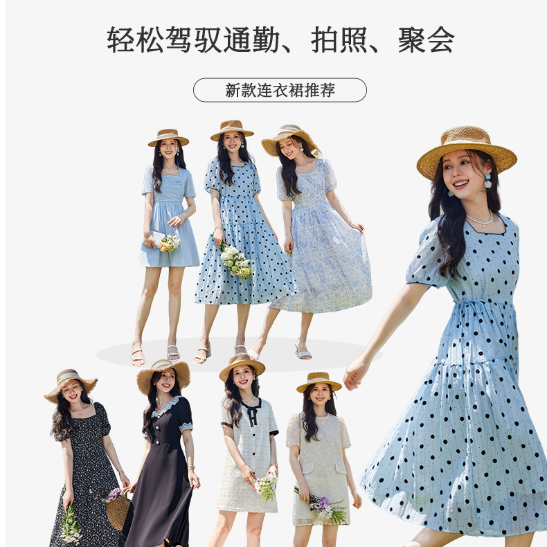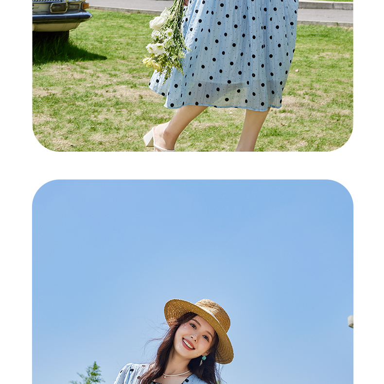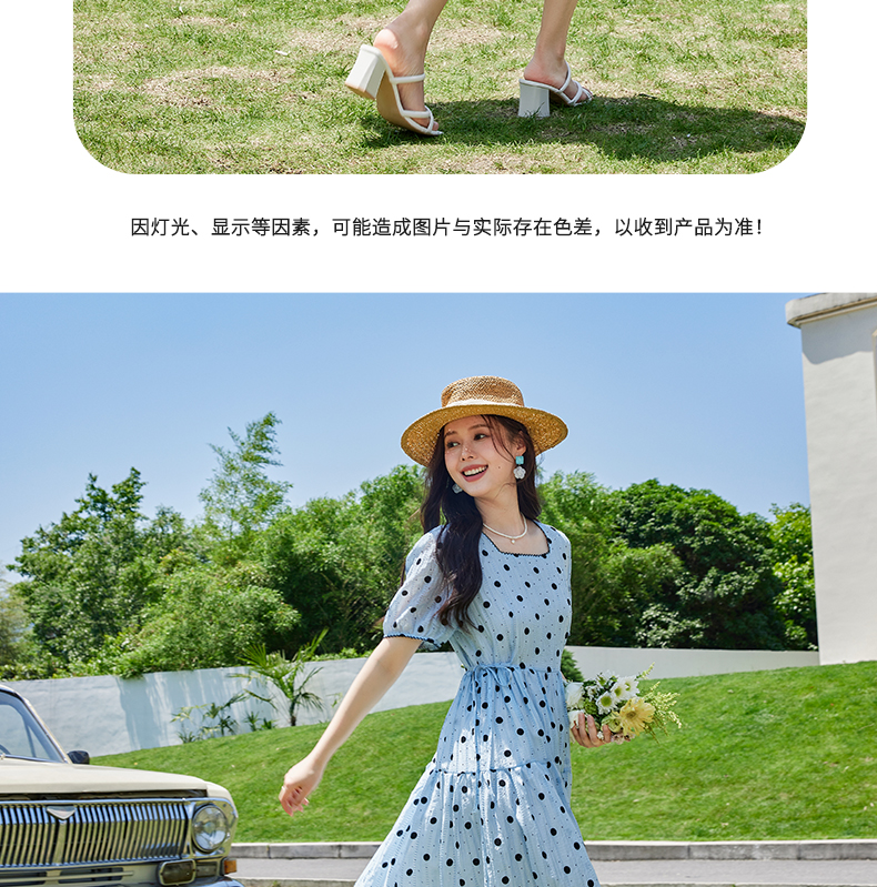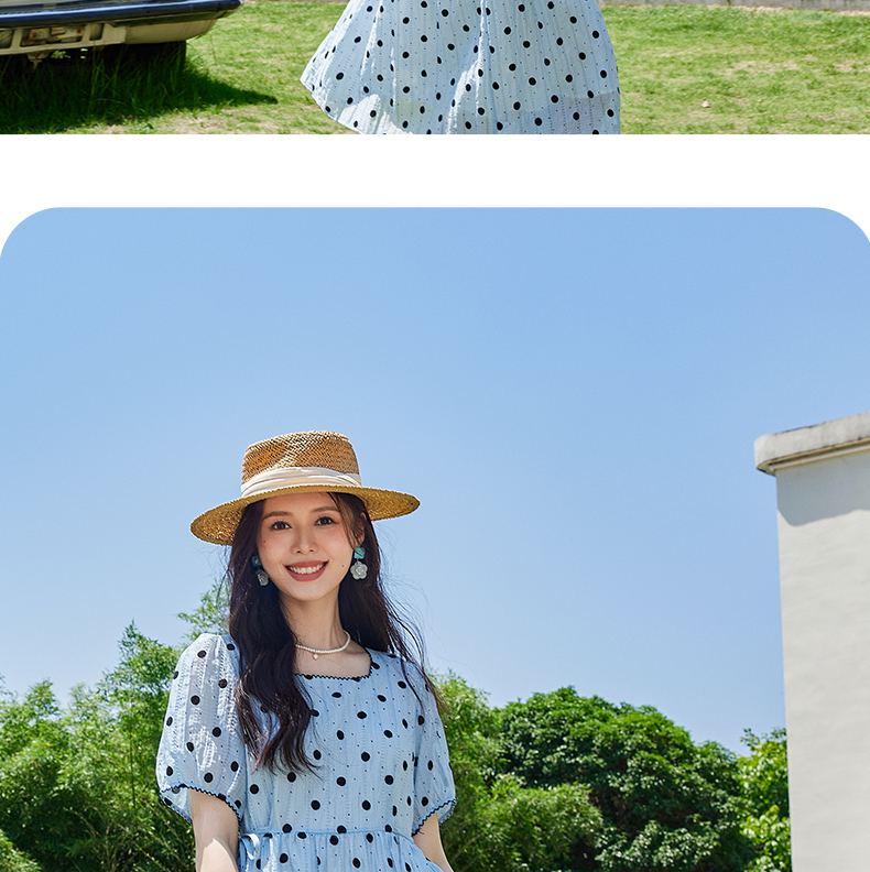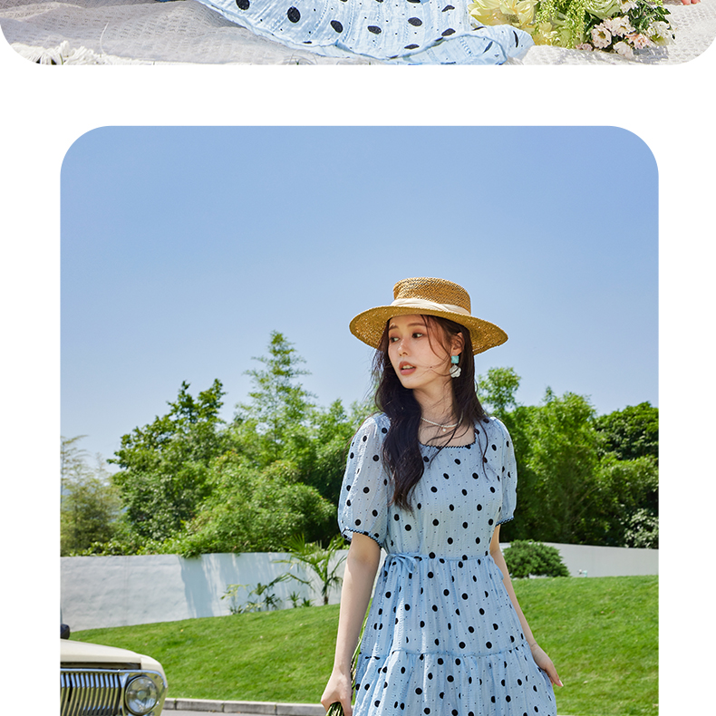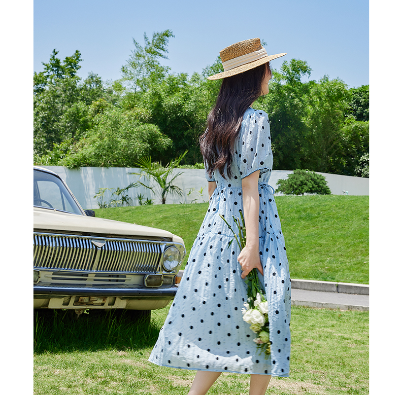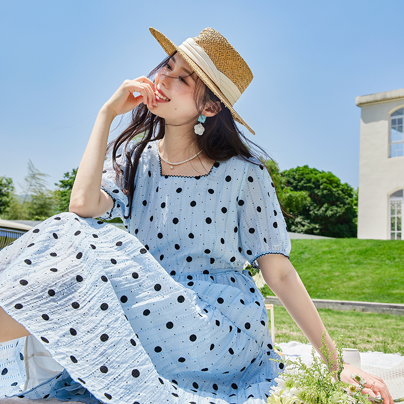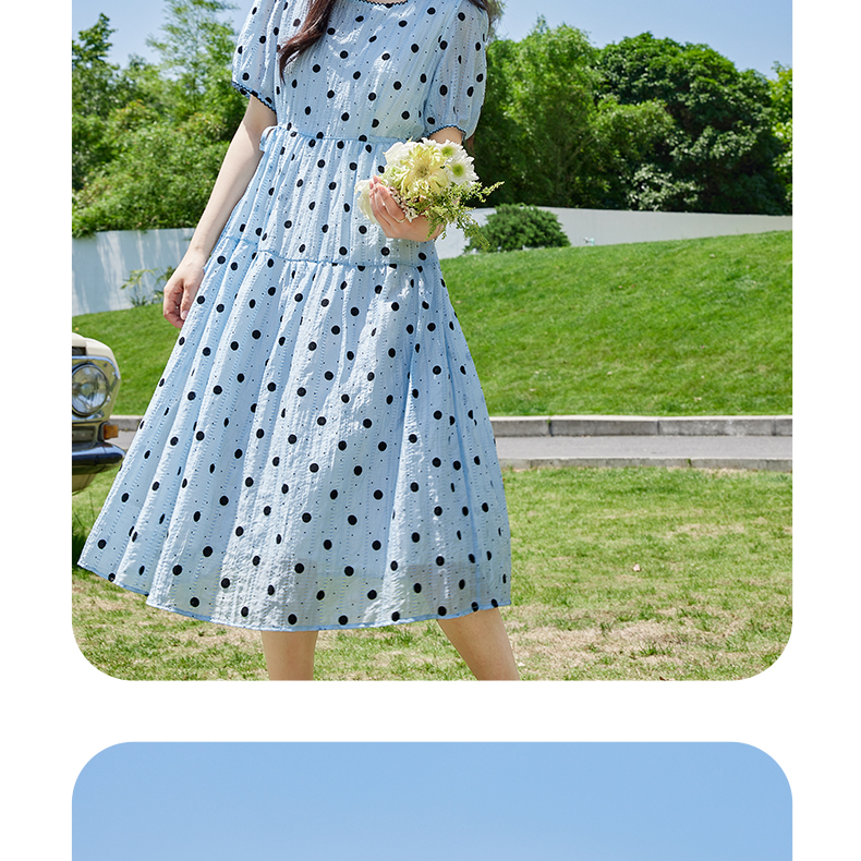 VICTORIA&VERA夏季新款超仙森系初恋温柔风遮肚子减龄波点泡泡袖法式连衣裙