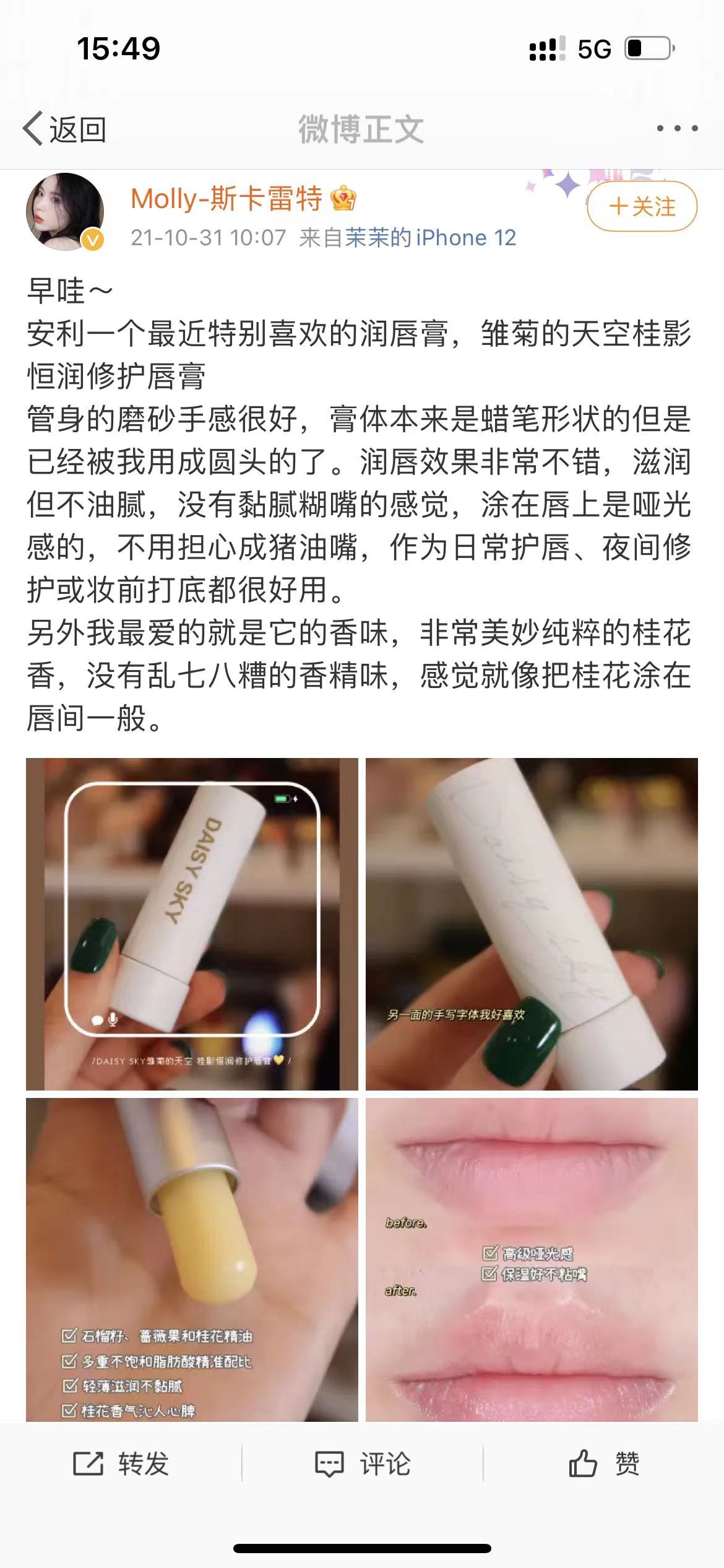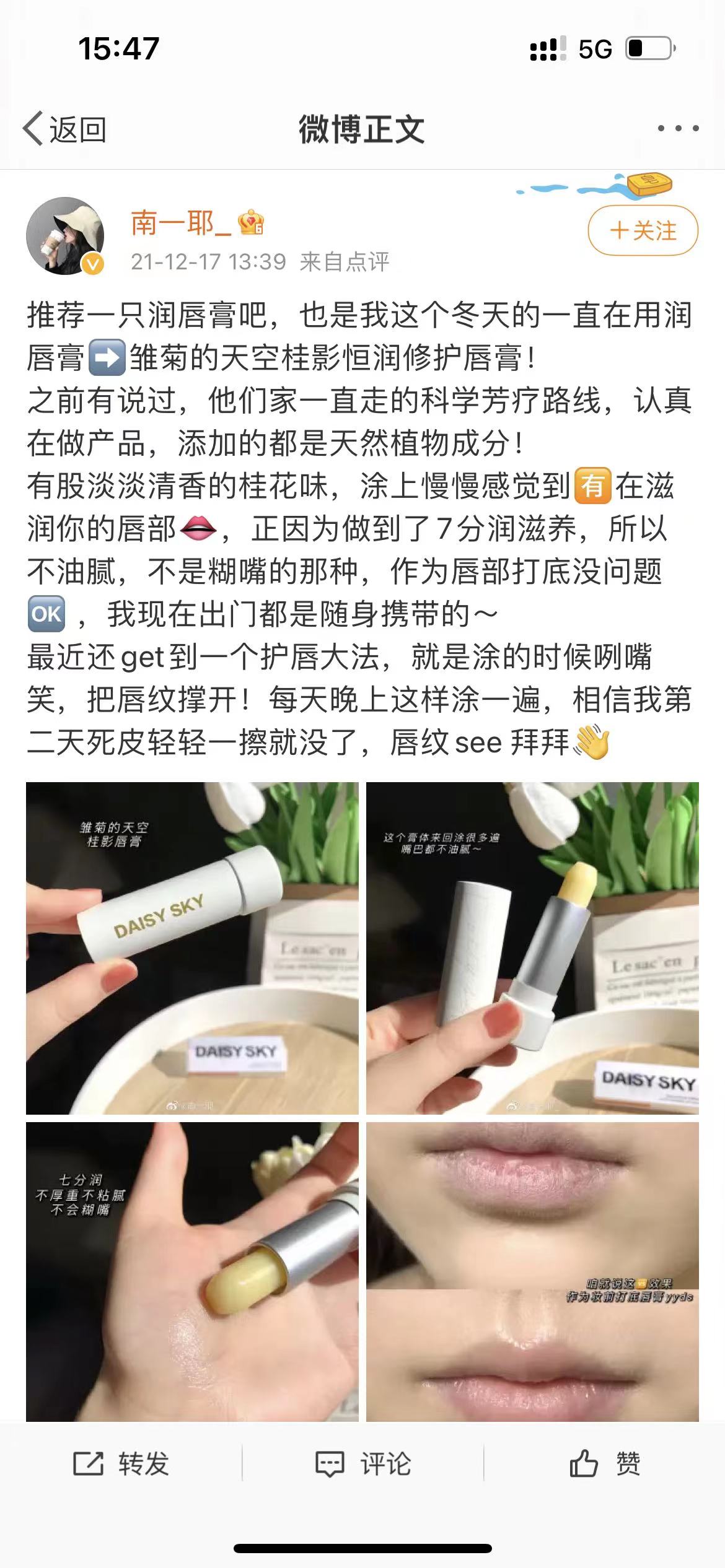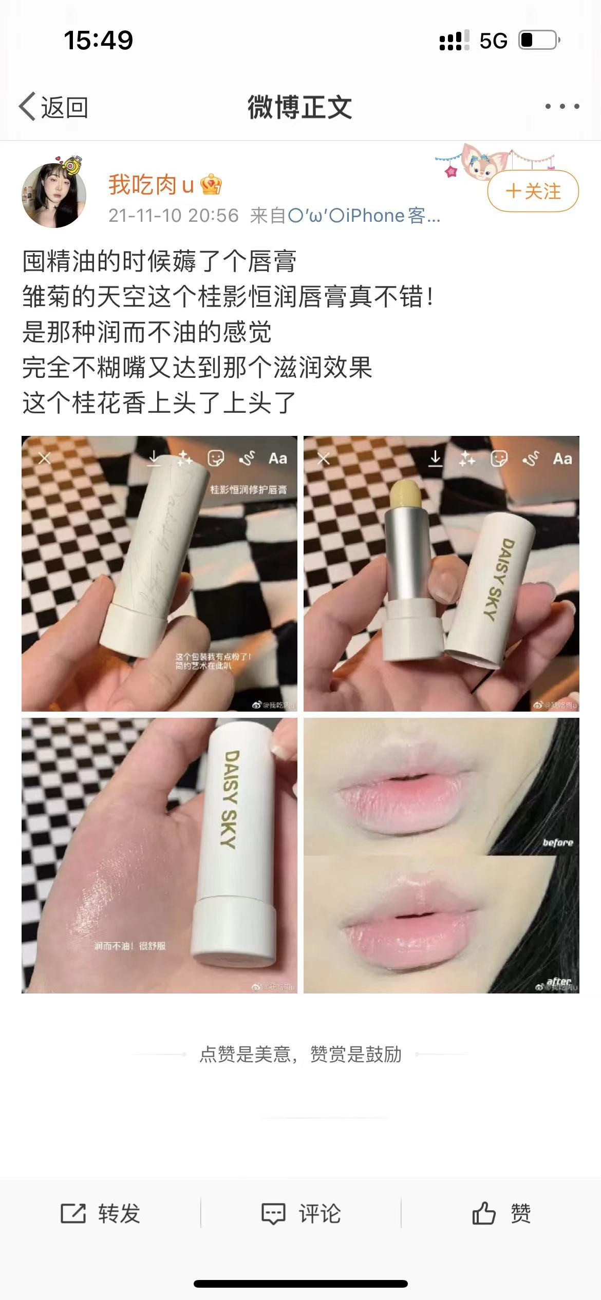 【品名】雏菊的天空润唇膏3.8g桂影桂花