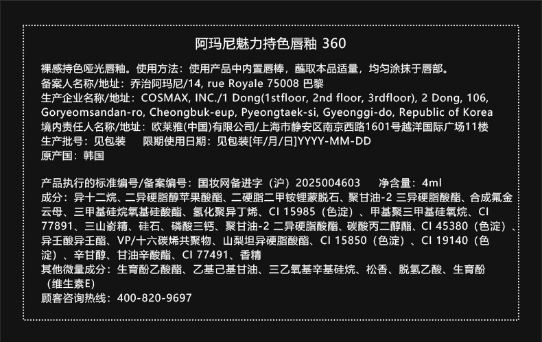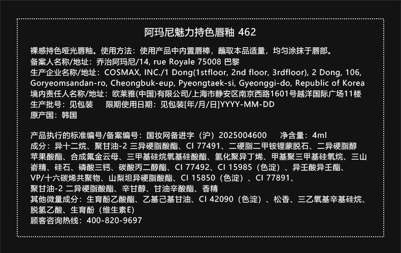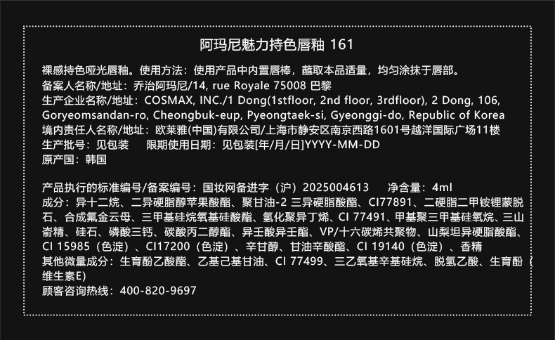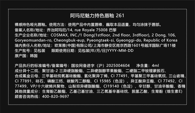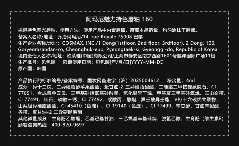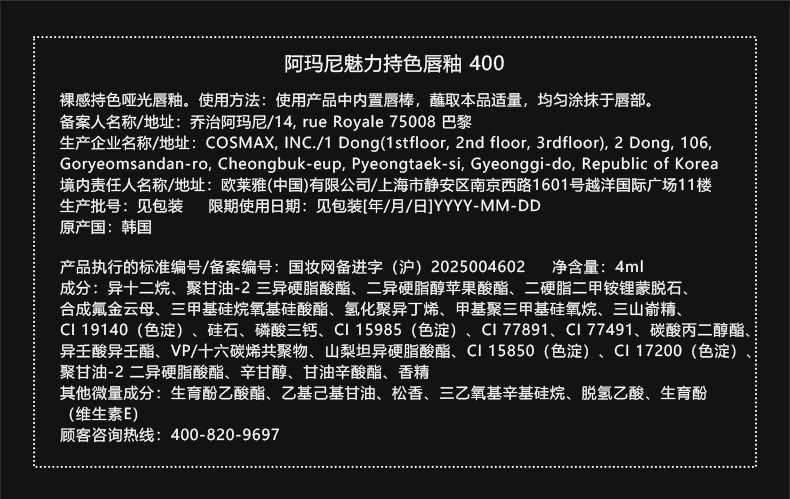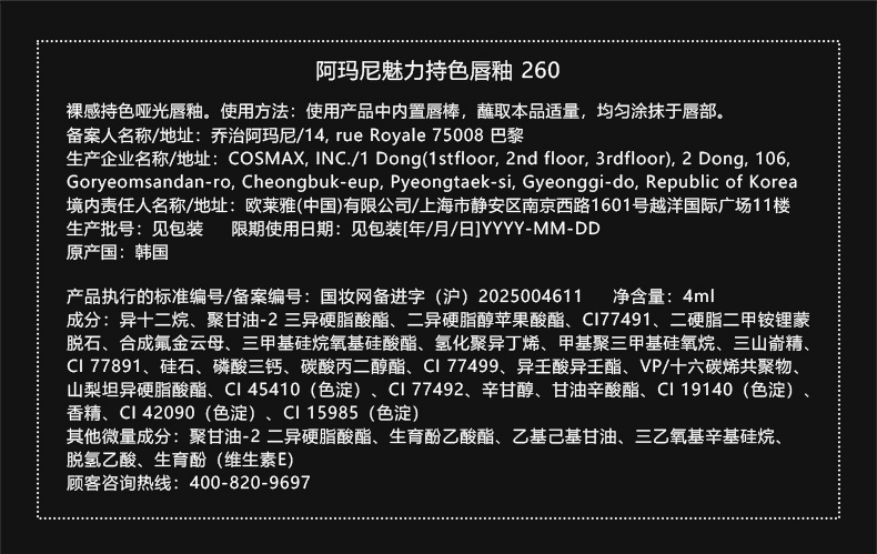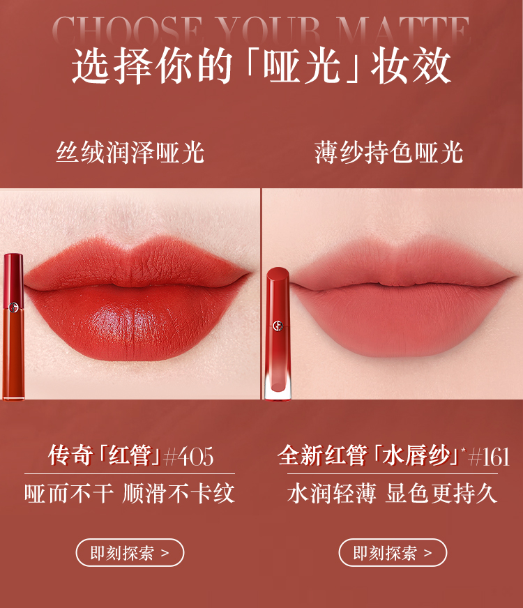 阿玛尼 全新红管水唇纱 哑光唇釉显白口红 4mL