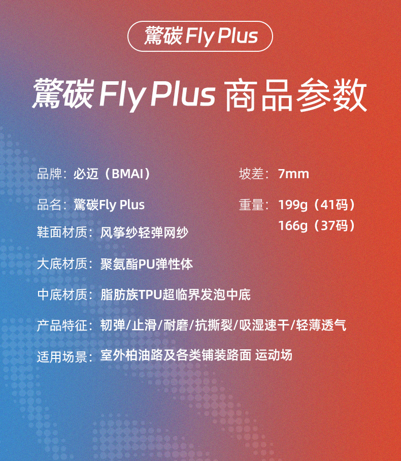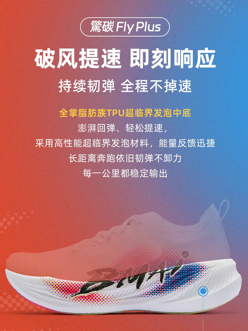必迈惊碳FLY PLUS专业运动鞋马拉松竞速碳板透气跑鞋减震跑步鞋