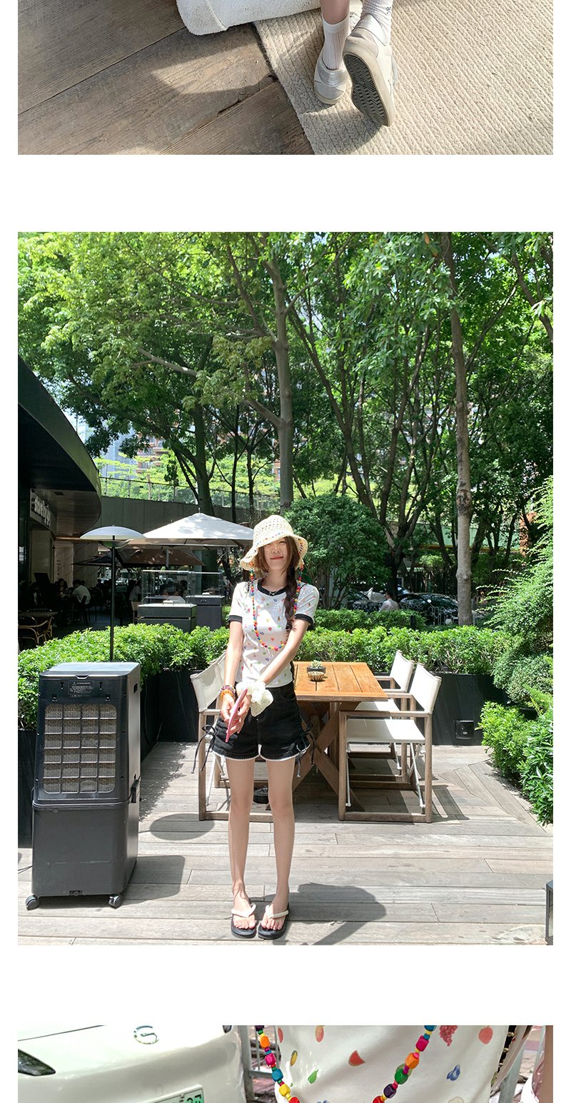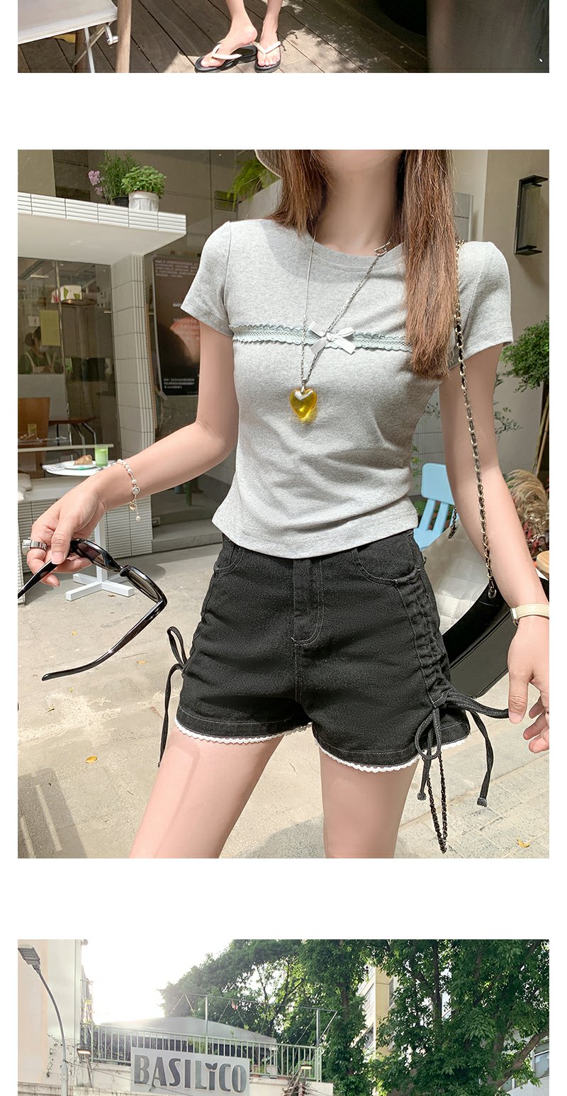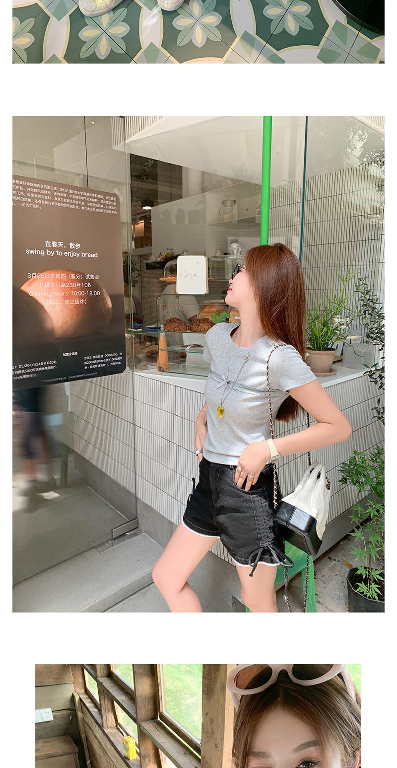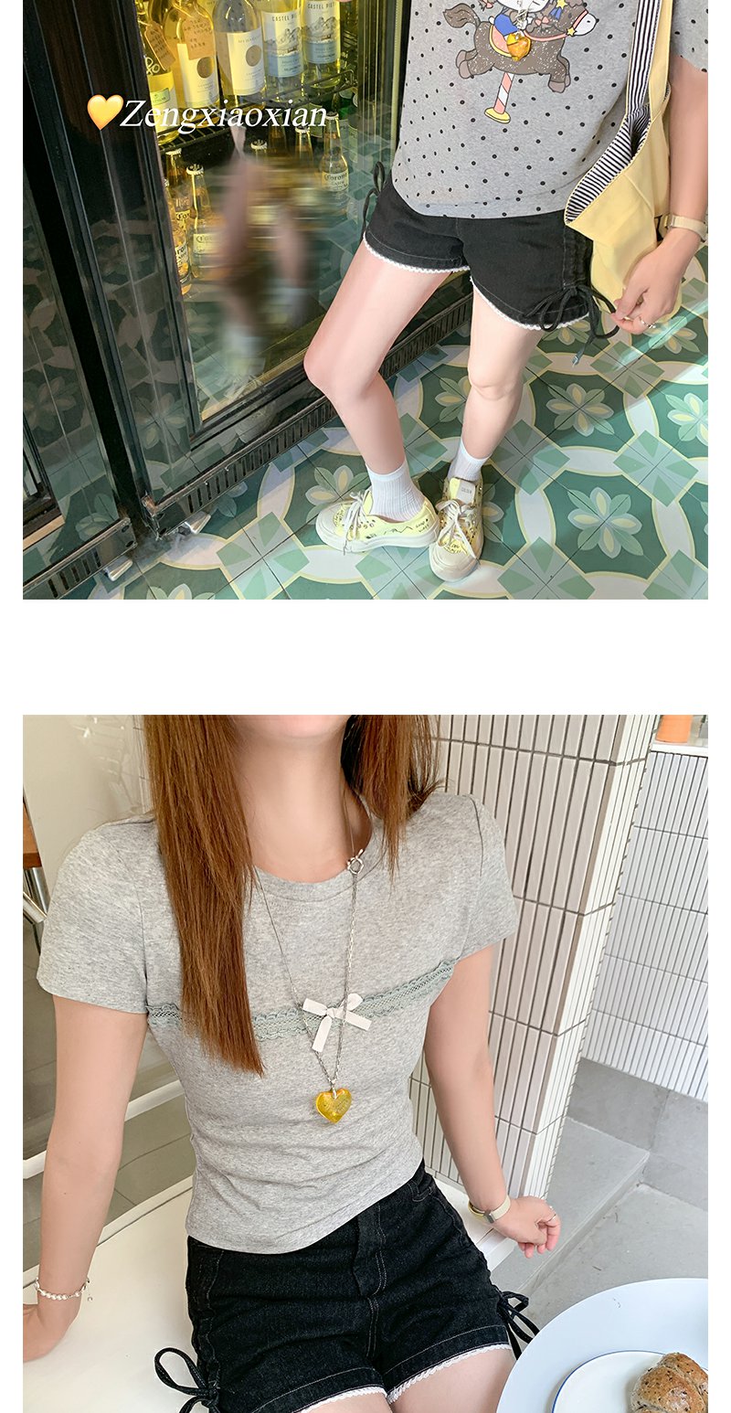 V领蕾丝短袖