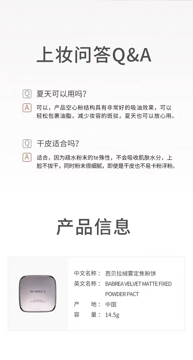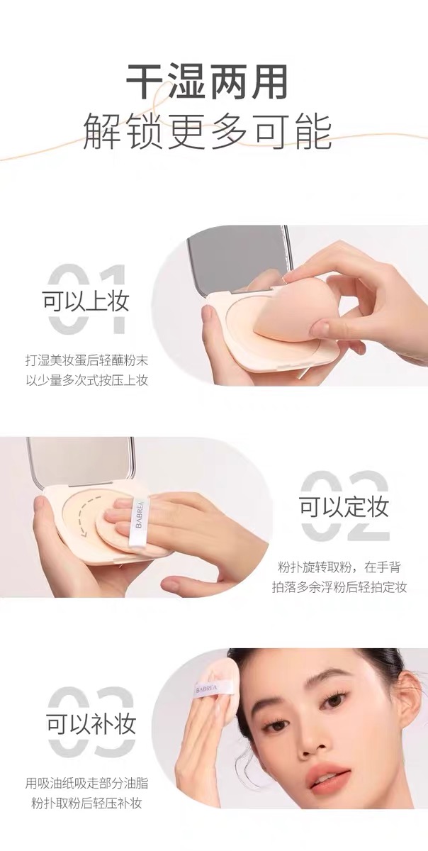 芭贝拉大粉饼控油定妆14.5g 不易脱妆持久提亮蜜粉干湿两用补妆大饼