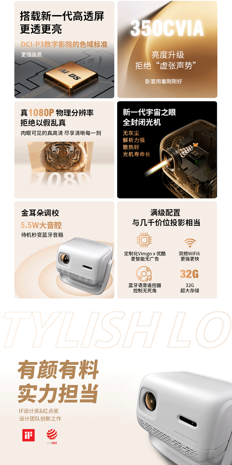 【东航技术-安徽】微果(VIMGO)V7pro超高清云台家用投影仪
