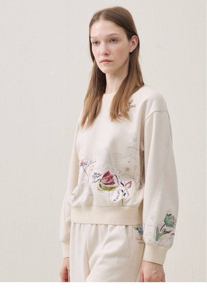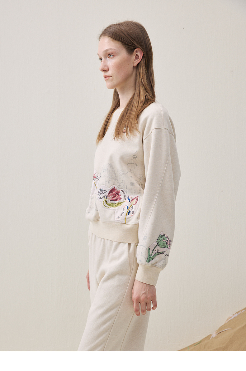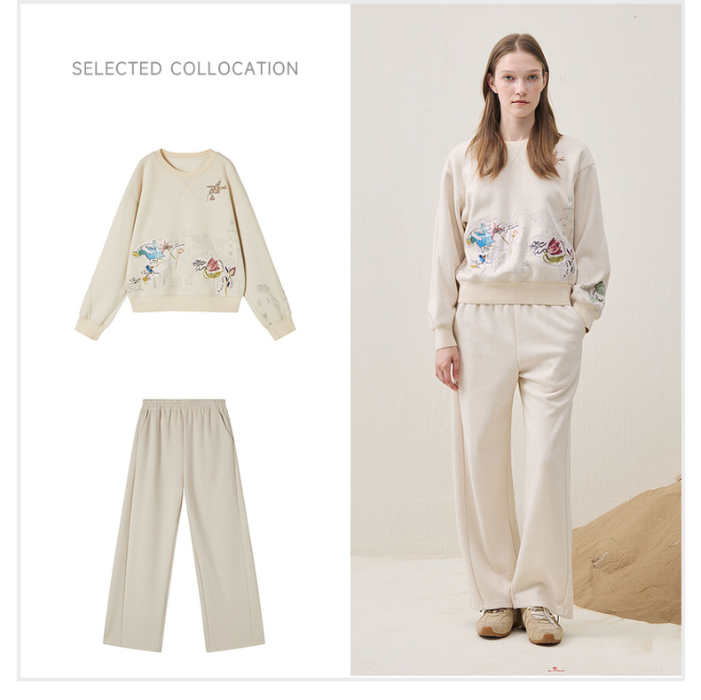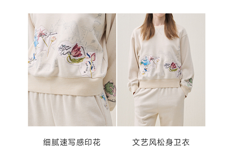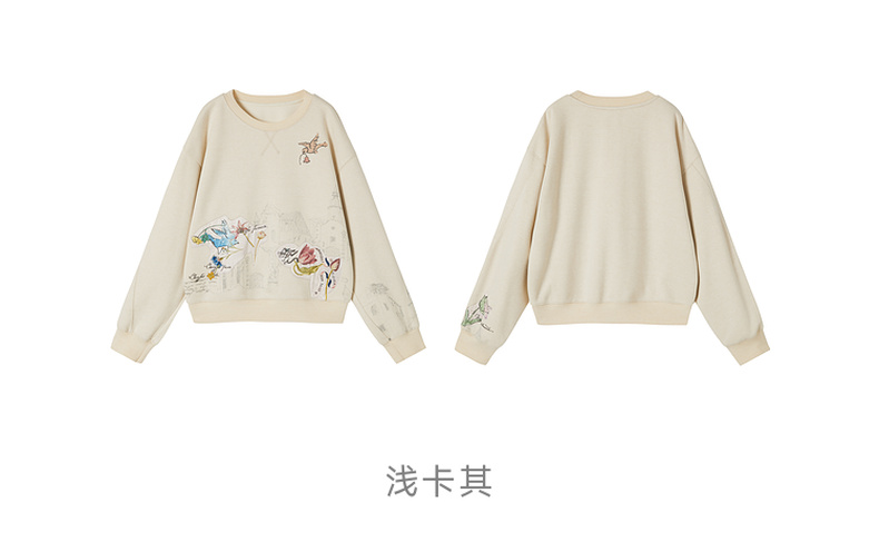 谜底圆领卫衣长袖2025冬季新品趣味贴布刺绣厚实保暖女254MV1481
