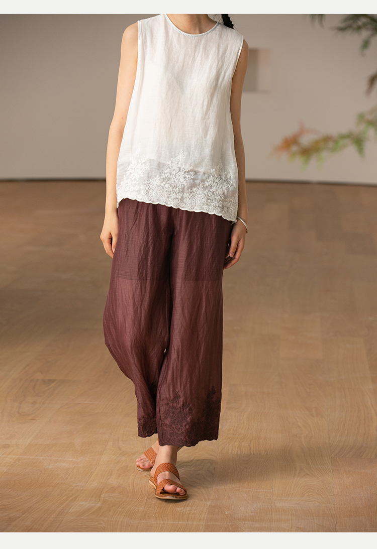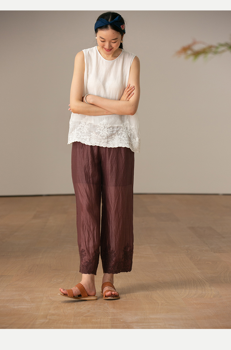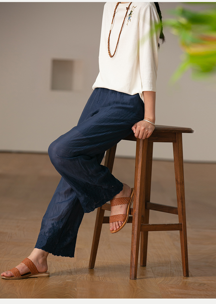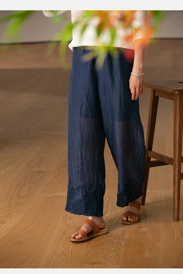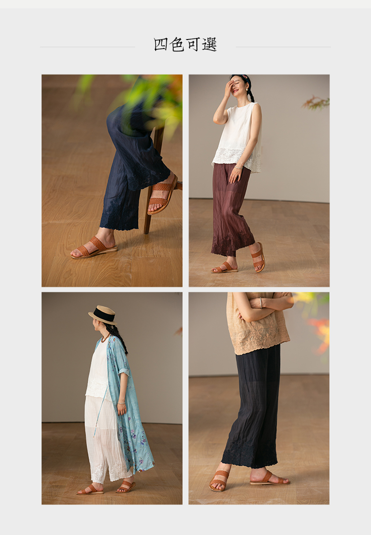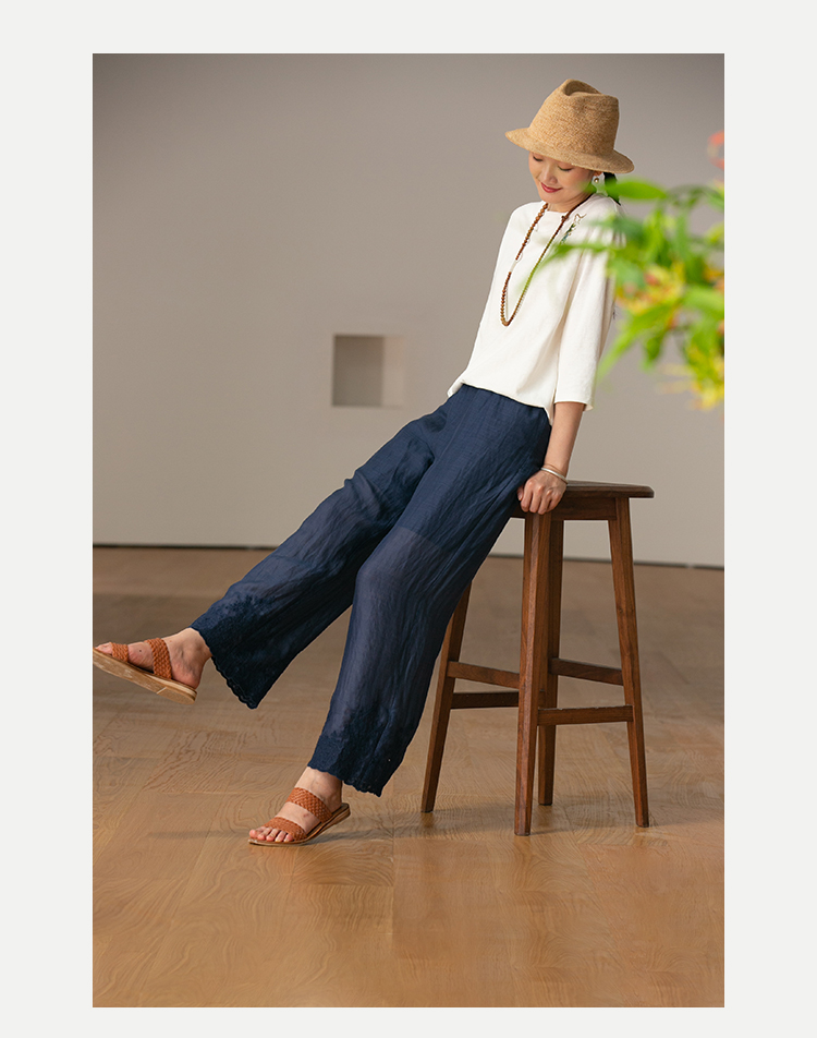 【经典回归】牧衣游原创设计女装轻薄百搭亲肤匹绣苎麻裤子 问