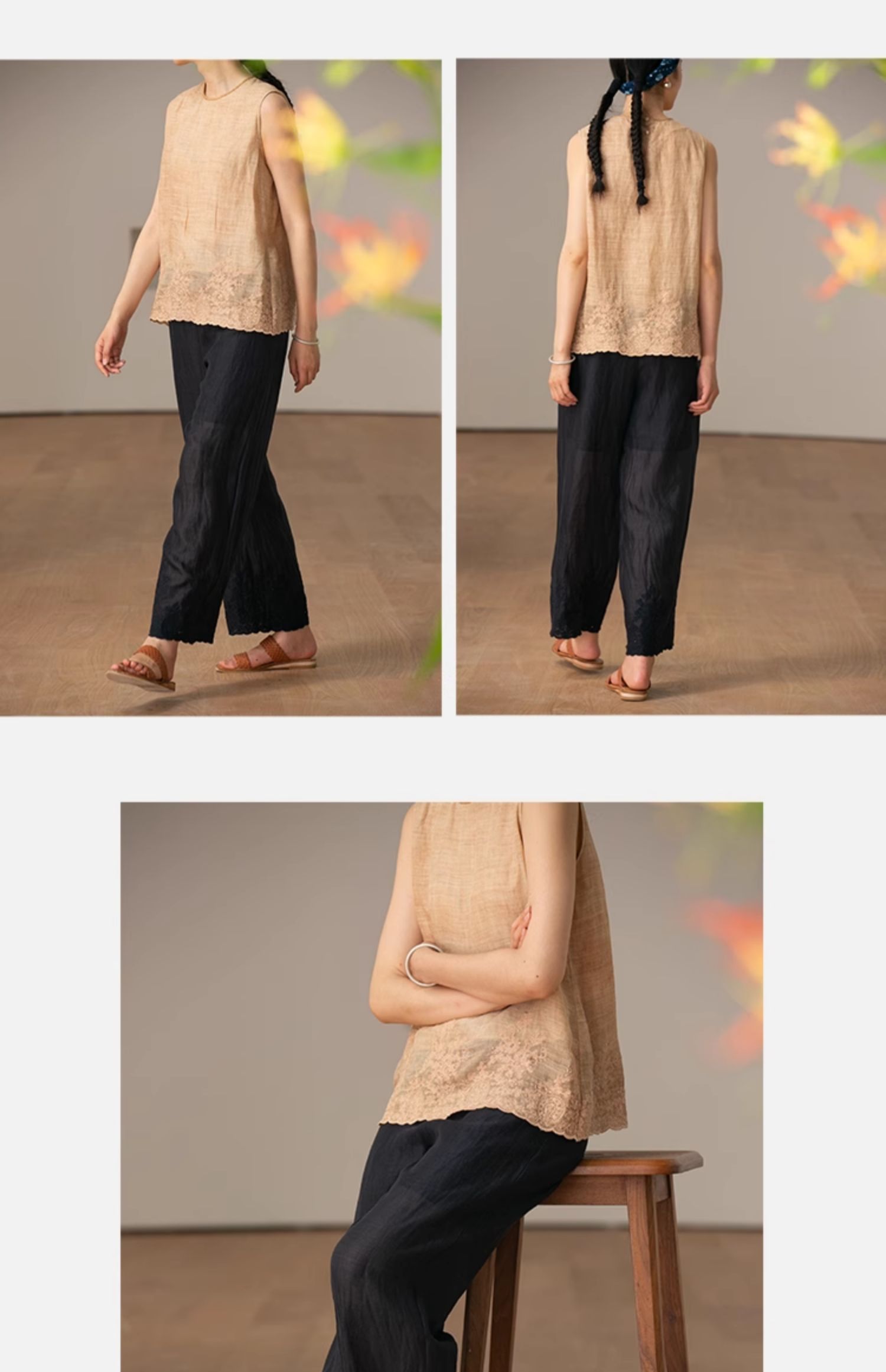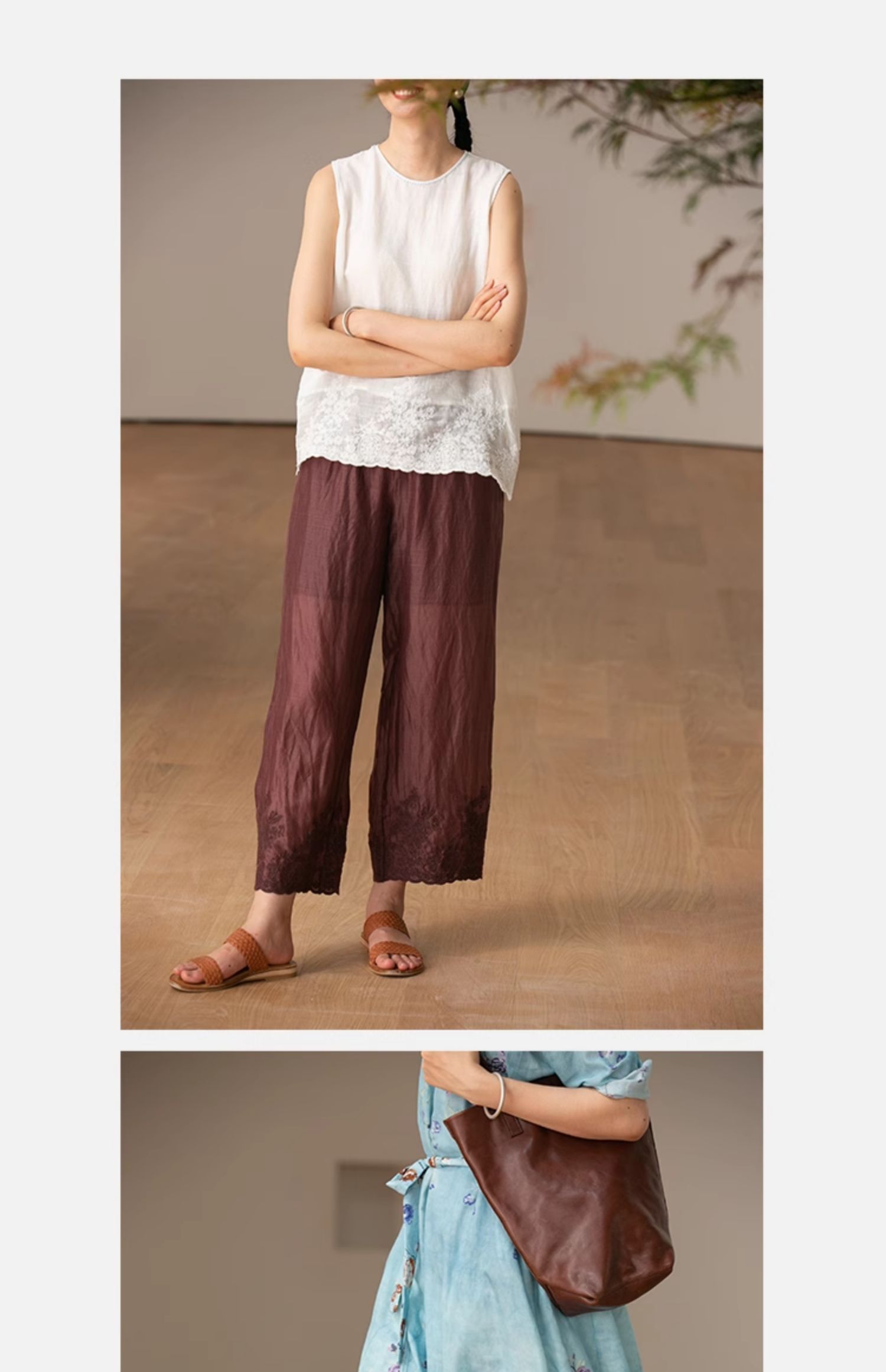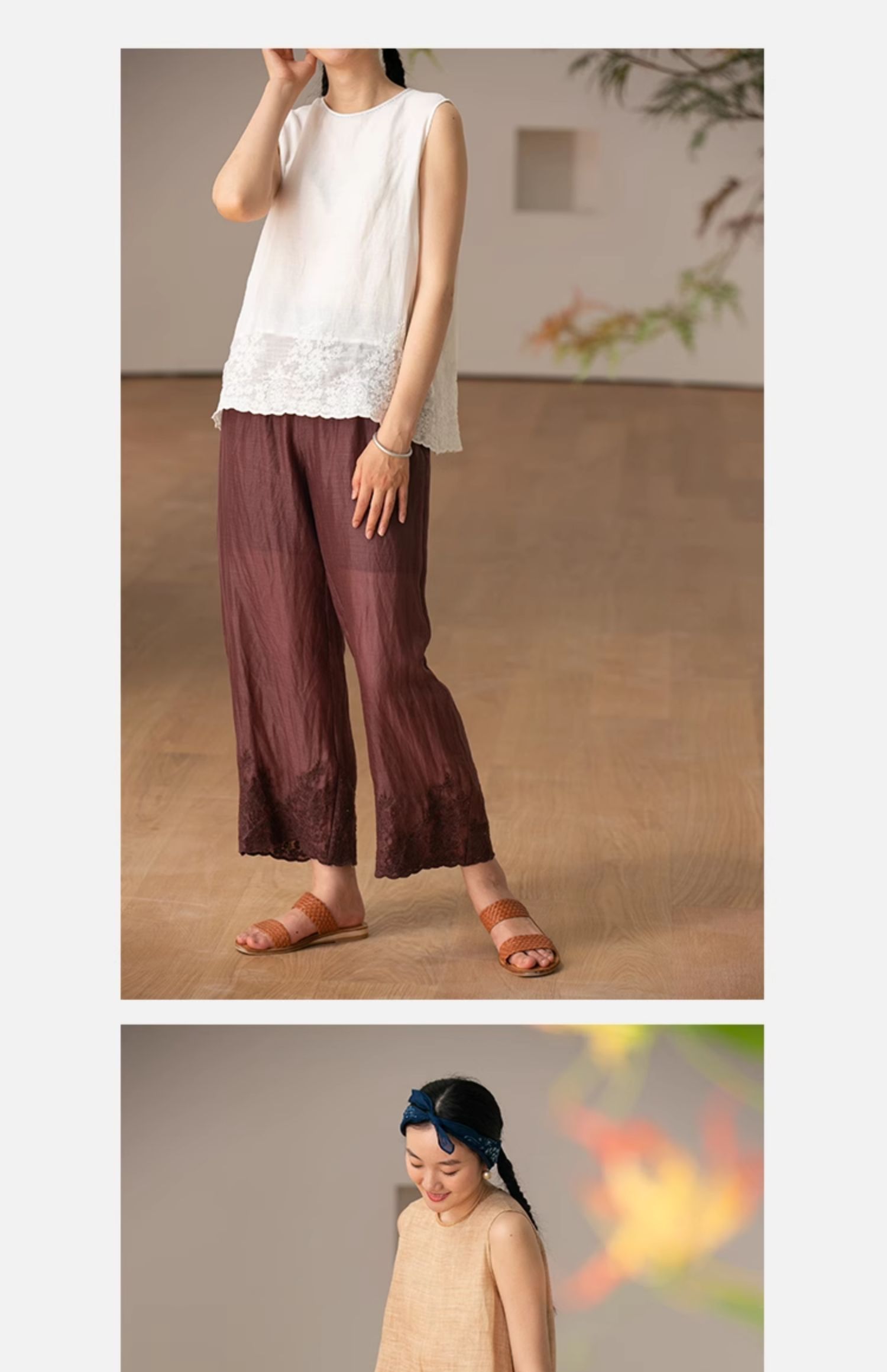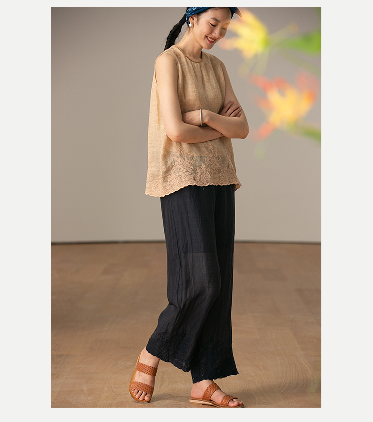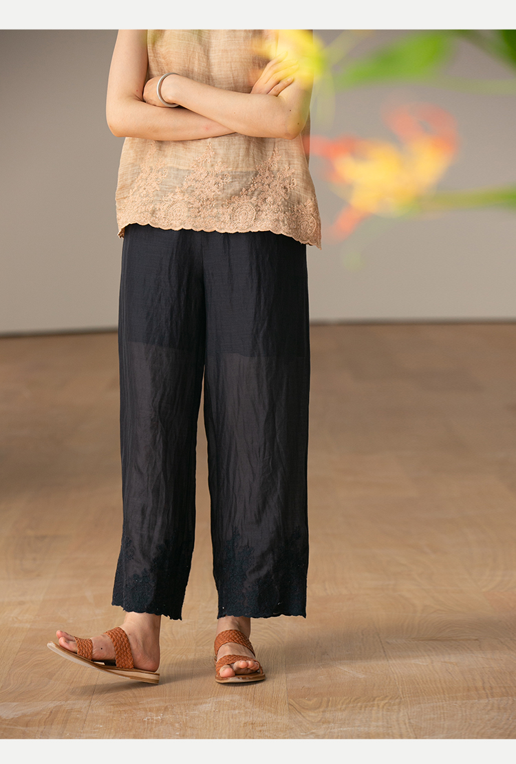 【经典回归】牧衣游原创设计女装轻薄百搭亲肤匹绣苎麻裤子 问